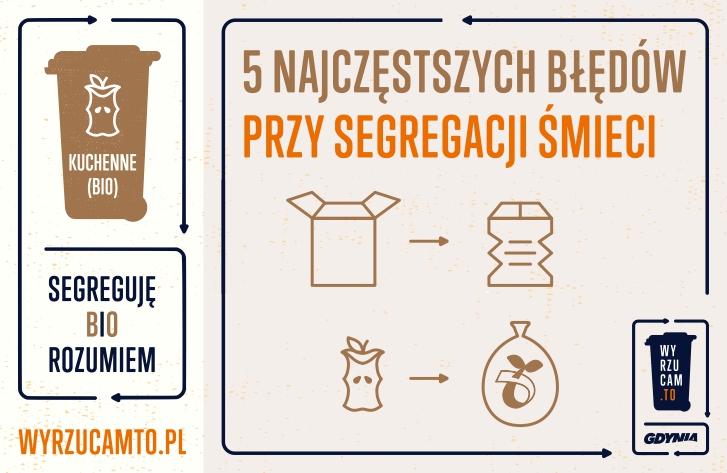 Według danych GUS w 2022 r. na jednego mieszkańca Polski średnio przypadało 355 kg zebranych odpadów komunalnych. Segregujemy chroniąc zasoby i środowisko, ale wciąż możemy wiele poprawić. Zobaczcie jak jeszcze lepiej segregować odpady i jakich błędów należy unikać. Góra śmieci, którą produkujemy przy niewłaściwej segregacji to duże ilości odpadów na składowiskach. W warunkach beztlenowych, uwalnia się tam metan, który przyczynia się do efektu cieplarnianego i zmian klimatycznych.5 najczęściej popełnianych błędów: wyrzucanie śmieci kuchennych (BIO), szklanych i papierowych w nieodpowiednich workach. W praktyce to dodatkowa segregacja w zakładzie utylizacyjnym. Śmieci kuchenne (BIO) wyrzucamy w workach papierowych albo w workach przeznaczonych do kompostowania. Papier i szkło wyrzucajmy luzem bez dodatkowych siatek i worków. Jeśli służą do zniesienia do śmietnika to po wrzuceniu posegregowanych odpadów do przeznaczonego do tego pojemnika, worek wyrzućmy do właściwej frakcji (jeśli był foliowy to do plastiku, jeśli papierowy to do papieru). zanieczyszczenia frakcji Czyste, dobrze wysegregowane frakcje można od razu przekazać dalej do recyklingu. Wrzucać do pojemników na szkło słoiki i butelki bez zakrętek czy kapsli, dokładnie opróżnić słoiki z ich zawartości (nie trzeba ich myć), rozdzielić poszczególne części, np. tekturowe „etykiety” od plastikowych opakowań jogurtów czy twarożków i wyrzucić je do oddzielnych pojemników. nie zgniatanie śmieci Przed wyrzuceniem odpadów np. plastikowych butelek, puszek czy kartonów, należy je zgnieść. Niezgniecione śmieci zajmują więcej miejsca. traktowanie pojemnika na pozostałości po segregacji, jako śmietnika do „wszystkiego” W razie wątpliwości, do jakiego pojemnika mają trafić śmieci, najlepiej przeczytać tablice, które umieszczone są na wiatach śmietnikowych lub na pojemnikach. Szczegółowa rozpiska znajduję się na stronie. niewłaściwa segregacja śmieci wielomateriałowych Odpady wielomateriałowe składają się z różnych materiałów lub substancji o różnych właściwościach fizycznych i chemicznych. Odpadami wielomateriałowymi są np. kartony po mleku lub soku, które powinny trafić do pojemnika żółtego. Odpady wielomateriałowe poza mieszanką materiałów takich jak plastik, metal, papier – zawierają też szkło, drewno, tkaniny, czy też kompozyty. Takie odpady, powinny trafić do pojemnika na „pozostałości po segregacji”.Od segregacji domowej zależy to, ile drzew ocalimy, ile energii zaoszczędzimy, ile ropy naftowej nie zużyjemy oraz ile wartościowego nawozu uzyskamy dla życia organicznego. Jesienią rusza kampania informacyjna dotycząca wagi segregacji odpadów kuchennych i zielonych. Bądźmy eco! Opublikowano: 07.09.2023 12:08 Autor: Dominika Sobiech (dominika.sobiech@gdynia.pl) Zmodyfikowano: 07.09.2023 12:08 Zmodyfikował: Dominika Sobiech