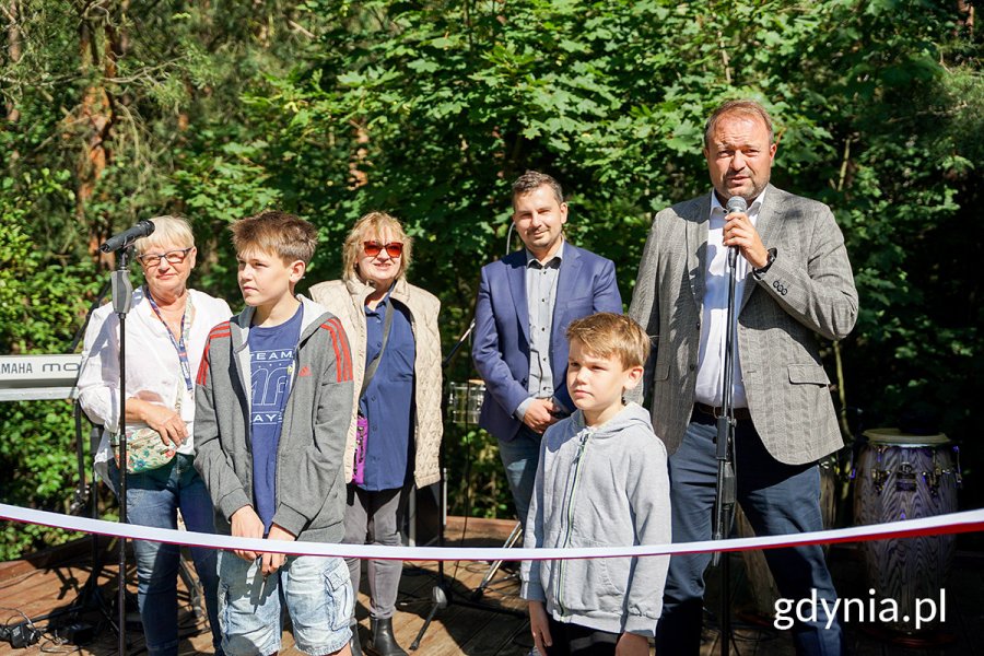 Park rodzinny o kameralnym, dzielnicowym charakterze przy ul. Spokojnej to projekt, który autorzy rozłożyli na kilka etapów – i za każdym razem konsekwentnie namawiali sąsiadów do głosowania w ramach Budżetu Obywatelskiego. Dziś w zacisznym zakątku Małego Kacka działa już rodzinny park z atrakcjami, małą architekturą, miejscem na aktywny wypoczynek i roślinnością. Oficjalne zakończenie kolejnego etapu projektu miało miejsce 2 września i było połączone z piknikiem sąsiedzkim. Była to okazja do symbolicznego otwarcia przestrzeni, w którym wzięli udział mieszkańcy oraz wiceprezydent Gdyni ds. rozwoju, Marek Łucyk.Na zdjęciu z radnym Sebastianem Jędrzejewskim i mieszkańcami, wiceprezydent Marek Łucyk (pierwszy z prawej) podczas otwarcia parku rodzinnego w Małym Kacku // fot. Mirosław PieślakPark rodzinny to teren, który zyskał: wybieg dla psów, strefę rekreacyjną z ławkami, grillem i paleniskiem, plenerową siłownię, strefę dla seniorów, ścieżkę dla rolkarzy, boisko do ulicznej koszykówki, mały amfiteatr, hamaki, bieżnię dla biegaczy, skocznię, linarium, ławki z bali, trasy rowerową, tężnię solankową, trawnik do gier i zabaw. Autorek projektów był Wiesław Karpisiak. Opublikowano: 07.09.2023 12:23 Autor: Dominika Sobiech (dominika.sobiech@gdynia.pl)