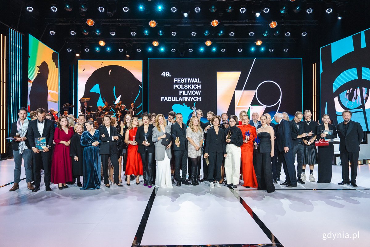 Święto polskiego kina dobiegło końca. Podczas sobotniej (28 września) gali w Teatrze Muzycznym poznaliśmy laureatów 49. Festiwalu Polskich Filmów Fabularnych. Złote Lwy i nagrodę publiczności dla najlepszego filmu otrzymali twórcy „Zielonej granicy”, Wojciech Marczewski odebrał statuetkę z platyny, a dzieci postawiły na produkcję „Za duży na bajki 2”. Ale to tylko część tegorocznych laureatów.28 września uroczystą galą na scenie Teatru Muzycznego zakończył się 49. Festiwal Polskich Filmów Fabularnych. W tym roku pojawiło się sporo nowości. Wśród nich warto wymienić między innymi nowoczesną wizualizację graficzną autorstwa Oli Jasionowskiej czy Konkurs Perspektywy, który cieszył się niezwykłą popularnością wśród widzów.W sobotni wieczór przed teatrem jak zwykle ustawiła się długa kolejka miłośników kina, którzy przyszli zobaczyć swoich ulubionych artystów. Na czerwonym dywanie pojawili się między innymi prezydent Aleksandra Kosiorek i wiceprezydent Tomasz Augustyniak, Magdalena Zawadzka, Kinga Dębska, Wojciech Marczewski, Magdalena Boczarska i cała śmietanka rodzimej kinematografii.Laureaci 49. Festiwalu Polskich Filmów Fabularnych oraz prezydent Gdyni Aleksandra Kosiorek (fot. Mateusz Dietrich)Wielką nagrodę 49. Festiwalu Polskich Filmów Fabularnych Złote Lwy dla najlepszego filmu „Zielona granica” otrzymali: reżyserka Agnieszka Holland oraz producenci Marcin Wierzchosławski i Fred Bernstein.Srebrne Lwy za film „Dziewczyna z igłą” otrzymali: reżyser Magnus von Horn oraz producenci Mariusz Włodarski i Malene Blenkov.Natomiast nagrody indywidualne otrzymali: za reżyserię filmu „Biała odwaga”: Marcin Koszałka, za scenariusz do filmu „Biała odwaga”: Łukasz M. Maciejewski, Marcin Koszałka, za zdjęcia do filmu „Dziewczyna z igłą”: Michał Dymek, za muzykę do filmu „Dziewczyna z igłą”: Frederikke Hoffmeier, za scenografię do filmu „Dziewczyna z igłą”: Jagna Dobesz, za dźwięk w filmie „Zielona granica”: Roman Dymny, za montaż filmu „Wrooklyn Zoo”: Sebastian Mialik, za charakteryzację do filmu „Kulej. Dwie strony medalu”: Agnieszka Hodowana, za kostiumy do filmu „Dziewczyna z igłą”: Małgorzata Fudala, za drugoplanową rolę kobiecą w filmie „Dziewczyna z igłą”: Trine Dyrholm, za drugoplanową rolę męską w filmie „Biała odwaga”: Julian Świeżewski, za główną rolę kobiecą w filmie „Biała odwaga”: Sandra Drzymalska, za główną rolę męską w filmie „Wróbel”: Jacek Borusiński, za profesjonalny debiut aktorski w filmie „Pod wulkanem”: Sofiia Berezovska. Nagrodę publiczności otrzymał film „Zielona granica” w reżyserii Agnieszki Holland.Złoty Pazur im. Andrzeja Żuławskiego za „To nie mój film” trafił do reżyserki Marii Zbąskiej oraz producentki Ingi Kruk.Nagrodę za debiut reżyserski lub drugi film w cross-section Konkursu Głównego i Konkursu Perspektywy otrzymała Mary Tamkovich za film „Pod szarym niebem”.Nagrodę Szafirowe Lwy 49. Festiwalu Polskich Filmów Fabularnych przyznano filmowi „Rzeczy niezbędne” w reżyserii Kamili Tarabury oraz producentom Andrzejowi Muszyńskiemu, Michaelowi Eckeltowi i Lennartowi Lenzingowi.Nagrodę za wyjątkowy wkład artystyczny i rolę w filmie „Cisza nocna” w reżyserii Bartosza M. Kowalskiego otrzymał ś.p. Maciej Damięcki. Statuetkę odebrały dzieci aktora – Matylda i Mateusz Damięccy.Platynowe Lwy za całokształt twórczości odebrał reżyser Wojciech Marczewski.Nagroda im. Lucjana Bokińca za Najlepszy Film Krótkometrażowy trafiła do Mohammeda Almughanniego za „Pomarańczę z Jaffy”.Złote Lwiątka im. Janusza Korczaka dla najlepszego filmu familijnego otrzymała produkcja „Za duży na bajki 2” w reżyserii Kristoffera Rusa.Natomiast Diamentowe Lwiątka – dla najlepszego obrazu dla dzieci i młodzieży z okazji 20-lecia sekcji „Gdynia Dzieciom” – trafiły do filmu „O psie, który jeździł koleją” w reżyserii Magdaleny Nieć.Gratulujemy i do zobaczenia za rok! Opublikowano: 03.10.2024 12:53 Autor: Dominika Sobiech (dominika.sobiech@gdynia.pl) Zmodyfikowano: 08.10.2024 14:08 Zmodyfikował: Dominika Sobiech