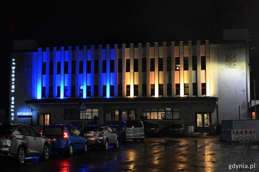 Minęło tysiąc dni od zbrojnej napaści Rosji na Ukrainę. Trójmiasto pamięta i wciąż solidaryzuje się z naszymi wschodnimi sąsiadami. W Gdyni walczącą o wolność Ukrainę upamiętniliśmy symbolicznym podświetleniem na niebiesko-żółto budynku Muzeum Emigracji. Gdynia również pamięta. W geście solidarności z Ukrainą i aby uczcić bohaterską postawę naszych sąsiadów, wieczorem 19 listopada budynek Muzeum Emigracji rozbłysnął na niebiesko i żółto.fot. Michał Puszczewicz Opublikowano: 21.11.2024 13:01 Autor: Dominika Sobiech (dominika.sobiech@gdynia.pl)