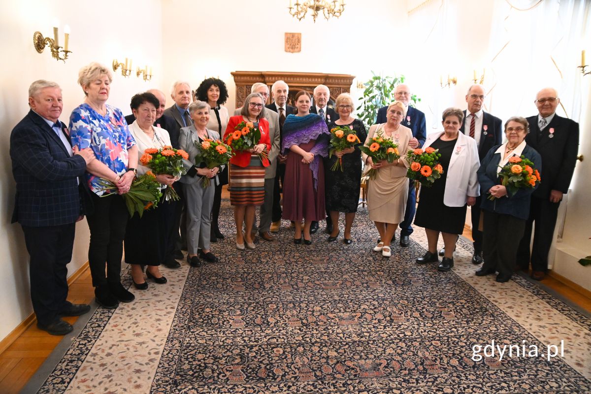 Aktywny Senior Fundacja FLY zaprasza do zapisów: na wspólny wyjazd do Filharmonii Bałtyckiej na Koncerty Karnawałowe (IX Bal Gdański / „Hiszpańska dusza”); na kwietniowy wyjazd krajoznawczy „Świąteczny Jarmark z Mazowszem”; na zajęcia Tai Chi w ramach Uniwersytetu Trzeciego Wieku. Szczegóły w biurze przy ul. Świętojańskiej 36/2. Centrum Nauki Experyment zaprasza posiadaczy Karty Genia Senior Plus na wydarzenia w cenie 15 zł. 30 marca o godz. 16:00 wykład Science Cafe 2.0 „Siła wpływa. Jak ludzie i sytuacje kształtują nasze decyzje?”; 14 marca o godz. 18:30 wykłady, prelekcje, pokazy kulinarne z degustacją „Przepisz na... Smaki jutra”; 12 marca o godz. 12:00 i 14 marca o godz. 10:00 Ciekawi Świata. Ruszyły zapisy na kolejny semestr cyklu wykładów popularnonaukowych dla seniorów, połączonych z tematycznymi warsztatami. Szczegóły ioraz zapisy na stronie www.experyment.gdynia.pl lub w kasach Experymentu. 50 lat minęło. Jubileusz gdyńskich małżeństw Miłość może połączyć dwoje ludzi na całe życie, przez które idą razem, wspierając się i dzieląc trudy oraz radości. Pary, które przeżyły ze sobą co najmniej 50 lat, 17 lutego odebrały Medal za Długoletnie Pożycie Małżeńskie z rąk prezydent Gdyni Aleksandry Kosiorek. Jubilaci zgromadzili się w sali ślubów Urzędu Stanu Cywilnego, udekorowanej kwiatami oraz walentynkowymi ozdobami. Nie zabrakło uśmiechów, wspomnień oraz muzyki budującej atmosferę tego wyjątkowego momentu. Uroczystość poprowadziła Inocenta Nycz, kierownik USC, która powitała zgromadzonych. Obecne były także Dorota Szymczak, zastępczyni kierownika USC oraz Jolanta Bach-Tokarska z Referatu ds. Rejestracji Małżeństw. Wręczając medale, prezydent Aleksandra Kosiorek złożyła jubilatom życzenia oraz gratulacje.Jubilaci z godz. 13:00 z Aleksandrą Kosiorek // fot. Jakub WiniewskiMedale za Długoletnie Pożycie Małżeńskie z rąk prezydent Gdyni Aleksandry Kosiorek o godz. 13:00 odebrali:Alicja i Mirosław Begerowie / Jadwiga Białoskórska z wnukiem / Irena i Piotr Chyłowie / Cecylia i Stanisław Czubowie / Maria i Jan Dzieciuchowie / Maria i Stanisław Głowaccy / Lucyna i Marian Kosiłkowie / Krystyna i Lech Kułakowscy.Jubilaci z godz. 14:00 z Aleksandrą Kosiorek // fot. Jakub WiniewskiMedale za Długoletnie Pożycie Małżeńskie z rąk prezydent Gdyni Aleksandry Kosiorek o godz. 14:00 odebrali:Danuta i Zenon Marchewkowie / Leokadia i Piotr Milewscy / Ewa i Bronisław Płotkowie / Halina i Zdzisław Rakowie / Helena i Tadeusz Redzimscy / Mirosława i Janusz Sosnowscy.Jubilaci z godz. 15:00 z Aleksandrą Kosiorek // fot. Jakub WiniewskiMedale za Długoletnie Pożycie Małżeńskie z rąk prezydent Gdyni Aleksandry Kosiorek o godz. 15:00 odebrali:Barbara i Edmund Straszakowie / Zofia i Wawrzyniec Szurowscy / Franciszek Tandecki z córką / Regina i Marian Uklaszowie / Zofia i Roman Wachełkowie / Leokadia i Zygmunt Warzochowie / Janina i Stanisław Wołoszykowie / Małgorzata i Mirosław Zającowie / Krystyna i Józef Zaworscy.Gratulujemy i życzymy dalszych lat w zdrowiu i szczęściu! Opublikowano: 27.02.2025 10:50 Autor: Dominika Sobiech (dominika.sobiech@gdynia.pl) Zmodyfikowano: 02.03.2025 14:13 Zmodyfikował: Karolina Szypelt