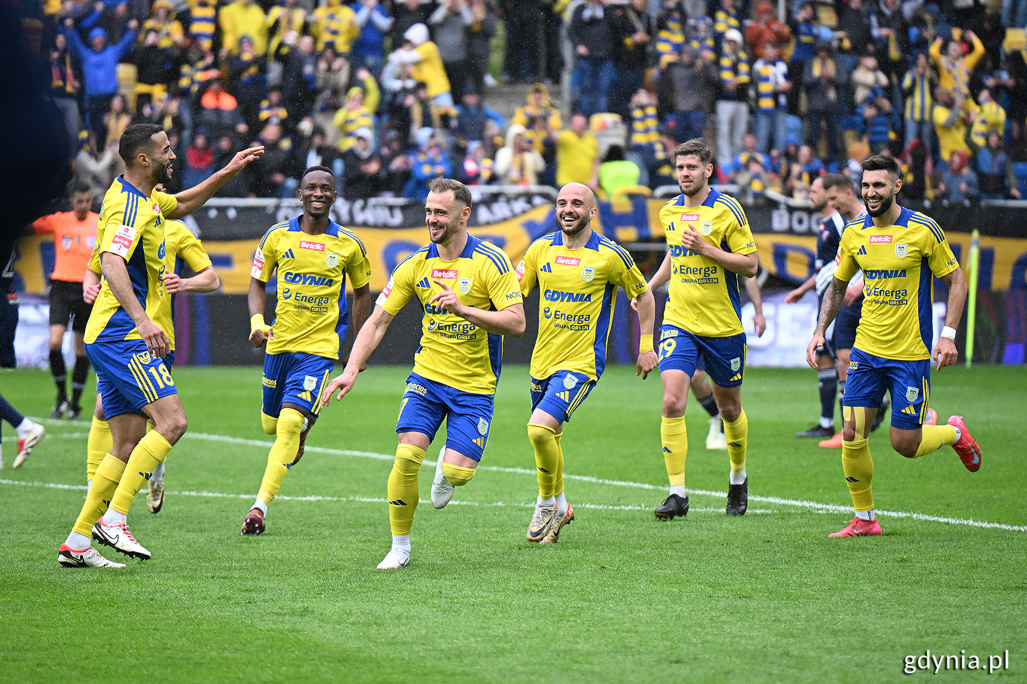 Arka Gdynia pokonała na własnym stadionie Bruk-Bet Termalicę Nieciecza 2:1 i na trzy kolejki przed końcem sezonu zapewniła sobie awans do Ekstraklasy. Spotkanie oglądało z trybun aż 14 384 widzów – to oficjalny rekord frekwencji na Stadionie Miejskim w Gdyni. Mecz pełen emocji i walki Pojedynek z Bruk-Betem Termalicą był zapowiadany jako hit kolejki – spotkanie lidera z wiceliderem tabeli Betclic 1. Ligi. Od początku było widać, że obie drużyny wiedzą, o co grają, a emocje tylko rosły z każdą minutą. Arka dobrze rozpoczęła i już w pierwszym kwadransie stworzyła sobie kilka dogodnych sytuacji, ale to goście z Niecieczy objęli prowadzenie. W 35. minucie Morgan Fassbender wykorzystał błąd w gdyńskiej defensywie i mocnym uderzeniem pokonał Damiana Węglarza. Żółto-niebiescy nie dali się jednak wybić z rytmu. Jeszcze przed przerwą przeprowadzili dwa kluczowe ataki, które zmieniły losy spotkania. Najpierw, w 44. minucie, Szymon Sobczak pewnie wykorzystał rzut karny po faulu na sobie samym. Chwilę później, już w doliczonym czasie pierwszej połowy, arbiter wskazał na „wapno” po faulu na Joao Oliveirze, a Sobczak raz jeszcze nie dał szans bramkarzowi gości. Arka schodziła do szatni z prowadzeniem 2:1 i jedną nogą w Ekstraklasie. Szymon Sobczak dwukrotnie wykorzystał dziś rzuty karne (fot. Michał Puszczewicz) Kartki, nerwy i rekordowy doping Druga połowa nie przyniosła już bramek, ale emocji z pewnością nie brakowało. Bruk-Bet próbował odrobić straty, jednak Arka kontrolowała przebieg gry. Od 81. minuty gdynianie musieli radzić sobie w osłabieniu – za faul z boiska wyleciał Marc Navarro. W końcówce nie zabrakło nerwów, co poskutkowało kolejnymi czerwonymi kartkami – tym razem dla zawodników obu drużyn. Po ostatnim gwizdku trybuny eksplodowały z radości, a na murawę wbiegli kibice, by wspólnie z piłkarzami celebrować długo wyczekiwany awans. Nic dziwnego – na Stadionie Miejskim padł oficjalny rekord frekwencji. 14 384 widzów to liczba, która najlepiej oddaje, jak ważny był to dzień dla całej Gdyni. Na trybunach zasiadło blisko 15 tysięcy fanów (fot. Michał Puszczewicz) Historyczny powrót po pięciu latach Arka wraca do Ekstraklasy po pięciu sezonach spędzonych na zapleczu. Ostatni raz w najwyższej lidze grała w sezonie 2019/2020. Poprzedni rok był bolesny – żółto-niebiescy otarli się o awans, ale nie wykorzystali szansy ani w sezonie zasadniczym, ani w barażach. Dziś mogą mówić o pełnym odkupieniu.Piłkarzom, sztabowi i działaczom wywalczonego awansu pogratulowali przedstawiciele władz miasta obecni na meczu: prezydent Gdyni Aleksandra Kosiorek oraz wiceprezydentka Oktawia Gorzeńska i wiceprezydent Bartłomiej Austen. Serdecznie gratuluję piłkarzom, sztabowi i wszystkim osobom zaangażowanym w ten wyczekiwany sukces, a także wszystkim kibicom gdyńskiej Arki. Dziś ogromne wsparcie pozwoliło na wywalczenie awansu, choć emocji nie zabrakło do samego końca – mówiła Aleksandra Kosiorek, prezydent Gdyni. Efektowana oprawa była ozdobą dzisiejszego meczu (fot. Michał Puszczewicz) To szósty awans Arki do najwyższej klasy rozgrywkowej. Wcześniejsze miały miejsce w latach 1974, 1976, 2005, 2008 i 2016. Droga do tego sukcesu nie była łatwa – początek rozgrywek był trudny, zmiany szkoleniowców i bolesne wspomnienia nie napawały optymizmem. Ale od momentu przejęcia zespołu przez Tomasza Grzegorczyka, a następnie Dawida Szwargę, drużyna systematycznie pięła się w górę tabeli. Arka zanotowała wiosną serię meczów bez porażki, a jej forma dała jasny sygnał: to jest zespół gotowy na Ekstraklasę. Po ostatnim gwizdku wszyscy świętowali wspólnie na murawie (fot. Michał Puszczewicz) Wielkie świętowanie w drodze Choć awans jest już pewny, żółto-niebieskich czekają jeszcze trzy ligowe kolejki. Oficjalna feta odbędzie się 18 maja – po ostatnim domowym spotkaniu z GKS-em Tychy (18 maja, 14:30). Wtedy cały stadion będzie mógł wspólnie z drużyną świętować powrót do piłkarskiej elity. Gdynia znów jest w piłkarskim topie Polski i trzyma kciuki za dalsze sukcesy żółto-niebieskich. Do zobaczenia w Ekstraklasie, Arkowcy! Opublikowano: 08.05.2025 15:50 Autor: Marek Urbaniak (m.urbaniak@gdyniasport.pl) Zmodyfikowano: 08.05.2025 15:54 Zmodyfikował: Karolina Szypelt