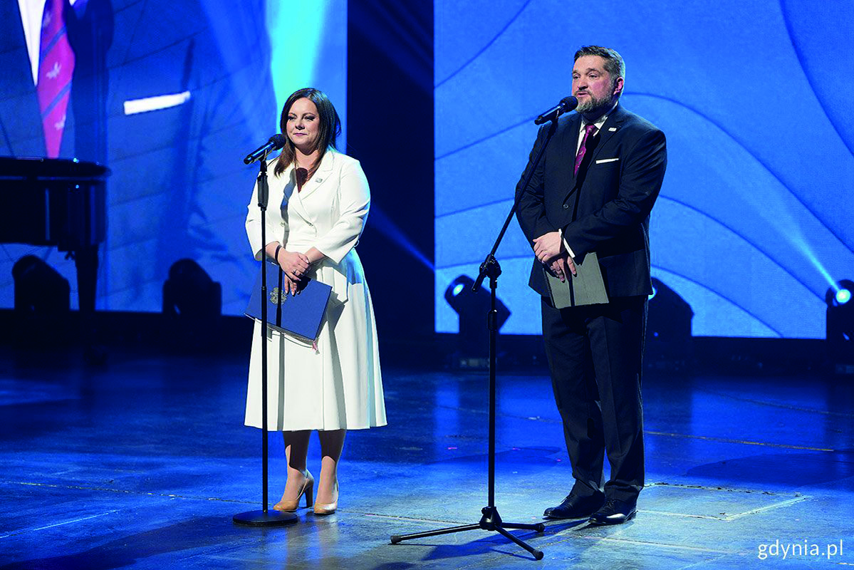 Gdynia świętuje swoje setne urodziny. Jednym z najważniejszych i najbardziej dostojnych momentów tego święta była uroczysta sesja Rady Miasta Gdyni 10 lutego. Gospodarzem uroczystości był Tadeusz Szemiot, przewodniczący Rady Miasta Gdyni, a na scenie towarzyszyła mu Aleksandra Kosiorek, prezydent Gdyni. Samorządowcy podkreślali, że powstanie miasta wymagało odważnej wizji i z podobną odwagą Gdynia wejdzie w swoje drugie stulecie.W Teatrze Muzycznym spotkali się przyjaciele Gdyni z całej Polski – przedstawiciele władzy państwowej, wojska, świata nauki, biznesu, kultury i sportu oraz samorządowcy. Obecni byli m.in. Karol Nawrocki, prezydent Polski, Małgorzata Kidawa-Błońska, marszałek Senatu, a także były włodarz Gdyni Wojciech Szczurek. Nie mogło zabraknąć Hanny Wendy-Uszyńskiej, wnuczki Tadeusza Wendy oraz Julity Maciejewicz-Ryś, wnuczki premiera Eugeniusza Kwiatkowskiego – kustoszek pamięci dziedzictwa swoich dziadków.Wyjątkowi laureaci Medali im. Eugeniusza Kwiatkowskiego na stulecie GdyniMedal im. Eugeniusza Kwiatkowskiego jest wyrazem szczególnego uznania za wybitne zasługi dla rozwoju miasta i portu oraz za rozsławianie Gdyni w kraju i na świecie. W tym roku wręczono je po raz trzydziesty drugi. Tegoroczni laureaci reprezentują trzy filary gdyńskiej historii i współczesności: gospodarkę morską, bezpieczeństwo oraz kulturę.Akademia Marynarki Wojennej im. Bohaterów Westerplatte z siedzibą w Gdyni przy ul. Śmidowicza 69 działa jako kontynuatorka Oficerskiej Szkoły Marynarki Wojennej założonej w 1922 r. w Toruniu. To jedyna w Polsce uczelnia reprezentująca morskie szkolnictwo wojskowe. Kształci kandydatów na oficerów Marynarki Wojennej RP i Sił Zbrojnych, a także studentów cywilnych z kraju i zagranicy, zgodnie z wartościami „Morze, Ojczyzna, Obowiązek” oraz „Amor Patriae Suprema Lex”.Izba Bawełny w Gdyni – Gdynia Cotton Association odpowiada za ustalanie i publikacje tabel prezentujących różnice wartościowe dla bawełn surowych. Ważną dziedziną jest również międzynarodowy arbitraż jakościowy i handlowy dotyczący obrotu bawełną. Współcześnie głównym zadaniem Izby jest popieranie i doskonalenie obrotu i przerobu bawełny, surowców bawełnopodobnych oraz wykonanych z nich wyrobów i półproduktów, a także propagowanie etyki kupieckiej, nienaruszalności umów oraz sądownictwa polubownego.Stowarzyszenie Filmowców Polskich to organizacja zrzeszająca twórców polskiej kinematografii. Wspiera promocję polskiego kina i edukację filmową, a także działa na rzecz ochrony praw twórców. SFP jest współinicjatorem i współzałożycielem Festiwalu Polskich Filmów Fabularnych – określanego mianem święta polskiego kina. Opublikowano: 12.02.2026 14:05 Autor: Dominika Sobiech (dominika.sobiech@gdynia.pl) Zmodyfikowano: 12.02.2026 14:05 Zmodyfikował: Dominika Sobiech