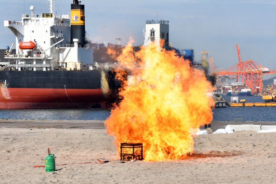 Pokazowe ćwiczenia ratowniczo-gaśnicze odbyły się dzisiaj w Porcie Gdynia. Ich celem było wypracowanie standardów bezpieczeństwa podczas bunkrowania* statków skroplonym gazem ziemnym (LNG). Efektem będzie przygotowanie pierwszej w Polsce technologicznej instrukcji bunkrowania statków.