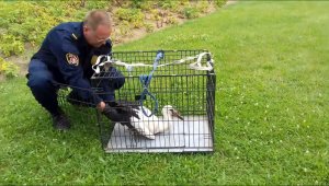 Dzięki szybkiej i sprawnej akcji strażników zostały uratowane ptaki objęte ochroną, co więcej, w polskiej czerwonej księdze zwierząt określane jako bliskie zagrożenia.3 sierpnia 2017 r. zarówno mały bocian, jak i puchacz, będący naszą największą sową, znalazły się w tarapatach i potrzebowały natychmiastowej pomocy. Ekopatrol krótko przed południem został powiadomiony o bocianie, który wypadł z gniazda na Wiczlinie i groziło mu niebezpieczeństwo, natomiast puchacza późnym popołudniem znalazł inny patrol w przy ulicy Orłowskiej. Warto podkreślić, że obie interwencje odbyły się na podstawie zgłoszeń od mieszkańców, którzy alarmowali strażników o ptakach, które wymagały pomocy i mogłyby zginąć bez wsparcia człowieka. Bocianie dziecko, które wypadło z gniazda zamieszkiwanego przez pięcioosobową rodzinę, mimo, że podrosłe i umiejące już latać, nie dałoby sobie samo rady z uwagi na uszkodzone skrzydło. Na widok strażników bocian zaczął uciekać, a schwytanie go nie było łatwe, tym bardziej, że potrafi atakować dużym i ostrym dziobem. Strażnikom pomogło doświadczenie, którego nabyli ratując łabędzie i po chwili ptak znalazł się w transporterze, a potem został przewieziony do OSTOI. Natomiast puchacz, którego łatwiej usłyszeć, niż zobaczyć, bo to ptak bardzo płochliwy, który potrafi przestraszony zostawić nawet swoje młode, tutaj siedział nieruchomo pod drzewem. Nie reagował na hałas uliczny przy ulicy Orłowskiej, tkwił bez ruchu, nie zwracał uwagi na przechodzących ludzi. Osowiały i apatyczny, został przeniesiony przez strażników do klatki i przewieziony do lecznicy weterynaryjnej, gdzie otrzymał fachową pomoc i pozostał na obserwacji. Straż Miejska apeluje o zgłaszanie wszystkich sytuacji dotyczących chorych i rannych ptaków i zwierząt pod bezpłatny numer 986!fot. Straż Miejska Galeria zdjęć Pobierz galerię Puchacz i bocian uratowane przez strażników, fot. Straż Miejska Pobierz zdjęcie Puchacz i bocian uratowane przez strażników, fot. Straż Miejska Pobierz zdjęcie Puchacz i bocian uratowane przez strażników, fot. Straż Miejska Pobierz zdjęcie Puchacz i bocian uratowane przez strażników, fot. Straż Miejska Pobierz zdjęcie Puchacz i bocian uratowane przez strażników, fot. Straż Miejska Pobierz zdjęcie Puchacz i bocian uratowane przez strażników, fot. Straż Miejska Pobierz zdjęcie Warunki pobierania Wszelkie prawa do zdjęć lub grafik prezentowanych w ramach portalu, należą do Prowadzącego portal lub do podmiotów z nim współpracujących i podlegają ochronie prawnej. Prowadzący portal zezwala na kopiowanie i przedstawianie utworów jedynie w celach niekomercyjnych oraz pod warunkiem zachowania go w oryginalnej postaci i zachowaniem kontekstu tematu, do którego zostało wykorzystaneprzez redakcję gdynia.pl. Opublikowane materiały powinny zawsze zawierać źródło, czyli adres strony www.gdynia.pl. Na publikowanie utworów w innych celach wymagana jest zgoda właściciela strony czyli Prowadzącego portal. Opublikowano: 07.08.2017 15:21 Autor: Michał Szymura (michal.szymura@gdynia.pl) Zmodyfikowano: 07.08.2017 15:25 Zmodyfikował: Dorota Nelke