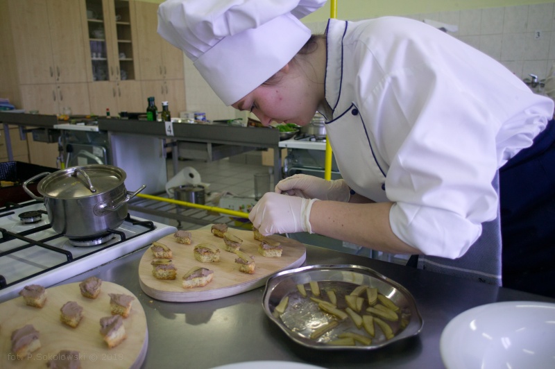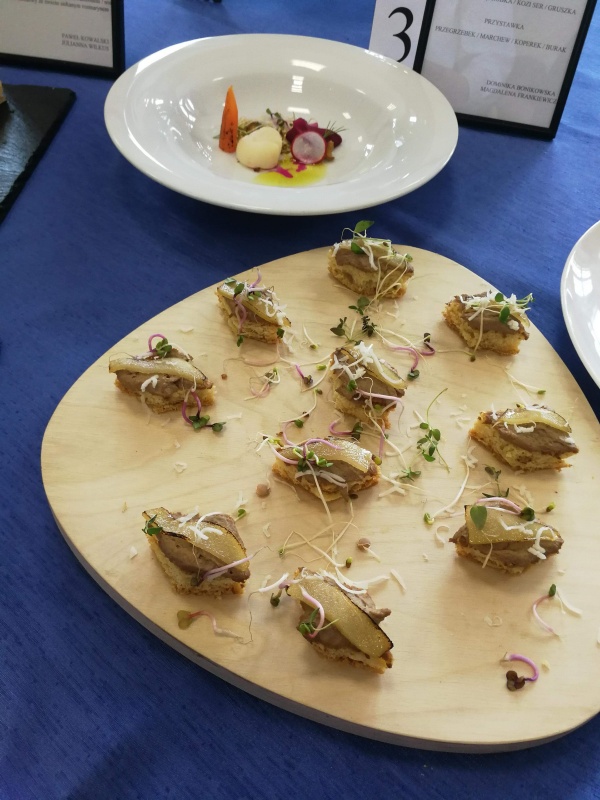 22 marca w Zespole Szkół Gastronomiczno-Hotelarskich w Gdańsku odbył się V Wojewódzki Konkurs Gastronomiczny "Frankofonia 2018" pod honorowym patronatem Marszałka Województwa Pomorskiego i Pomorskiego Kuratora Oświaty. ematem wiodącym konkursu było "Amuse- bouche et entree", czyli "Czekadełko i przystawka - Francja tradycyjnie". Uczniowie Zespołu Szkół Hotelarsko-Gastronomicznych w Gdyni zajęli w konkursie III miejsce i otrzymali wyróżnienie. Celem konkursu było między innymi:· kultywowanie, propagowanie i pogłębianie wiedzy o francuskiej tradycji kulinarnej· doskonalenie umiejętności kulinarnych, rozbudzanie inicjatywy, pomysłowości i kreatywności uczniów szkół gastronomicznych · podnoszenie poziomu kształcenia zawodowego oraz nawiązywanie współpracy między szkołami i firmami związanymi z gastronomią.W finale konkursu wzięło udział dziewięć drużyn ze szkół gastronomicznych województwa pomorskiego: ze Słupska, Kościerzyny, Rumii, Przodkowa, Wejherowa, Gdańska i Gdyni. Zadaniem 2–osobowych drużyn było przygotowanie w czasie 90 minut czekadełek (podanych wieloporcjowo) i czterech porcji przystawek (podanych jednoporcjowo).ZSHG reprezentowały dwie drużyny w składzie: 1. Dominika Bonikowska i Magdalena Frankiewicz z klasy II TGA2. Julianna Wilkus i Paweł Kowalski z klasy II TGCJury składające się z szefów kuchni renomowanych restauracji i hoteli Trójmiasta przyznało: III miejsce Juliannie Wilkus i Pawłowi Kowalskiemu z klasy II TGC za przygotowanie czekadełka – „Krewetki smażone na maśle czosnkowym z tymiankiem i przekładane cytrusami /mus lawendowo-miodowy/mus z awokado i koziego sera” oraz przystawki „Smażone mini szparagi otulone francuskim Jambonem/sos musztardowo-miodowy ze świeżo siekanym rozmarynem”.Wyróżnienie otzrymał duet Magdalena Frankiewicz i Dominika Bonikowska z klasy II TGA za przygotowanie czekadełka – "Grzanka z musem z wątróbki, kozim serem i karmelizowaną gruszką" oraz przystawki "Przegrzebki smażone na maśle czosnkowym i opalana marchewka z burakiem i rzodkiewką oraz oliwą koperkową".Uczniów do konkursu przygotowała Bożena Demytruk.Gratulujemy i życzymy dalszych sukcesów! Opublikowano: 25.03.2018 20:46 Autor: Aleksandra _Rzewuska (a.rzewuska@gdynia.pl) Zmodyfikowano: 27.03.2018 11:25 Zmodyfikował: Agnieszka Janowicz