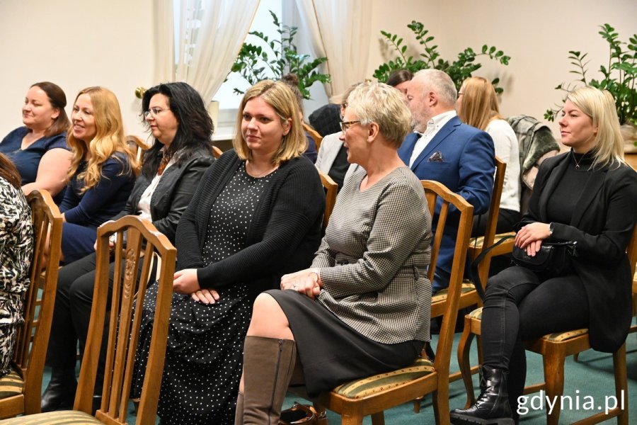 Trzynaście nauczycielek z Gdyni stanęło w sesji zimowej przed komisją egzaminacyjną w celu uzyskania stopnia awansu zawodowego. Dziś uroczyście wręczono im awanse zawodowe. Trzynaście gdyńskich nauczycielek uzyskało awans zawodowy na stopień nauczyciela mianowanego lub dyplomowanego. Aby uzyskać awans najpierw musiały spełnić warunki formalne i stanąć przed komisją egzaminacyjną. Nauczyciele nie tylko poszerzają horyzonty naszych uczniów, edukują i wychowują ale także przez cały czas sami rozwijają i poszerzają swoje umiejętności. Ich praca bowiem odpowiada na wyzwania przed jakimi współcześnie stają młodzi ludzie. - Gdyński system edukacji jest tak dobrze postrzegany, dzięki sztabowi osób, które stoją za rozwojem naszych najmłodszych mieszkańców. To nasza kadra pedagogiczna jest największą wartością gdyńskiej edukacji. Dlatego serdecznie gratuluję kolejnym osobom, które dziś mogły odebrać awans zawodowy. To także dzięki Państwa rozwojowi, nasze dzieci i młodzież mają szansę rozwinąć w Gdyni żagle. Mimo szeregu trudności jakie dotykają całą polską oświatę, mimo zmian i problemów postawiliście na rozwój, tak aby stać się jeszcze lepszymi przewodnikami dla naszych dzieci i młodzieży – mówi Bartosz Bartoszewicz, wiceprezydent Gdyni ds. jakości życia. Wyjaśnijmy, że od września tego roku w życie weszły nowe przepisy dotyczące awansu zawodowego nauczycieli. Jak komentują eksperci mają one odbiurokratyzować i ułatwić procedurę sięgania po kolejny stopień zawodowy. Obecnie nauczyciel zaczynający pracę jest nauczycielem początkującym i został zobligowany do uzyskania stopnia nauczyciela mianowanego. Aby awans uzyskać musi m.in. odbyć przygotowanie do zawodu nauczyciela lub dodatkowe przygotowanie do zawodu nauczyciela, posiadać co najmniej dobrą ocenę pracy, uzyskać pozytywną opinię komisji o przeprowadzonych zajęciach. Podczas procedury będzie miał opiekę mentora czyli innego nauczyciela. Lista nauczycieli, którzy uzyskali awans zawodowy w sesji zimowej: Anna Janikowska, nauczyciel wychowania przedszkolnego, Zespół Szkolno-Przedszkolny nr 5, Alicja Gutowska, nauczyciel wychowania przedszkolnego, Zespół Szkolno-Przedszkolny nr 5, Anna Domnik, nauczyciel wychowania przedszkolnego, Szkoła Podstawowa nr 48, Paulina Wdowczyk, nauczyciel wychowania przedszkolnego, Szkoła Podstawowa nr 40, Anna Popiołek, nauczyciel edukacji wczesnoszkolnej, Zespół Szkół Ogólnokształcących nr 6, Izabela Swirbutowicz, nauczyciel wychowania przedszkolnego, Przedszkole nr 43, Kinga Malewska, nauczyciel wychowania przedszkolnego, Przedszkole nr 21, Paulina Masowa, nauczyciel wychowania przedszkolnego, Zespół Wczesnej Edukacji nr 1, Anna Kraszewska, nauczyciel języka niemieckiego, Szkoła Podstawowa nr 39, Anna Raczkowska, nauczyciel wychowania fizycznego, Zespół Szkolno-Przedszkolny nr 3, Małgorzata Sieradzka, nauczyciel wychowania fizycznego i świetlicy, Szkoła Podstawowa nr 20, Iwona Trella, nauczyciel świetlicy, Zespół Szkół Ogólnokształcących nr 8, Joanna Kamerka, nauczyciel świetlicy, Specjalny Ośrodek Szkolno-Wychowaczy nr 1. Galeria zdjęć Pobierz galerię Awanse otrzymały w sesji zimowej nauczycielki z 12 placówek edukacyjnych // fot. Magdalena Śliżewska Pobierz zdjęcie Nie mogło zabraknąć Krystyny Przyborowskiej, naczelnik Wydziału Edukacji gdyńskiego magistratu oraz Zastępcy Naczelnika Wydziału Edukacji Agnieszki Kamińskiej-Klimczyk (stoją przodem) // fot. Magdalena Śliżewska Pobierz zdjęcie Awanse wręczał Bartosz Bartoszewicz, wiceprezydent gdyni ds. jakości życia // fot. Magdalena Śliżewska Pobierz zdjęcie Na uroczystości nie mogło zabraknąć gości - przedstawicieli środowiska edukacyjnego // fot. Magdalena Śliżewska Pobierz zdjęcie Awans otrzymały nauczycielki z dwunastu gdyńskich szkół // fot. Magdalena Śliżewska Pobierz zdjęcie Wśród awansowanych nauczycielek są specjalistki od edukacji wczesnoszkolnej czy wychowanie przedszkolnego // fot. Magdalena Śliżewska Pobierz zdjęcie Awansowane nauczycielki, w centrum kadru Bartosz Bartoszewicz, wiceprezydent Gdyni ds. jakości życia oraz goście uroczystości na pamiątkowej fotografii Pobierz zdjęcie Uroczystość wręczenia awansu zawodowego odbyła się we wnętrzach Urzędu Stanu Cywilnego // fot. Magdalena Śliżewska Pobierz zdjęcie Warunki pobierania Wszelkie prawa do zdjęć lub grafik prezentowanych w ramach portalu, należą do Prowadzącego portal lub do podmiotów z nim współpracujących i podlegają ochronie prawnej. Prowadzący portal zezwala na kopiowanie i przedstawianie utworów jedynie w celach niekomercyjnych oraz pod warunkiem zachowania go w oryginalnej postaci i zachowaniem kontekstu tematu, do którego zostało wykorzystaneprzez redakcję gdynia.pl. Opublikowane materiały powinny zawsze zawierać źródło, czyli adres strony www.gdynia.pl. Na publikowanie utworów w innych celach wymagana jest zgoda właściciela strony czyli Prowadzącego portal. Opublikowano: 21.12.2022 11:05 Autor: Zuzanna Kasprzyk (z.kasprzyk@gdynia.pl) Zmodyfikowano: 22.12.2022 10:40 Zmodyfikował: Zuzanna Kasprzyk