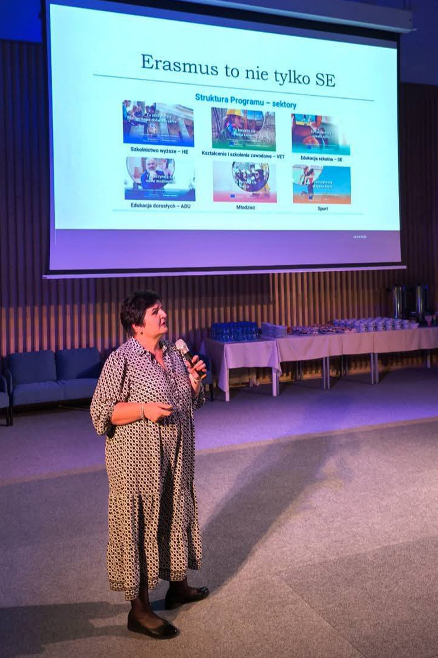 Aula Zespołu Szkół Ogólnokształcących nr 8 w Gdyni znów wypełniła się energią i inspiracjami. To już trzecia edycja konferencji Erasmus+ pod hasłem „Dobre praktyki, Wymiana Doświadczeń” na Wiczlinie, która zgromadziła grono pedagogiczne, eksperta oraz uczennice i uczniów z różnych szkół. Spotkanie pokazało, że współpraca europejska na stałe wpisała się w gdyńską edukację, otwierając uczestnikom i młodzieży drzwi do nowych doświadczeń. Edukacja, która łączy ludzi W ramach obchodów Erasmus Days 16 października w ZSO nr 8 odbyła się konferencja, w której wzięło udział blisko 70 osób – przedstawicieli szkół z Gdyni i regionu. Wydarzenie po raz kolejny zorganizowały z zaangażowaniem Izabella Niklewska i Małgorzata Lesisz, nauczycielki z 17 LO na Wiczlinie, które od lat promują ideę współpracy europejskiej. Konferencję rozpoczął dyrektor szkoły Witold Chudyszewicz, witając wszystkich gości i podkreślając, jak ważna jest wymiana doświadczeń między placówkami. Projekty Erasmus+ uczą współpracy w różnorodnym środowisku, pomagają lepiej rozumieć inne kultury i punkty widzenia. Dzięki nim młodzi ludzie rozwijają otwartość, dialog i umiejętność pracy w międzynarodowych zespołach – kompetencje potrzebne w nowoczesnym świecie. Dziękuję za tę oddolną inicjatywę, która realnie wzmacnia rozwój gdyńskiej oświaty i pokazuje, że edukacja łączy ludzi – powiedziała Oktawia Gorzeńska, wiceprezydentka Miasta Gdyni. Inspiracje i doświadczenia z gdyńskich szkół Konferencja była podróżą po różnorodnych projektach Erasmus+. Każdy z 13 prelegentów pokazał indywidualny wymiar współpracy międzynarodowej – od edukacji ekologicznej po praktyki zawodowe za granicą.Anna Pączek, dyrektorka Szkoły Podstawowej nr 26 w Gdyni i nauczycielka Aleksandra Duraj opowiadały, jak udział w Erasmus+ wzmacnia grono pedagogiczne i integruje społeczność szkolną.Aleksandra Dobke z Zespołu Szkół Sportowych i Ogólnokształcących w Gdańsku w przystępny sposób wyjaśniła, jak rozpocząć swoją przygodę z programem Erasmus+, także dla osób, które dopiero planują swoje pierwsze projekty. Najważniejsze jest stworzenie silnego zespołu. To właśnie współpraca, zaangażowanie i wzajemne wsparcie dają sukces w projektach Erasmus+ – podkreśliła podczas swojego wystąpienia Aleksandra Dobke z ZSSiO w Gdańsku. Jednym z bardziej oczekiwanych punktów programu było forum pytań i odpowiedzi prowadzone przez Michała Sosnowskiego z Agencji Narodowej Erasmus+, który odpowiadał na pytania uczestników i dzielił się praktycznymi wskazówkami.Beata Przyradska, wicedyrektorka V Liceum Ogólnokształcącego im. płk. Stanisława Dąbka, opowiedziała o projekcie „Związani z morzem”, który otworzył uczennicom i uczniom drogę do poznania europejskich kultur i rozwijania zainteresowań morskich. Jolanta Wdowiak z Zespołu Szkół Administracyjno-Ekonomicznych przedstawiła działania w ramach projektu Jean Monnet – European Values & Migration, który uczy młodzież tolerancji i otwartości.Cenne doświadczenia zawodowe przybliżyli też Rafał Nowicki z Zespołu Szkół Chłodniczych i Elektronicznych oraz Agnieszka Dutkiewicz z Zespołu Szkół Hotelarsko-Gastronomicznych, która opowiedziała o projekcie „Włoska tradycja – polska innowacja”, który, mimo trudności, przyniósł uczennicom i uczniom wiele sukcesów i satysfakcji.Anna Szydłowska z Powiatowego Zespołu Szkół nr 1 w Rumi pokazała, jak Erasmus+ wprowadza innowacje do codziennej pracy szkoły, a Beata Faber i Aleksandra Kowalewska ze Szkoły Podstawowej nr 23 zaprezentowały ekologiczny projekt „Zielony zakątek naszej szkoły”. Młodzież w roli ambasadorów europejskich wartości Na zakończenie konferencji głos zabrali uczennice i uczniowie Liceum Ogólnokształcącego nr 17 w Gdyni, którzy – razem z organizatorkami – pokazali, jak Erasmus+ pomaga rozwijać pasje, pewność siebie i otwartość na inne kultury. Każdy projekt Erasmus+ to coś więcej niż nauka języka czy wyjazd. To spotkanie ludzi, kultur i pomysłów. Dzięki takim wydarzeniom możemy zobaczyć, że współpraca naprawdę ma sens i przynosi efekty, które zostają z nami na długo – podkreśliła Izabella Niklewska, jedna z organizatorek konferencji. Galeria zdjęć Pobierz galerię Dobre praktyki, Erasmus+ po raz trzeci w ZSO nr 8, na zdjęciu Witold Chudyszewicz, dyrektor ZSO nr 8 w Gdyni (fot. Katarzyna Balcerzak) Pobierz zdjęcie Dobre praktyki, Erasmus+ po raz trzeci w ZSO nr 8 w Gdyni (fot. Katarzyna Balcerzak) Pobierz zdjęcie Dobre praktyki, Erasmus+ po raz trzeci w ZSO nr 8 w Gdyni, na zdjęciu uczniowie 17 LO w Gdyni prowadzący wydarzenie (fot. Katarzyna Balcerzak) Pobierz zdjęcie Dobre praktyki, Erasmus+ po raz trzeci w ZSO nr 8 w Gdyni (fot. Katarzyna Balcerzak) Pobierz zdjęcie Dobre praktyki, Erasmus+ po raz trzeci w ZSO nr 8 w Gdyni, na zdjęciu Rafał Nowicki, nauczyciel ZSChiEw Gdyni, (fot. mat. prasowy 17 LO)) Pobierz zdjęcie Dobre praktyki, Erasmus+ po raz trzeci w ZSO nr 8 w Gdyni (fot. Katarzyna Balcerzak) Pobierz zdjęcie Dobre praktyki, Erasmus+ po raz trzeci w ZSO nr 8 w Gdyni, na zdjęciu Aleksandra Dobke, nauczycielka w ZSSiO w Gdańsku (fot. mat. prasowy 17 LO)) Pobierz zdjęcie Dobre praktyki, Erasmus+ po raz trzeci w ZSO nr 8, na zdjęciu z przodu Izabella Niklewska, koordynatorka Erasmus+ ZSO nr 8 w Gdyni (fot. Katarzyna Balcerzak) Pobierz zdjęcie Dobre praktyki, Erasmus+ po raz trzeci w ZSO nr 8 w Gdyni, na zdjęciu Anna Szydłowska, z PZS nr 1 w Rumi, I Liceum Ogólnokształcące (fot. mat. prasowy 17 LO)) Pobierz zdjęcie Dobre praktyki, Erasmus+ po raz trzeci w ZSO nr 8, na zdjęciu z przodu Małgorzata Lesisz, koordynatorka Erasmus+ ZSO nr 8 w Gdyni (fot. Katarzyna Balcerzak) Pobierz zdjęcie Warunki pobierania Wszelkie prawa do zdjęć lub grafik prezentowanych w ramach portalu, należą