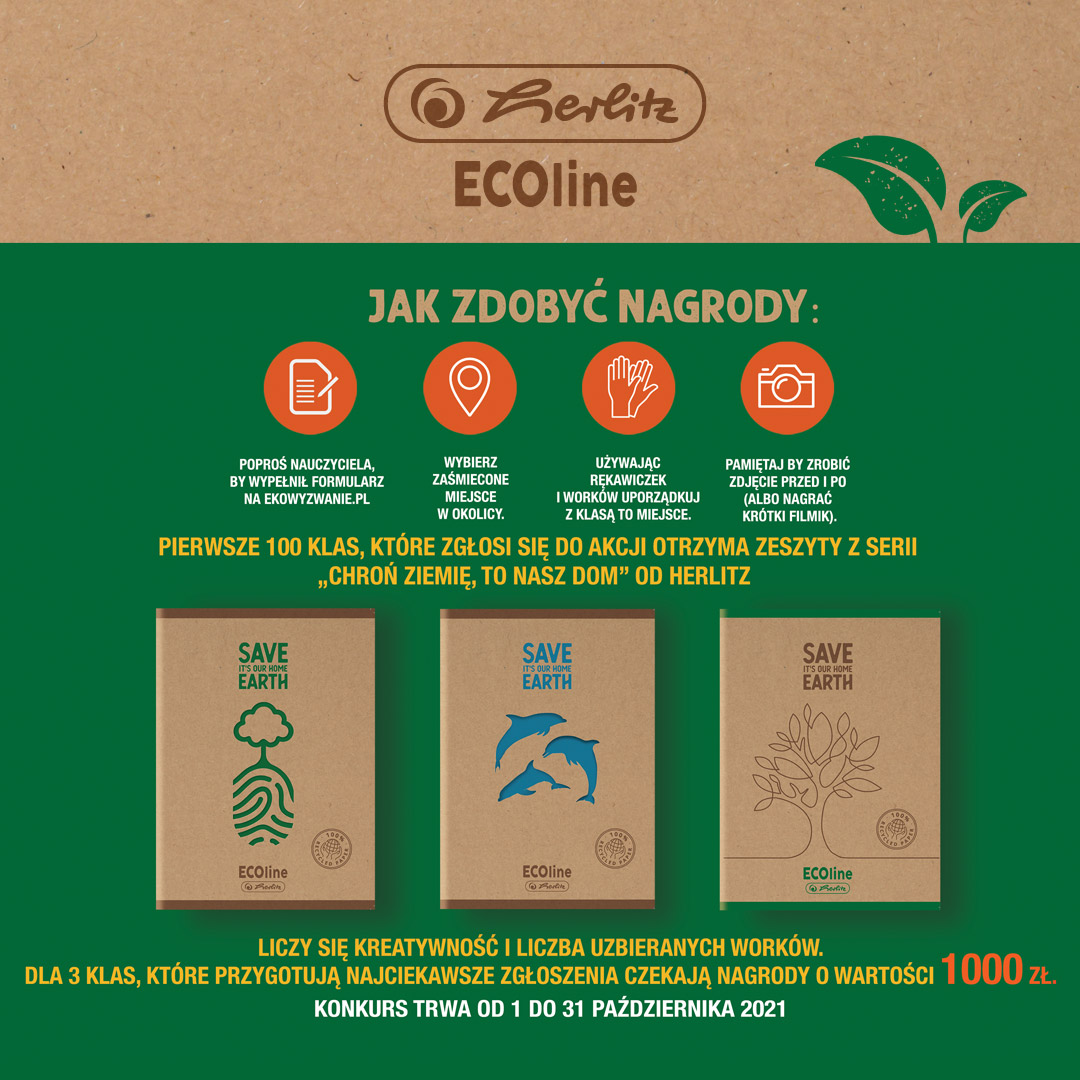 Idea konkursu jest bardzo prosta. Wystarczy podjąć wyzwanie i razem ze swoją klasą wysprzątać wybrane miejsce oraz udokumentować to zdjęciami bądź filmami. Dzięki temu można otrzymać ekologiczne nagrody. – Raz w roku we wrześniu odbywa się międzynarodowa akcja „Sprzątanie świata”. Uczestniczą w niej państwa i miasta z całego świata, w tym również Gdynia. Tego typu inicjatywy pokazują skalę problemu, jakim jest zaśmiecanie środowiska. Gdynianie zawsze licznie i chętnie sprzątają swoją najbliższą okolicę. Podczas tej wrześniowej akcji mieszkańcy spotykają się w małych grupach i spacerując po dzielnicach, zbierają powyrzucane gdzie bądź odpadki. Tym samym sprawiają, że w ich najbliższym otoczeniu jest po prostu czyściej i przyjemniej – mówi Bartosz Bartoszewicz, wiceprezydent Gdyni ds. jakości życia. – Firma Herlitz ogłosiła #ekowyzwanie dla szkół podstawowych i ponadpodstawowych. Zachęcam wszystkich gdyńskich uczniów i ich nauczycieli, aby wziąć w nim udział. Firma Herlitz ogłosiła konkurs, w którym można wygrać cenne nagrody. Laureaci trzech pierwszych miejsc otrzymają pakiety artykułów papierniczych o wartości 1000 zł każdy. Dodatkowo sto najlepszych zespołów, które zgłoszą się do konkursu, otrzyma nagrodę gwarantowaną w postaci pakietu zeszytów z ekologicznej linii „Save Earth It’s our home”. – Wierzymy, że kształtowanie świadomości związanej z ochroną środowiska i dbałością o nie to proces, w który powinni zaangażować się właśnie najmłodsi – mówi Jacek Pobłocki, head of marketing w firmie Herlitz. – W pierwszej edycji #ekowyzwania, która odbyła się w 2020 roku, ponad 1000 uczniów wysprzątało niemal 100 miejsc w całej Polsce i zebrało ponad tonę śmieci. Dlatego liczymy na to, że w tym roku w akcję zaangażuje się jeszcze więcej szkół. Wyzwanie jest bardzo proste, a klasy zgłaszają nauczyciele. Należy znaleźć zaśmiecone miejsce w najbliższej okolicy i sfotografować, jak wyglądało przed wkroczeniem tam uczniów. Potem posprzątać je (oczywiście zachowując środki bezpieczeństwa), udokumentować efekty i nominować do akcji kolejne szkoły. Za każdy worek widoczny na zdjęciu są przyznawane punkty. Dodatkową notę jury może przyznać za przebrania uczniów, plakaty czy ciekawie zaaranżowane zdjęcia. Punkty zdobywa się również za nominowanie kolejnych szkół, które podejmą wyzwanie. Szczegóły akcji są dostępne na stronie: http://ekowyzwanie.pl/. Tam też można znaleźć materiały ze scenariuszami ekolekcji. Akcja trwa do 31 października. Życzymy powodzenia i czekamy na relacje. Opublikowano: 22.10.2021 15:39 Autor: Sylwia Szumielewicz - Tobiasz (s.szumielewicz@gdynia.pl) Zmodyfikowano: 24.10.2021 09:58 Zmodyfikował: Redakcja portalu Gdynia.pl