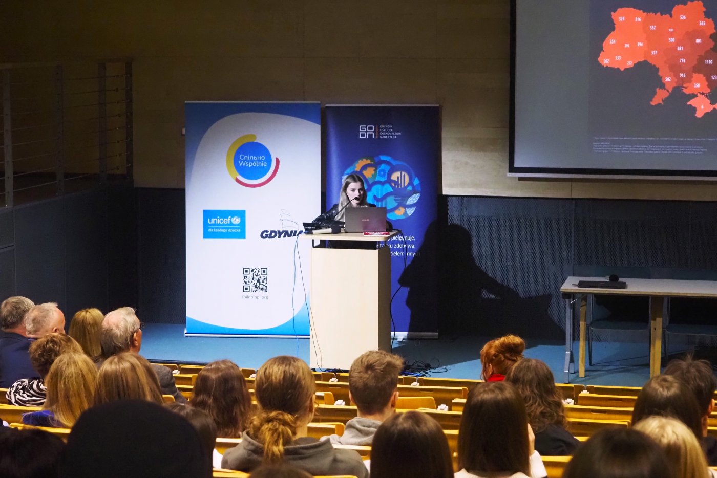 O dzieciach, których prawa są łamane podczas wojny w Ukrainie, ale też w naszym kraju, o prawie do prywatności i popełniania błędów, braku dostępu do specjalistów, rosnącej epidemii depresji mówiono dzisiaj podczas konferencji „Dzieci mają głos”. Spotkanie było częścią obchodów Międzynarodowego Dnia Praw Dziecka, który w tym roku w Gdyni świętowaliśmy wyjątkowo hucznie. To była niezwykła i jedyna w swoim rodzaju konferencja: w roli prelegentów wystąpiła zaangażowana młodzież dwóch gdyńskich liceów „Dwójki” i „Trójki”. Wydarzenie zorganizowali Gdyński Ośrodek Doskonalenia Nauczycieli i Biuro ds. Jakości Życia Urzędu Miasta. - 20 listopada to niezwykle ważny dzień, rocznica podpisania Konwencji Praw Dziecka – mówi Bartosz Bartoszewicz, wiceprezydent Gdyni ds. jakości życia. – To moment, w którym przypominamy o tym, jak bardzo ważne są prawa dziecka. W takim miejscu jak w Gdyni, jest to szczególnie widoczne, dlatego, że byliśmy pierwszym miastem w Polsce, które dołączyło do takich miast jak Londyn i Paryż i formalnie otrzymało tytuł Miasta Przyjaznego Dzieciom nadawany przez UNICEF. To dobra okazja, aby przypominać o prawach dziecka. Dzisiaj także w Gdyni realizowana jest konferencja, która oczywiście dotyczy praw dziecka, ale jest to konferencja, w organizację której zaangażowała się młodzież. To najmłodsi mieszkańcy naszego miasta, mówią o prawach dziecka z własnej perspektywy. Na uczestnikach duże wrażenie zrobiła prezentacja Dashy Gelety, która w sposób niezwykle zaangażowany, w roli uczestnika najważniejszych wydarzeń, mówiła o tym, w jaki sposób prawa dzieci łamie wojna.Zofia Licau, Łucaj Kalda i Dominik Włodarczyk, przedstawiciele Klubu Europejskiego z II Liceum Ogólnokształcącego z Oddziałami Dwujęzycznymi, podnieśli ważną kwestię praw dzieci transpłciowych, z kolei Jan Górecki z Młodzieżowej Rady Miasta, skupił się na prawach ucznia w ujęciu bardzo konkretnym i praktycznym.Bardzo ciekawe spojrzenie na to, na ile prawa dzieci przystają do współczesnego świata, przedstawiły Zofia Hacińska i Lena Czerwińska z III Liceum Ogólnokształcącego z Oddziałami Dwujęzycznymi.Podsumowaniem wszystkich wystąpień była jedyna prezentacja, którą prowadziła osoba dorosła dr Marta Kutniewska-Kubik z Centrum Medycy w Sercu Gdyni, która dotyczyła konsekwencji łamania praw dziecka. - Chciałam poruszyć temat praw, które są mniej oczywiste, jak prawo do doświadczania, popełniania błędów i wyciągania wniosków, prawo dzieci do bycia sobą, a nie tylko projektem nas, dorosłych – mówi dr Marta Kutniewska-Kubik. – W swoim wystąpieniu poruszam smutne konsekwencje łamania praw: rosnącą ilość zaburzeń psychicznych wśród dzieci i młodzieży, co w zestawieniu z trudnym dostępem do specjalistycznej pomocy, zmusza nas, dorosłych, do bardziej skutecznych działań. Głośno i gwarnie o prawach dzieci rozmawiali także najmłodsi uczniowie gdyńskich szkół podczas warsztatów w Spilno Gdynia, które były dwujęzyczne i bardzo angażujące. Poza tym, o prawach dziecka mówiono dziś w wielu gdyńskich szkołach i przedszkolach, a na znak solidarności, wiele gdyńskich dzieci, młodzież, ale też również dorosłych, ubrało się dziś na niebiesko. To jeszcze nie koniec dzisiejszych obchodów. Wieczorem w godzinach 17.00-23.00 podświetlimy na niebiesko budynek Muzeum Emigracji, podobnie jak kilka innych ważnych budynków w całej Polsce w tym między innymi: Spodek w Katowicach, Stadion we Wrocławiu, Pałac Kultury i Nauki w Warszawie czy stoczniowe żurawie w Gdańsku. Konwencja o prawach dziecka została przyjęta przez Zgromadzenie Ogólne Narodów Zjednoczonych. Jest to najważniejszy na świecie dokument dotyczący prawa dziecka. Rocznica jego podpisania obchodzona jest jako Międzynarodowy Dzień Praw Dziecka – jedno z najważniejszych dni dla UNICEF, który zajmuje się prawami dzieci na całym świecie. Galeria zdjęć Pobierz galerię Na uczestnikach duże wrażenie zrobiła prezentacja Dashy Gelety z III LO // fot. Mariusz Biernacik Pobierz zdjęcie Na uczestnikach duże wrażenie zrobiła prezentacja Dashy Gelety z III LO // fot. Mariusz Biernacik Pobierz zdjęcie Konferencja "Dzieci mają głos" w Gdyni // fot. Mariusz Biernacik Pobierz zdjęcie Konferencja "Dzieci mają głos" w Gdyni // fot. Mariusz Biernacik Pobierz zdjęcie Konferencja "Dzieci mają głos" w Gdyni // fot. Mariusz Biernacik Pobierz zdjęcie Warsztaty w Spilno Gdynia dla najmłodszych dzieci // fot. Mariusz Biernacik Pobierz zdjęcie Warsztaty w Spilno Gdynia dla najmłodszych dzieci // fot. Mariusz Biernacik Pobierz zdjęcie Warsztaty dla najmłodszych dzieci w Spilno Gdynia // fot. Mariusz Biernacik Pobierz zdjęcie Warsztaty dla najmłodszych dzieci w Spilno Gdynia // fot. Mariusz Biernacik Pobierz zdjęcie Warsztaty dla najmłodszych dzieci w Spilno Gdynia // fot. Mariusz Biernacik Pobierz zdjęcie Warsztaty dla najmłodszych dzieci w Spilno Gdynia // fot. Mariusz Biernacik Pobierz zdjęcie Warsztaty dla najmłodszych dzieci w Spilno Gdynia // fot. Mariusz Biernacik Pobierz zdjęcie Warunki pobierania Wszelkie prawa do zdjęć lub grafik prezentowanych w ramach portalu, należą do Prowadzącego portal lub do podmiotów z nim współpracujących i podlegają ochronie prawnej. Prowadzący portal zezwala na kopiowanie i przedstawianie utworów jedynie w celach niekomercyjnych oraz pod warunkiem zachowania go w oryginalnej postaci i zachowaniem kontekstu tematu, do którego zostało wykorzystaneprzez redakcję gdynia.pl. Opublikowane materiały powinny zawsze zawierać źródło, czyli adres strony www.gdynia.pl. Na publikowanie utworów w innych celach wymagana jest zgoda właściciela strony czyli Prowadzącego portal. Opublikowano: 20.11.2023 10:28 Autor: Aneta Marczak (aneta.marczak@gdynia.pl) Zmodyfikowano: 21.11.2023 09:18 Zmodyfikował: Aneta Marczak