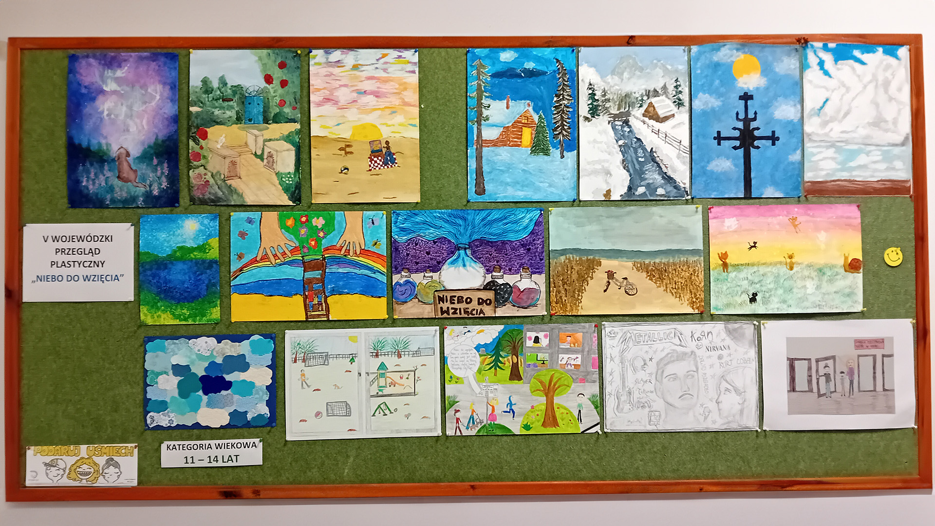 Czym jest dla dziecka jego niebo? Rodziną, przyjaciółmi, pasją, a może miejscem, w którym czuje się dobrze? Ogólnopolski Przegląd Plastyczny „Niebo do wzięcia” zaprasza uczniów szkół podstawowych do pokazania swojego świata poprzez rysunek i malarstwo. Po pięciu latach organizowania Wojewódzkiego Przeglądu Plastycznego „Niebo do wzięcia” inicjatywa Fundacji Przytulny Domek, Gdyńskiej Szkoły Społecznej i Oddziału Morskiego PTTK w Gdyni wkracza do przestrzeni ogólnopolskiej. Tegoroczna VI edycja, po raz pierwszy skierowana do uczniów szkół podstawowych z całego kraju, otwiera możliwość szerszej wymiany twórczych doświadczeń młodych artystów. W ostatniej edycji, wojewódzkiej, napłynęło 160 prac, a nagrodzono 44 młodych twórców. Celem I Ogólnopolskiego Przeglądu Plastycznego „Niebo do wzięcia” jest przede wszystkim wspieranie dzieci i młodzieży w rozwijaniu ich zdolności artystycznych. Wydarzenie ma też pobudzać wyobraźnię i wrażliwość, pomagać dostrzegać piękno świata i otoczenia oraz skłaniać do myślenia o własnych pasjach i potrzebach. Przegląd daje okazję do refleksji nad tym, co jest dla nas naprawdę ważne i co sprawia, że nasze „niebo” staje się bliższe. Prace będzie można przesyłać w terminie od 20 stycznia do 30 kwietnia 2026 r.Hasło przewodnie Fundacji Przytulny Domek wywodzi się z idei, że „niebo” – symbol dobra, spokoju, relacji i wartości, które budują codzienne życie – jest bliżej, niż nam się wydaje. W sztuce dzieci i młodzieży to przesłanie staje się szczególnie wyraziste: dzięki rysunkom i obrazom można zobaczyć, co dla młodego człowieka jest ważne, czym żyje, co daje mu radość lub pozwala odreagować trudniejsze emocje. Wyobraźnia, ekspresja i pasja twórcza są nie tylko formą rozwoju, ale także sposobem komunikacji. Każde spotkanie z młodą sztuką staje się okazją do dialogu i lepszego zrozumienia, a towarzyszenie dzieciom w odkrywaniu talentów przynosi ogromną satysfakcję – podkreśla organizatorka przeglądu, prezeska Fundacji Przytulny Domek oraz nauczycielka języka polskiego w SP 17 w Gdyni Justyna Sudzik. Prace finalistów V Wojewódzkiego Przeglądu Plastycznego „Niebo do wzięcia” w kategorii wiekowej 11-14 lat (mat. Fundacji Przytulny Domek)Patronami honorowymi tej edycji konkursu są: prezydent Gdyni Aleksandra Kosiorek i pomorski kurator oświaty Grzegorz Kryger. Zasady udziału Przegląd przeznaczony jest dla uczniów szkół podstawowych. Każda szkoła może przesłać maksymalnie 15 prac. Jury wybierze około 21 prac do wystawy. Wszyscy uczestnicy otrzymają dyplomy, a opiekunowie – podziękowania. Kategorie wiekowe: 5-7 lat, 8-11 lat, 12-15 lat. Techniki: malarstwo, rysunek, grafika, collage (prośba o unikanie niestabilnych materiałów). Format: A3 lub A4. Termin nadsyłania prac: 20 stycznia-30 kwietnia 2026 r. Prace nadesłane po terminie, niepodpisane lub w innym formacie nie będą oceniane.Wyniki zostaną ogłoszone 19 maja 2026 r. Uroczyste otwarcie wystawy oraz wręczenie nagród i dyplomów planowane jest na maj 2026 r. Informacje o przeglądzie można uzyskać telefonicznie: 885 280 333, mailowo: justyna.sudzik@gmail.com lub na stronie fundacji. Adres korespondencyjny do nadsyłania prac na konkurs: Szkoła Podstawowa nr 17, ul. Grabowo 12, 81-265 Gdynia dopisek: „Niebo do wzięcia”.Regulamin przeglądu plastycznego i karta zgłoszenia w załączniku. Do pobrania Regulamin przeglądu plastycznego i karta zgłoszenia I Ogólnopolski Przegląd Plastyczny „Niebo do wzięcia” pdf287kb Opublikowano: 02.01.2026 12:30 Autor: Katarzyna Balcerzak (katarzyna.balcerzak@gdynia.pl) Zmodyfikowano: 02.01.2026 12:37 Zmodyfikował: Aleksandra Dylejko