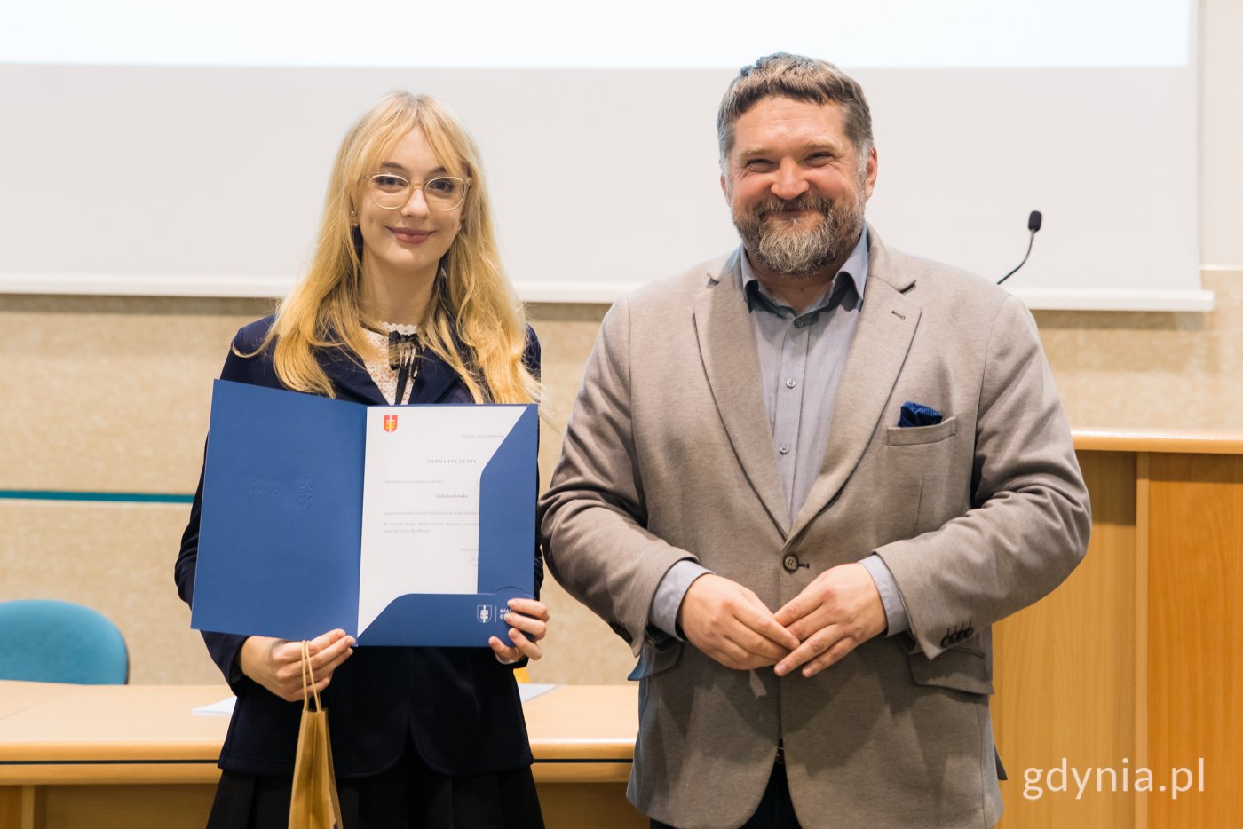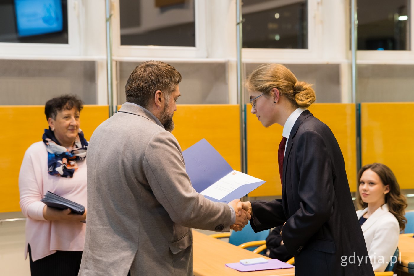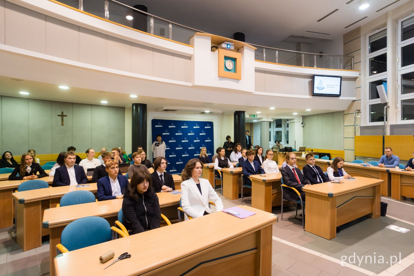 Młodzieżowa Rada Miasta IX kadencji rozpoczęła pracę. Podczas pierwszego posiedzenia 19 uczennic i uczniów złożyło ślubowanie i odebrało zaświadczenia stwierdzające objęcie mandatu. Wyłoniono również członków prezydium – funkcję przewodniczącej objęła uczennica Zuzanna Rybikowska, wiceprzewodniczącymi zostali: Aleksy Żukowski i Iga Drzewiecka, a sekretarzem Zofia Lubańska. Posiedzenie Młodzieżowej Rady Miasta IX kadencji rozpoczęło się w środę, 29 października, o godz. 17:00 w sali obrad Rady Miasta Gdyni. Pierwszą sesję rozpoczął przewodniczący Rady Miasta Tadeusz Szemiot. 19 uczennic i uczniów złożyło ślubowanie i odebrało zaświadczenia stwierdzające objęcie mandatu. Odnoszę wrażenie, że zainteresowanie Młodzieżową Radą Miasta sukcesywnie rośnie. Młodzież w coraz większym stopniu zaczyna interesować się działalnością społeczną. Staramy się stwarzać możliwości do rozwoju po to, aby młodzi ludzie mieli szansę zdobyć doświadczenie i mieć realny wpływ na otaczającą rzeczywistość – mówi Tadeusz Szemiot, przewodniczący Rady Miasta Gdyni. Radni bezwzględną większością głosów wyłonili prezydium. Funkcję przewodniczącej objęła Zuzanna Rybikowska. Wiceprzewodniczącymi zostali: Aleksy Żukowski i Iga Drzewiecka, natomiast sekretarzem Zofia Lubańska.Na zdjęciu (od lewej): sekretarz Zofia Lubańska, wiceprzewodnicząca Iga Drzewicka, przewodnicząca Zuzanna Rybikowska, wiceprzewodniczący Aleksy Żukowski (fot. Paweł Budziński)Młodzieżowi radni IX kadencji: Marcel Biały, Kamil Brodowski, Hanna Brzozowska, Iga Drzewiecka, Maja Firgon, Piotr Januka, Mariusz Jaroń, Milena Kamińska, Zofia Lubańska, Mariusz Paczul, Kamil Pałka, Zuzanna Rybikowska, Tomasz Sowiński, Apolonia Torłopp, Wiktoria Trykowska, Katsiaryna Tskhanovich, Ignacy Urbański, Maciej Wyszyński, Aleksy Żukowski. Radni zapowiadają, że będą chcieli skupić się na wysłuchaniu potrzeb gdyńskiej młodzieży i kontynuowaniu inicjatyw rozpoczętych przez uczennice i uczniów minionych kadencji. Jestem totalnie zaskoczona. Przede wszystkim będę chciała skupić się na wysłuchaniu potrzeb i pomysłów wszystkich radnych. Osobiście zamierzam prowadzić konferencję dla młodzieży podczas Dnia Świadomości Autyzmu – mówi Zuzanna Rybikowska, przewodnicząca Młodzieżowej Rady Miasta. – Ponownie planuję wyruszyć z Kongresem Świadomości Zdrowia Psychicznego, tym razem chciałabym, żeby ten projekt ruszył w różnych miastach. Chciałąbym, aby każde miasto miało swoją tematykę, jedno zajmie się lękami, drugie odżywianiem, a trzecie uzależnieniami. Czym zajmuje się Młodzieżowa Rada Miasta? Celem powołania Młodzieżowej Rady Miasta jest przede wszystkim włączenie młodzieży w procesy podejmowania decyzji, które dotyczą młodych osób oraz ich najbliższego otoczenia. Rada ma reprezentować młode mieszkanki i mieszkańców Gdyni, ale również prowadzić działania na rzecz upowszechniania wśród nich idei samorządności i kształtowania postaw obywatelskich. Zakres celów, jakie może realizować młodzieżowa rada jest szeroki, należą do nich m.in.: upowszechnianie wśród młodych osób wiedzy o samorządzie terytorialnym, włączenie młodzieży w procesy konsultacyjne, dostarczenie młodzieży narzędzi i wiedzy o uczestnictwie w debacie publicznej, udział młodzieży w procesach kształtowania lokalnych polityk, ze szczególnym uwzględnieniem polityki młodzieżowej, budowa świadomości obywatelskiej, zwiększanie zaangażowania w procesy tworzenia projektów i inwestycji pod kątem młodych mieszkańców i mieszkanek gminy/miasta, inicjowanie działań na rzecz młodzieży, kształtowanie postaw dotyczących samorządności. Spotkania Młodzieżowej Rady Miasta IX kadencji będą odbywać się cyklicznie w ostatni czwartek miesiąca. Najbliższa sesja odbędzie 27 listopada o godz. 17:00 w sali obrad Rady Miasta Gdyni.Życzymy owocnych obrad! Galeria zdjęć Pobierz galerię Pierwsze posiedzenie Młodzieżowej Rady Miasta odbyło się w sali obrad Rady Miasta (fot. Paweł Budziński) Pobierz zdjęcie Tadeusz Szemiot, przewodniczący Rady Miasta Gdyni (fot. Paweł Budziński) Pobierz zdjęcie Na zdjęciu (od lewej): Ignacy Urbański, Hanna Brzozowska, Maciej Wyszyński (fot. Paweł Budziński) Pobierz zdjęcie Agnieszka Tokarska, radna (fot. Paweł Budziński) Pobierz zdjęcie Posiedzenie odbyło się w sali obrad Rady Miasta (fot. Paweł Budziński) Pobierz zdjęcie Zuzanna Rybikowska, przewodnicząca Młodzieżowej Rady Miasta (fot. Paweł Budziński) Pobierz zdjęcie Dominik Aziewicz, radny (fot. Paweł Budziński) Pobierz zdjęcie Radni IX kadencji (fot. Paweł Budziński) Pobierz zdjęcie Na zdjęciu: Tadeusz Szemiot, przewodniczący Rady Miasta i Marcel Biały, radny Młodzieżowej Rady Miasta (fot. Paweł Budziński) Pobierz zdjęcie Na zdjęciu (od lewej): Kamil Brodowski, radny Młodzieżowej Rady Miasta i Tadeusz Szemiot, przewodniczący Rady Miasta (fot. Paweł Budziński) Pobierz zdjęcie Na zdjęciu (od lewej): Iga Drzewiecka, radna Młodzieżowej Rady Miasta, Tadeusz Szemiot, przewodniczący Rady Miasta (fot. Paweł Budziński) Pobierz zdjęcie Na zdjęciu (od lewej): Maja Firgon, radna Młodzieżowej Rady Miasta, Tadeusz Szemiot, przewodniczący Rady Miasta (fot. Paweł Budziński) Pobierz zdjęcie Na zdjęciu (od lewej): Paweł Januka, radny Młodzieżowej Rady Miasta, Tadeusz Szemiot, przewodniczący Rady Miasta (fot. Paweł Budziński) Pobierz zdjęcie Na zdjęciu (od lewej): Mateusz Jaroń, Tadeusz Szemiot, przewodniczący Rady Miasta (fot. Paweł Budziński) Pobierz zdjęcie Na zdjęciu (od lewej): Zofia Lubańska, sekretarz Młodzieżowej Rady Miasta, Tadeusz Szemiot, przewodniczący Rady Miasta (fot. Paweł Budziński) Pobierz zdjęcie Na zdjęciu (od lewej): Mariusz Paczul, radny Młodzieżowej Rady Miasta, Tadeusz Szemiot, przewodniczący Rady Miasta (fot. Paweł