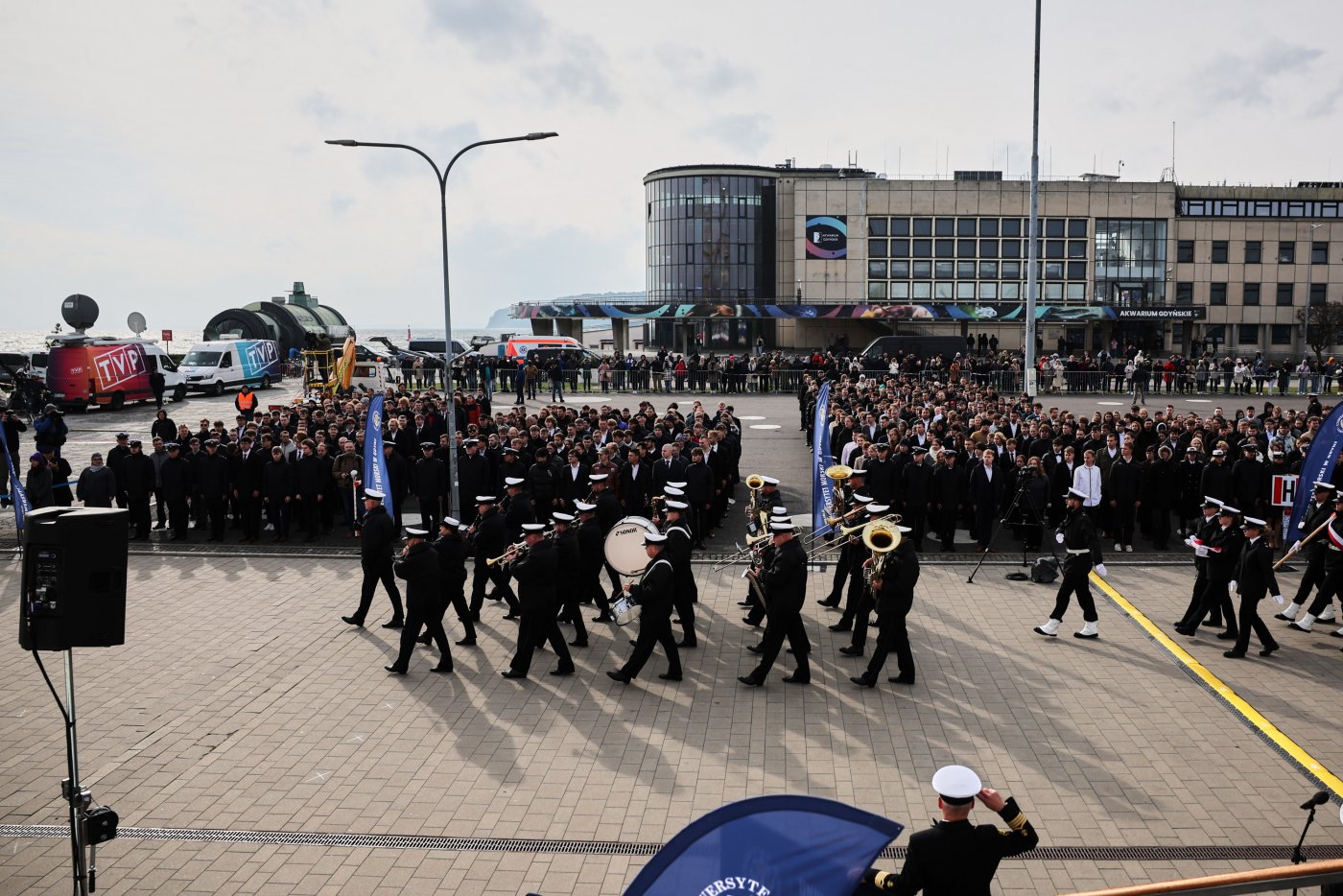 Na Molo Południowym, tuż przy zacumowanym tu „Darze Młodzieży", studenci Uniwersytetu Morskiego zainaugurowali w sobotę nowy rok akademicki. Inauguracja nowego roku na Uniwersytecie Morskim w Gdyni to za każdym razem wielkie święto społeczności akademickiej, zwłaszcza studentów pierwszego roku. Rok akademicki 2025/2026 uroczyście i oficjalnie rozpoczął się w sobotnie przedpołudnie tradycyjnie na Molo Południowym, tuż przy zacumowanym tu „Darze Młodzieży". W wydarzeniu uniwersyteckiej społeczności towarzyszyli przedstawiciele gdyńskiego samorządu: Tadeusz Szemiot, przewodniczący Rady Miasta Gdyni i Maciej Zielonka, wiceprezydent Gdyni, a także parlamentarzyści, przyjaciele uczelni, rodziny studentów Uniwersytetu i mieszkańcy Gdyni. W inauguracji roku akademickiego na Uniwersytecie Morskim uczestniczyli: Tadeusz Szemiot, przewodniczący Rady Miasta Gdyni oraz Maciej Zielonka, wiceprezydent Gdyni (fot. Uniwersytet Morski)Nowych studentów powitał obecny w Gdyni premier Donald Tusk. Prezes Rady Ministrów podkreślał, jak bardzo potrzebni są nowi adepci morskich kierunków. Jesteście tutaj, bo Polska potrzebuje, szczególnie w tych trudnych i wymagających czasach, ludzi odważnych, wykształconych i zdeterminowanych. Tacy byli, są i muszą być w przyszłości polscy marynarze – mówił premier Donald Tusk. – Jestem też tutaj nie tylko ze względu na osobiste sentymenty, ale również dlatego, że cała Polska, w tym mój rząd, z niezwykłym skupieniem patrzy dzisiaj na nasz Bałtyk. Tutaj rozgrywa się nasza historia i nasza przyszłość w dużym stopniu będzie zależała od was, bo polskie porty – i nie ma w tym grama przesady – stają się potęgą na naszym morzu. Wydarzenie odbyło się z udziałem Donalda Tuska, premiera RP (fot. Uniwersytet Morski)Po słowach premiera RP na gdyńskim nabrzeżu wybrzmiała „Pieśń Szkoły Morskiej” wykonana przez Akademicki Chór Uniwersytetu Morskiego w Gdyni, a następnie rozpoczął się najważniejszy punkt uroczystości – akt ślubowania. W imieniu wszystkich studentów na Sztandar Uniwersytetu Morskiego w Gdyni ślubowali ci, którzy osiągnęli najlepsze wyniki w trakcie tegorocznej rekrutacji. Świadomy obowiązków studenta Uniwersytetu Morskiego w Gdyni ślubuję uroczyście dla dobra Ojczyzny zdobywać wytrwale wiedzę i umiejętności, dbać o godność studenta i dobre imię Uniwersytetu Morskiego w Gdyni, darzyć szacunkiem pracowników Uczelni, przestrzegać zasad współżycia koleżeńskiego, być prawym i uczciwym człowiekiem. Ślubuję uroczyście bronić honoru polskiej bandery oraz dochować jej wierności. Moment ślubowania (fot. Uniwersytet Morski)Na uczelni studiuje obecnie 4215 studentów i właśnie dołącza do nich 944 studentów studiów dziennych i 602 żaków zaocznych. Najpopularniejszymi kierunkami nadal pozostają: nawigacja, zarządzanie i transport. Ale czasy się zmieniają, a morska uczelnia jest na nie przygotowana. Dzisiaj rozpoczęli studia informatycy, studenci nowo powołanego wydziału uniwersytetu. Jest to odpowiedź na to, co dzieje się na świecie, czyli na sztuczną inteligencję, systemy IT, cyberbezpieczeństwo, czy pojazdy autonomiczne. Mam nadzieję, że już niedługo będziemy ekspertami również w tych dziedzinach – podkreślał prof. dr hab. inż. kpt. ż.w. Adam Weintrit, rektor Uniwersytetu Morskiego w Gdyni. Jak podkreślił obecny na uroczystości minister infrastruktury Dariusz Klimczak, sektor gospodarki morskiej jest bardzo ważny dla Polski, więc w przyszłorocznym budżecie znajdą się pieniądze na wsparcie uczelni. Zdecydowaliśmy, że nakłady na inwestycje na uczelniach morskich będą pięciokrotnie wyższe, niż dotychczas. Zdecydowaliśmy między innymi również o stworzeniu programu budowy nowych statków, w tym następcy „Daru Młodzieży" – zakończył swoją wypowiedź minister i przekazał rektorowi uczelni uchwałę rządu, która jest podstawą do budowy jednostki. Słów uznania nie krył Tadeusz Szemiot, przewodniczący Rady Miasta Gdyni. Jesteśmy dumni, że mamy własną markę w zakresie zawodów związanych z morzem i informacja o budowie nowego „Daru Młodzieży" bardzo cieszy – mówił. – To kontynuacja wspaniałej tradycji i liczymy, że już za kilka lat nasi gdyńscy studenci będą mogli się uczyć na pokładzie nowoczesnej jednostki żaglowej. A czego życzyć młodym studentom w nowym roku akademickim? Cieszymy się, że mamy nowych studentów w naszym mieście i liczymy na to, że będą wspierali naszą gospodarkę, osiedlą się w naszym mieście i razem będziemy tworzyć jedną wspólnotę. Życzę sukcesów, rozwoju i spędzania jak najwięcej czasu na morzu – podsumował Maciej Zielonka, wiceprezydent Gdyni. Nadchodzące zmiany to również największe inwestycje na wodach Bałtyku, w tym farmy wiatrowe. Pomorze potrzebuje znakomitych kadr wykształconych na naszej uczelni, w tym osób do obsługi siłowni wiatrowych.Cieszę się, że Uniwersytet Morski w Gdyni odpowiada na potrzeby gospodarki morskiej, a także naszych portów, obronności i informatyzacji związanej z walką z cyberatakami – zauważył Mieczysław Struk, marszałek województwa pomorskiego. Galeria zdjęć Pobierz galerię Inauguracja roku akademickiego na Uniwersytecie Morskim (fot. Uniwersytet Morski) Pobierz zdjęcie Inauguracja roku akademickiego na Uniwersytecie Morskim (fot. Uniwersytet Morski) Pobierz zdjęcie Prof. dr hab. inż. kpt. ż.w. Adam Weintrit, rektor Uniwersytetu Morskiego w Gdyni Pobierz zdjęcie Inauguracja roku akademickiego na Uniwersytecie Morskim. Tadeusz Szemiot, przewodniczący Rady Miasta Gdyni. (fot. Uniwersytet Morski) Pobierz zdjęcie Inauguracja roku akademickiego na Uniwersytecie Morskim. Pierwszy z prawej: Maciej Zielonka, wiceprezydent Gdyni .(fot. Uniwersytet Morski) Pobierz zdjęcie Inauguracja roku akademickiego na Uniwersytecie Morskim (fot. Uniwersytet Morski) Pobi