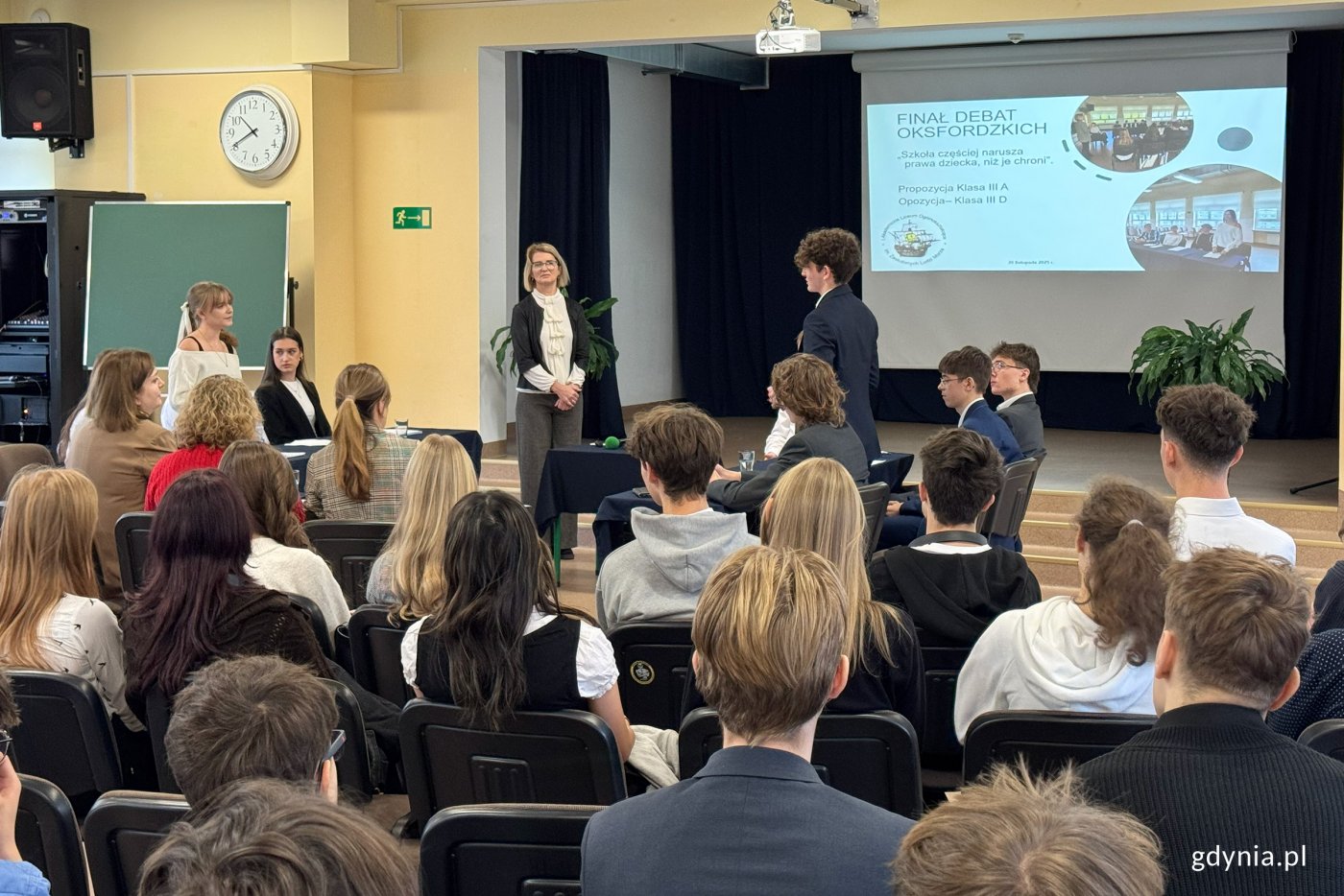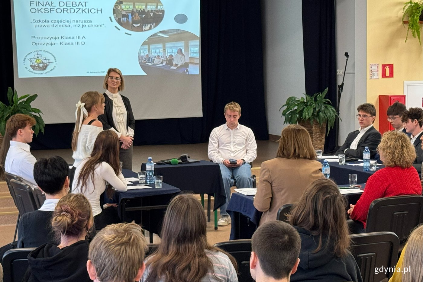 20 listopada, w Międzynarodowy Dniu Praw Dziecka, w I Akademickim Liceum Ogólnokształcącym w Gdyni odbył się finał Turnieju Debat Oksfordzkich – wydarzenie poświęcone refleksji nad prawami uczniów. 20 listopada, w Międzynarodowym Dniu Praw Dziecka, w I Akademickim Liceum Ogólnokształcącym w Gdyni odbył się finał szkolnego Turnieju Debat Oksfordzkich. Data nie była przypadkowa – przypada dokładnie na rocznicę uchwalenia przez ONZ Konwencji o prawach dziecka, dokumentu gwarantującego młodym ludziom prawo do edukacji, bezpieczeństwa, rozwoju, tożsamości oraz wyrażania własnych opinii. Szkoła postanowiła uczcić ten dzień poprzez debatę, refleksję i wymianę argumentów na temat praw uczniów.Debata była podsumowaniem czterech rund eliminacyjnych, które odbywały się w październiku i na początku listopada. W rywalizacji uczestniczyły drużyny z klas II i III, a uczniowie dyskutowali o sprawach ważnych dla współczesnej młodzieży – od aktywizmu społecznego, przez wpływ technologii, po kwestie związane z tolerancją i systemem edukacji.Do finału zakwalifikowały się drużyny z klas III A i III D z I Akademickiego Liceum Ogólnokształcącego w Gdyni. Uczniowie zmierzyli się z tezą: „Szkoła częściej narusza prawa dziecka, niż je chroni”. Temat stał się punktem wyjścia do rozmowy o codziennych doświadczeniach młodych ludzi, relacjach w środowisku szkolnym i praktycznym znaczeniu zapisów Konwencji o prawach dziecka w systemie edukacji. Debata oksfordzka stanowiła dla nas niesamowite przeżycie, które pokazało nam, jak walczyć ze swoimi słabościami oraz jak radzić sobie z presją. Dzięki przygotowaniom, które w pełni nas pochłonęły, pogłębiliśmy naszą wiedzę na temat przemów, poruszanych zagadnień i problemów, z którymi mierzy się społeczeństwo. Dało nam to także niewymierne korzyści. W przygotowaniach pomogło nam doświadczenie Bartosza Starnawskiego, moje umiejętności zarządzania projektem, niezmierny pozytywizm Łukasza Haraja oraz pomysłowość Franka Kruszyńskiego – w imieniu całej drużyny podsumował uczeń klasy III D Aleksander Wiszko uczeń klasy III D. Debata Oksfordzka z tezą: „Szkoła częściej narusza prawa dziecka, niż je chroni”, na zdjęciu uczniowie klasy III D z IALO w Gdyni (fot. Katarzyna Balcerzak) Debata była niezwykle dynamiczna i wymagająca. Choć na pierwszy rzut oka teza wydawała się prosta, w praktyce okazała się znacznie bardziej złożona. Jako strona propozycji mieliśmy trudniejsze zadanie, jednak uważam, że poradziliśmy sobie z nim bardzo dobrze i przedstawiliśmy solidne argumenty. Mimo że zwycięstwo trafiło do opozycji, samo uczestnictwo w debacie było dla mnie bardzo wartościowym doświadczeniem – zarówno pod względem merytorycznym, jak i osobistym. Możliwość zmierzenia się z takim wyzwaniem dała mi dużo satysfakcji i motywacji na przyszłość – powiedziała uczennica klasy III A Maja Czajkowska. Debata Oksfordzka z tezą: „Szkoła częściej narusza prawa dziecka, niż je chroni”, na zdjęciu uczennice i uczeń klasy III A z IALO w Gdyni (fot. Katarzyna Balcerzak)Turniej przygotowano i przeprowadzono pod opieką pedagog Anny Niemczynowicz, psycholog Agnieszki Wilkanowskiej-Szczęsnej oraz nauczycielki języka polskiego Małgorzaty Wyszyńskiej. Zespół zadbał o merytoryczne i wychowawcze aspekty przedsięwzięcia, tworząc przestrzeń do rozwijania umiejętności dialogu i świadomego udziału w życiu społecznym. Debata o prawach dziecka to nie tylko ćwiczenie retoryki – to przede wszystkim okazja, by młodzi ludzie mogli zastanowić się nad codziennymi doświadczeniami swoich rówieśników, zrozumieć, jak działają prawa w praktyce i wyrazić własny głos w ważnych społecznie sprawach – podkreśla pedagog szkoły, Anna Niemczynowicz. Debata Oksfordzka w kontekście praw dziecka to dla młodzieży okazja do poznania zapisów Konwencji ONZ, ale też szansa na rozwijanie ważnych umiejętności. Uczniowie uczą się patrzeć na problemy z różnych stron, budować jasne argumenty, słuchać innych i prowadzić spokojną, rzeczową rozmowę. Warto podkreślić, że I Akademickie Liceum Ogólnokształcące zakwalifikowano do udziału w Międzyregionalnym Turnieju Debat Oksfordzkich 2025 „Woda w centrum debaty” – co potwierdza wysoką jakość prowadzonego projektu, a także stanowi wyraz uznania dla pracy uczniów i zaangażowania nauczycieli. Eliminacje regionalne rozpoczną się 25 listopada. Historia obchodów Międzynarodowego Dnia Praw Dziecka sięga 20 listopada 1959 roku, kiedy Zgromadzenie Ogólne ONZ przyjęło Deklarację Praw Dziecka – pierwszy dokument międzynarodowy określający prawa najmłodszych. Trzydzieści lat później, w 1989 roku, przyjęto Konwencję o prawach dziecka. Systematyzowała i rozszerzała zapisy deklaracji, zapewniając każdemu dziecku m.in. prawo do życia, edukacji, ochrony przed przemocą oraz wyrażania własnego zdania. Od 36 lat 20 listopada obchodzony jest na całym świecie jako Międzynarodowy Dzień Praw Dziecka, przypominając dorosłym o obowiązku ich przestrzegania i ochrony w codziennym życiu. Galeria zdjęć Pobierz galerię 20 listopada: Międzynarodowy Dzień Praw Dziecka, na zdjęciu uczennice i uczniowie oraz Anna Niemczynowic z IALO w Gdyni (fot. Katarzyna Balcerzak) Pobierz zdjęcie Debata Oksfordzka z tezą: „Szkoła częściej narusza prawa dziecka, niż je chroni”, na zdjęciu uczniowie klasy III A z IALO w Gdyni (fot. Katarzyna Balcerzak) Pobierz zdjęcie Debata Oksfordzka z tezą: „Szkoła częściej narusza prawa dziecka, niż je chroni”, na zdjęciu uczniowie klasy III A z IALO w Gdyni (fot. Katarzyna Balcerzak) Pobierz zdjęcie 20 listopada: Międzynarodowy Dzień Praw Dziecka w I Akademickim Liceum Ogólnokształcącym w Gdyni (fot. Katarzyna Balcerzak) Pobierz zdjęcie Debata Oksfordzka z tezą: „Szkoła częściej naru