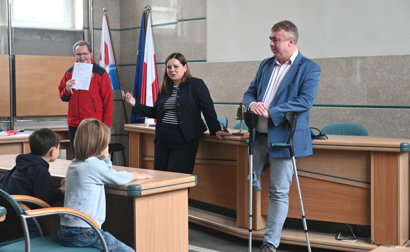 Niezwykle dociekliwi mali gdynianie z Ecole Maternelle et Ecole Primaire Trójmiasto, francuskojęzycznego przedszkola i szkoły podstawowej, odwiedzili w środę, 12 listopada Urząd Miasta. To kolejna wizyta, której celem jest edukacja obywatelska najmłodszych mieszkańców Gdyni. Maluchy z grupy „Motylki”, które uczą się w Ecole Maternelle et Ecole Primaire Trójmiasto, przybyły do gdyńskiego magistratu w towarzystwie swoich wychowawczyń, niezwykle przejęte perspektywą spotkania z panią prezydent. Na dzieci jako pierwszy czekał Arkadiusz Dzierżyński, radny miasta, i wprowadził je w tajniki działania samorządu. Pracy miał dużo, ponieważ mali goście chcieli wiedzieć, czy radych powołuje sam Pan Bóg, dlaczego flaga Gdyni jest niebieska i jakiego gatunku są tak naprawdę rybki w herbie miasta.Kolejne bardzo liczne pytania dzieci przygotowały dla Aleksandry Kosiorek, prezydent Gdyni. Interesowało je, jak ma na imię piesek pani prezydent, dlaczego weekend trwa krócej niż szkoła, jak wiele ulic jest w Gdyni. Ogromne zaciekawienie wzbudził gabinet prezydencki, dzieci z uwagą słuchały historii miasta, poszukiwały ukrytego sejfu i z dużym zaangażowaniem dyskutowały o budowniczych Gdyni. Niektóre z nich zastanawiały się nawet, czy Gdynią rządzi również.. król. Następnie przedszkolaki miały okazję do wzięcia udziału w organizowanych po raz pierwszy warsztatach z Liwią Kadłubowską-Stępień z biura Miejskiego Rzecznika Konsumentów. Temat: prawa konsumenckie najmłodszych.Kolejnym etapem wycieczki był, tradycyjnie już, Urząd Stanu Cywilnego, gdzie małych gości przywitała Inocenta Nycz, kierownik. Wizyta w Sali ślubów wzbudzała wiele emocji, a dyskusje o białych sukniach, welonach i romantycznych okolicznościach zawierania związków małżeńskich zdawały się nie mieć końca.Równie pasjonujące było dla dzieci spotkanie z EkoPatrolem Straży Miejskiej, podczas którego przedszkolaki dokładnie wypytały Leonarda Wawrzyniaka, czy delikatnie traktuje chore zwierzątka i jak radzi sobie ze żmijami w mieście.O Gdyni i historii prawie stuletniego budynku Urzędu Miasta młodzieży tradycyjnie już opowiadał pracownik biblioteki Urzędu Miasta Paweł Kurski. Galeria zdjęć Pobierz galerię Mali goście byli bardzo zainteresowani działaniem samorządu (fot. Aneta Marczak) Pobierz zdjęcie Dzieci z zaciekawieniem słuchały historii miasta (fot. Aneta Marczak) Pobierz zdjęcie Dzieci zadawały wiele pytań (fot. Aneta Marczak) Pobierz zdjęcie Arkadiusz Dzierżyński opowiadał dzieciom o flagach w sali obrad (fot. Aneta Marczak) Pobierz zdjęcie Aleksadra Kosiorek, prezydent Gdyni i Arkadiusz Dzierżyński, radny (fot. Aneta Marczak) Pobierz zdjęcie Rozmowa z prezydent Aleksandrą Kosiorek w gabinecie prezydenckim (fot. Aneta Marczak) Pobierz zdjęcie Aleksandra Koisorek częstowała małych gości słodyczami (fot. Aneta Marczak) Pobierz zdjęcie Maluchy przygotowały upominek dla pani prezydent (fot. Aneta Marczak) Pobierz zdjęcie Dzieciom bardzo podobały się warsztaty z biurem Miejskiego Rzecznika Konsumentów (fot. Aneta Marczak) Pobierz zdjęcie Liwia Kadłubowska-Stępień z biura Miejskiego Rzecznika Konsumentów w trakcie warsztatów (fot. Aneta Marczak) Pobierz zdjęcie Inocenta Nycz, kierownik USC w Sali ślubów z dziećmi (fot. Aneta Marczak) Pobierz zdjęcie Inocenta Nycz, kierownik USC w Sali ślubów z dziećmi (fot. Aneta Marczak) Pobierz zdjęcie Przedszkolaki dla miejscach dla nowożeńców (fot. Aneta Marczak) Pobierz zdjęcie Spotkanie ze Strażą Miejską (fot. Aneta Marczak) Pobierz zdjęcie Leonard Wawrzyniak zdradza dzieciom tajniki działania EkoPatrolu (fot. Aneta Marczak) Pobierz zdjęcie Leonard Wawrzyniak zdradza dzieciom tajniki działania EkoPatrolu (fot. Aneta Marczak) Pobierz zdjęcie Warunki pobierania Wszelkie prawa do zdjęć lub grafik prezentowanych w ramach portalu, należą do Prowadzącego portal lub do podmiotów z nim współpracujących i podlegają ochronie prawnej. Prowadzący portal zezwala na kopiowanie i przedstawianie utworów jedynie w celach niekomercyjnych oraz pod warunkiem zachowania go w oryginalnej postaci i zachowaniem kontekstu tematu, do którego zostało wykorzystaneprzez redakcję gdynia.pl. Opublikowane materiały powinny zawsze zawierać źródło, czyli adres strony www.gdynia.pl. Na publikowanie utworów w innych celach wymagana jest zgoda właściciela strony czyli Prowadzącego portal. Opublikowano: 12.11.2025 12:45 Autor: Aneta Marczak (aneta.marczak@gdynia.pl) Zmodyfikowano: 12.11.2025 15:53 Zmodyfikował: Jakub Winiewski