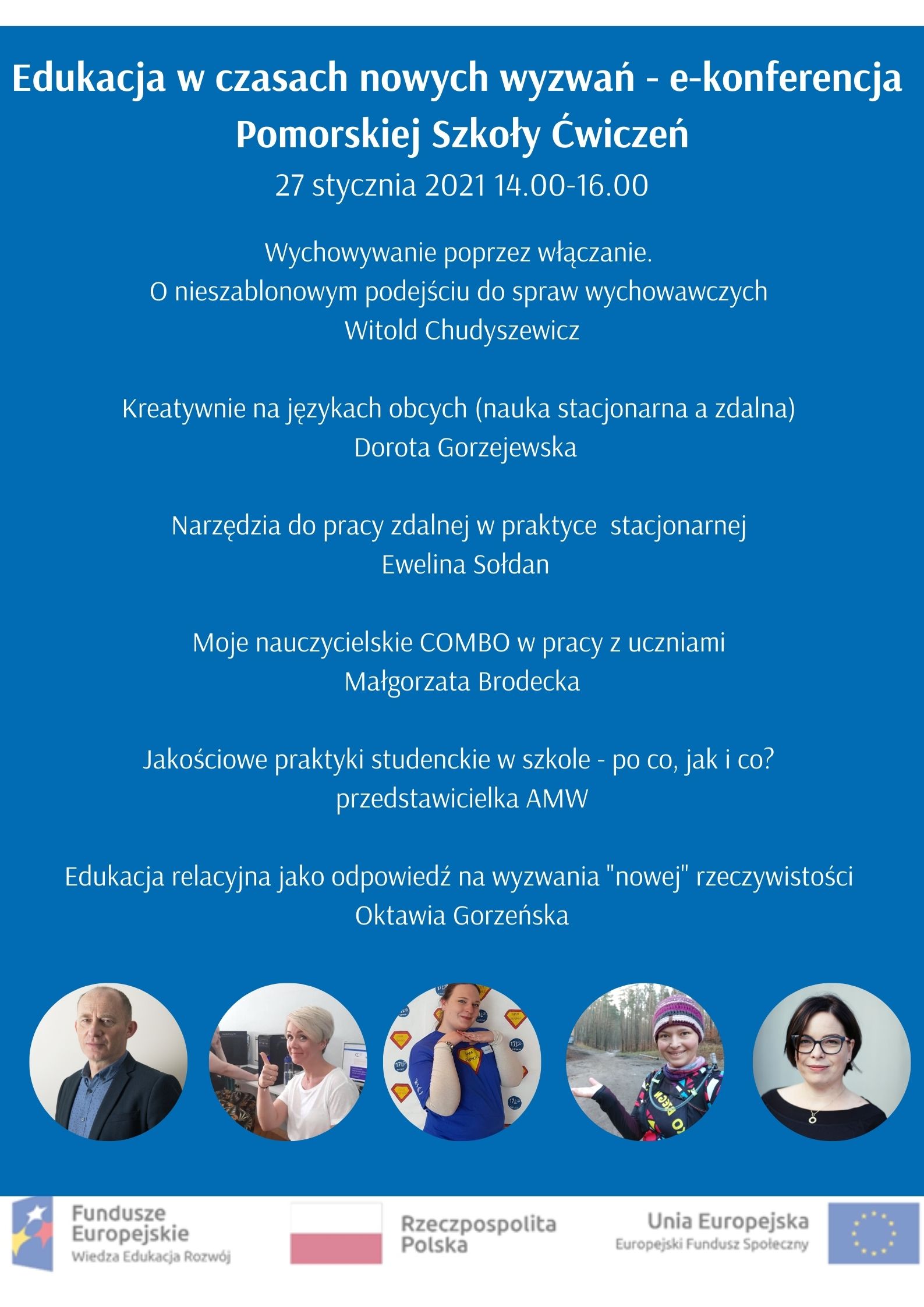 W Gdyni pełną parą ruszyła Pomorska Szkoła Ćwiczeń, czyli modelowy ośrodek wsparcia nauczycieli z zakresu form i pracy dydaktycznej w obszarze matematyki, języków obcych, przedmiotów przyrodniczych, informatyki i wychowawstwa. To długofalowy efekt projektu „Laboratorium Edukacji Przyszłości”, którego realizacja kończy się w styczniu br. W Pomorskiej Szkole Ćwiczeń nauczyciele będą doskonalić swoje umiejętności pod kątem efektywnej pracy z uczniem, poznawać nowe kierunki i trendy pedagogiczne, a okazji do tego będzie całe mnóstwo. Tym razem zapraszamy nauczycieli do udziału w niezwykle inspirującej e-konferencji, podczas której pedagodzy opowiedzą m.in. jak powstawała Szkoła Ćwiczeń w Gdyni i o czym pamiętać przy tworzeniu warsztatu pracy z uczniem w rzeczywistości nauczania zdalnego.Krótko o projekciePrzypomnijmy, rolę Pomorskiej Szkoły Ćwiczeń w Gdyni pełni XVII Liceum Ogólnokształcące na Wiczlinie. Aby mogła powstać i działać, najpierw skupiono się na efektywnym doskonaleniu zawodowym nauczycieli i trenerów z kilku szkół współpracujących w ramach projektu. Tak przygotowani nauczyciele będą później kształcić swoje koleżanki i kolegów w placówkach, w których na co dzień pracują. Projekt od grudnia 2018 r. realizuje Wydział Edukacji Urzędu Miasta Gdyni w partnerstwie z Akademią Marynarki Wojennej w Gdyni i Powiatem Wejherowskim (Powiatowy Zespół Poradni Psychologiczno-Pedagogicznych w Wejherowie). - W ramach projektu proponujemy nauczycielom innowacyjne laboratorium edukacyjne, które pomoże im przygotować się do jeszcze bardziej efektywnego rozwijania u uczniów kompetencji kluczowych i uniwersalnych. Warto wiedzieć, że to pierwsza taka szkoła na Pomorzu. Wszyscy doskonale wiemy, że zdobywanie wiedzy, rozwój osobisty i realizacja marzeń uczniów wymaga najwyższych standardów edukacyjnych. Aby tak się stało, skupiliśmy się najpierw na inwestowaniu w nauczycieli, proponując szereg dobrych rozwiązań, m.in. udział w warsztatach metodycznych czy lekcjach pokazowych. Jestem przekonany, że to dzięki ich zaangażowaniu i pomysłom gdyńska edukacja uznawana jest za najlepszą w Polsce – mówi Bartosz Bartoszewicz, wiceprezydent Gdyni ds. jakości życia. E-konferencja online – o czym będzie mowa?E-konferencja Pomorskiej Szkoły Ćwiczeń pn. „Edukacja w czasach nowych wyzwań” odbędzie się już w najbliższą środę, 27 stycznia w godz. 14.00–16.00 na platformie ClickMeeting. Jej tematem przewodnim będą dobre praktyki pracy nauczyciela niezależnie od modelu działań edukacyjnych - stacjonarnego czy zdalnego. Prelegenci - koordynatorzy poszczególnych obszarów tematycznych Szkoły Ćwiczeń (wychowawczego, języków obcych, matematyki, informatyki i przedmiotów przyrodniczych) zaprezentują doświadczenia i inspiracje z codziennej pracy w oparciu o realizację projektu i ostatnich miesięcy edukacji zdalnej. Ponadto jedna z prelekcji będzie poświęcona roli opiekuna praktyk, a poprowadzi ją przedstawiciel Akademii Marynarki Wojennej, czyli partnera Pomorskiej Szkoły Ćwiczeń. - Muszę przyznać, że realizacja „Laboratorium Edukacji Przyszłości” przypadła na bardzo ciekawy i pełen wyzwań moment. Stała się faktycznym labem eksperymentowania, zmieniania, testowania i refleksji. O tym, jak pracowaliśmy ze szkołami partnerskimi, jak budowaliśmy warsztat pracy dostosowany do nowej rzeczywistości, opowiemy w trakcie e-konferencji. To dobra okazja, by przez filtr "nowej" rzeczywistości, która zmusiła nas do redefiniowania działań i poszukiwania nowych rozwiązań, przyjrzeć się warsztatowi pracy nauczyciela i wskazać rekomendacje. Rozwijanie kompetencji, tworzenie sytuacji edukacyjnych angażujących ucznia, wzmacniających jego sprawczość, refleksyjność i umiejętność współpracy to droga, którą powinniśmy pójść. W trakcie konferencji pokażemy, jak to robić – mówi Oktawia Gorzeńska, koordynatorka merytoryczna projektu. Jeszcze są wolne miejsca – nauczyciele zainteresowani udziałem w tym wydarzeniu mogą zarejestrować się TU. Projekt „Laboratorium Edukacji Przyszłości” jest finansowany z Europejskiego Funduszu Społecznego w ramach Programu Operacyjnego Wiedza Edukacja Rozwój. Do pobrania Program e-Konferencji Pomorskiej Szkoły Ćwiczeń jpg312kb Opublikowano: 22.01.2021 13:17 Autor: Małgorzata Chudzińska, Wydział Edukacji (malgorzata.chudzinska@gdynia.pl) Zmodyfikowano: 22.01.2021 14:47 Zmodyfikował: Redakcja portalu Gdynia.pl
