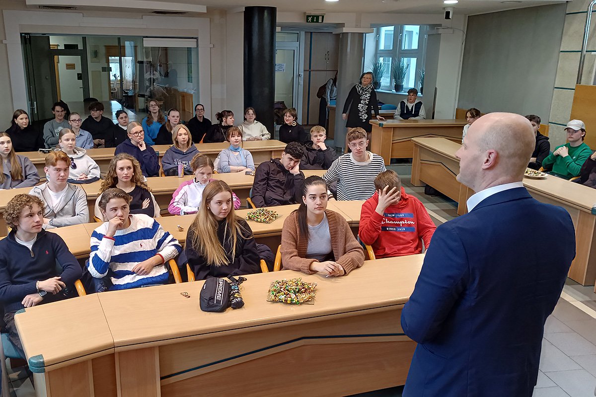 To jedna z najdłużej trwających wymian międzynarodowych wśród gdyńskich szkół. Już po raz 32 II Liceum Ogólnokształcące z Oddziałami Dwujęzycznymi gości młodzież ze Szwecji. Dzisiaj młodzi goście i gdyńscy uczniowie „Dwójki” spotkali się z władzami miasta. Początki wymiany sięgają roku 1991, kiedy w większości innych szkół średnich nikt jeszcze takich pomysłów nie realizował. W szwedzkim liceum stały się tradycją: każdego roku pierwsza klasa o profilu międzynarodowym wyrusza do Polski, druga do Hiszpanii, trzecia do RPA. - Bezwzględnym priorytetem w gdyńskiej edukacji jest wspieranie i rozwijanie współpracy międzynarodowej, przede wszystkim poprzez wymiany - mówi Bartosz Bartoszewicz, wiceprezydent Gdyni ds. jakości życia. - To okazja na zdobycie wiedzy o kulturze, poznania innych systemów nauczania, ale także możliwość szlifowania języka w rozmowach z rówieśnikami. Drugie liceum jest bardzo konsekwentne w realizowaniu programów międzynarodowych i to jest bardzo dobra widomość dla uczniów, przyszłych i obecnych. Również nasi uczniowie co roku nie mogą się doczekać podróży za morze. - To przykład wyjątkowej współpracy między szkołami, która trwa przez pokolenia – mówi Joanna Zielińska, przewodnicząca Rady Miasta Gdyni. – „Dwójka” realizuje ten projekt w mistrzowski sposób, z ogromną korzyścią dla uczniów. Z ramienia „Dwójki” do Szwecji co roku wyjeżdżają członkowie Koła Języka Szwedzkiego, które od lat prowadzi w szkole Anna Ćwiklińska-Rutka, wyjątkowa nauczycielka z ogromną konsekwencją działająca na rzecz współpracy międzynarodowej uczniów. - Nasi absolwenci, którzy jeździli na pierwsze wymiany obecnie robią kariery w międzynarodowych firmach – cieszy się nauczycielka. – Zauważyłam, że podczas wymian umiejętności językowe naszych uczniów rosną w tempie kosmicznym. Nawet Ci, którzy bali się mówić w języku obcym, nagle zaczynają mówić bardzo dużo. Młodzi goście i ich gospodarze podczas wymiany zajmują się tematyką praw człowieka, wiedzą o społeczeństwie i historią. Dużo podróżują po regionie. Punktem obowiązkowym dla Szwedów, mieszkańców kraju bez wojen jest Obóz Stutthof. W tym roku rodziny goszczące wybrały się także z młodzieżą do Torunia, Helu i Malborka.Podczas wizyty w Urzędzie młodzież spotkała się z Joanną Zielińską, przewodniczącą Rady Miasta Gdyni i Bartoszem Bartoszewiczem, wiceprezydentem Gdyni ds. jakości życia. Uczniom, poza Anną Ćwiklińską-Rutką towarzyszyła Agnieszka Szady z II Liceum Ogólnokształcącego. Galeria zdjęć Pobierz galerię Uczniowie z Polski i Szwecji z wizytą w Urzędzie Miasta // fot. Katarzyna Balcerzak Pobierz zdjęcie Uczniowie z Polski i Szwecji z wizytą w Urzędzie Miasta // fot. Katarzyna Balcerzak Pobierz zdjęcie Uczniowie z Polski i Szwecji z wizytą w Urzędzie Miasta // fot. Katarzyna Balcerzak Pobierz zdjęcie Warunki pobierania Wszelkie prawa do zdjęć lub grafik prezentowanych w ramach portalu, należą do Prowadzącego portal lub do podmiotów z nim współpracujących i podlegają ochronie prawnej. Prowadzący portal zezwala na kopiowanie i przedstawianie utworów jedynie w celach niekomercyjnych oraz pod warunkiem zachowania go w oryginalnej postaci i zachowaniem kontekstu tematu, do którego zostało wykorzystaneprzez redakcję gdynia.pl. Opublikowane materiały powinny zawsze zawierać źródło, czyli adres strony www.gdynia.pl. Na publikowanie utworów w innych celach wymagana jest zgoda właściciela strony czyli Prowadzącego portal. Opublikowano: 16.04.2024 14:35 Autor: Aneta Marczak (aneta.marczak@gdynia.pl) Zmodyfikowano: 18.04.2024 09:46 Zmodyfikował: Paweł Jałoszewski