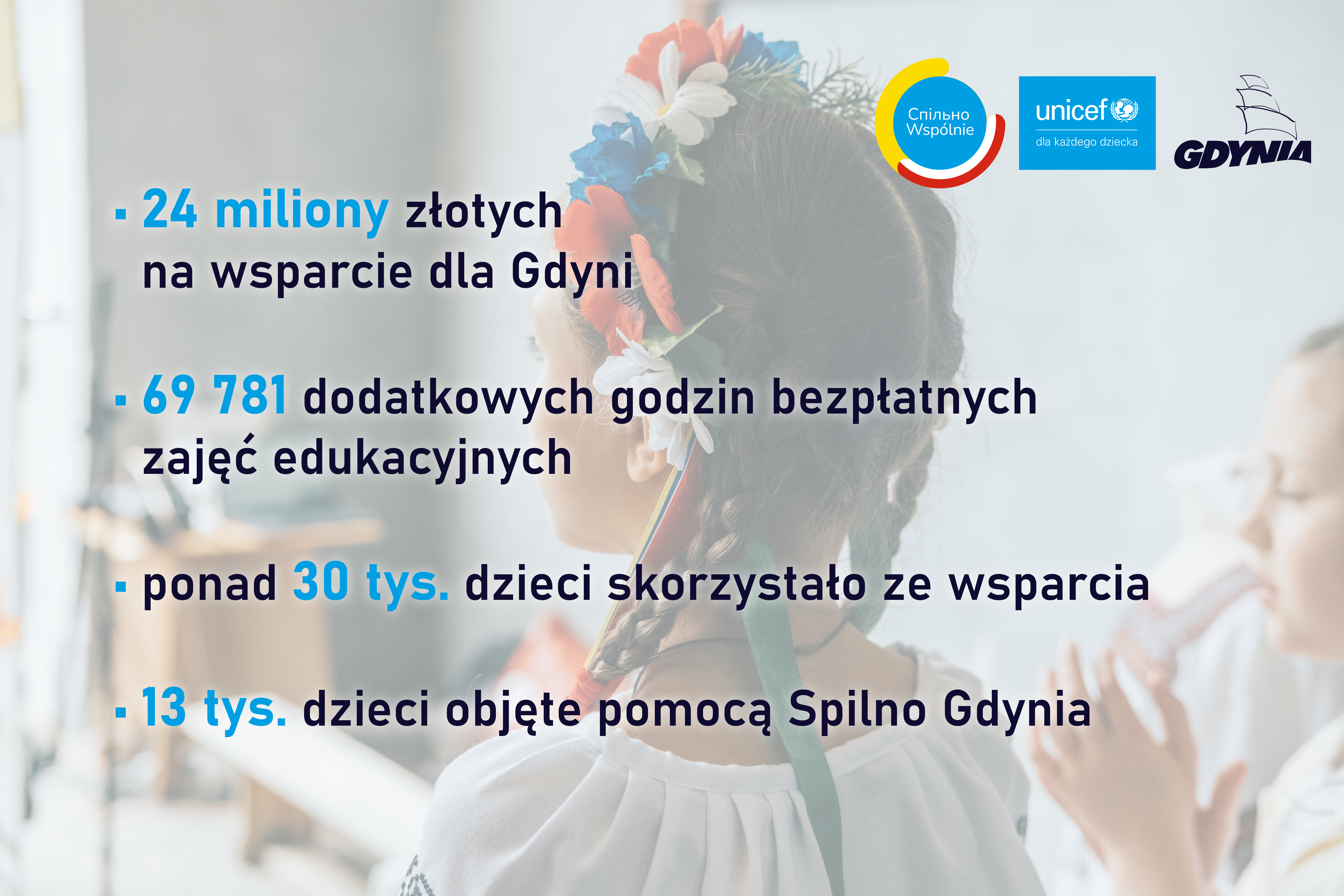 Gdynia drugi rok współpracuje z Funduszem Narodów Zjednoczonych na Rzecz Dzieci UNICEF. Do miasta trafiły 24 miliony złotych na wsparcie najmłodszych mieszkańców. To 70 tys. godzin zajęć edukacyjnych dla dzieci i młodzieży w ramach różnorodnych programów. Gdynia była jednym z dwunastu miast, które rozpoczęły współpracę z UNICEF-em. Początkowo pomoc ta miała trafić do dzieci z doświadczeniem uchodźczym, ale szybko okazało się, że na współpracy z tak ważnym partnerem mogą skorzystać wszyscy młodzi mieszkańcy miasta. - To aż 69 781 dodatkowych godzin aktywności, terpaii i zajęć w samej edukacji – mówi Bartosz Bartoszewicz, wiceprezydent Gdyni ds. jakości życia. – Dokładnie badaliśmy potrzeby najmłodszych gdynianek i gdynian i staraliśmy się o finansowanie z udziałem tak ważnego partnera. Na tej współpracy, w różnej formie skorzystali wszyscy mieszkańcy Gdyni, dzieci i ich rodzice, opiekunowie. Oferowaliśmy pomoc rzeczową, specjalistyczną, rozwinęliśmy wsparcie psychologiczne w szkołach, finansowaliśmy rozwój pasji, stworzyliśmy miejsce bezpieczne dla wszystkich dzieci, jakim jest Spilno Gdynia. Te działania objęły tysiące gdyńskich dzieci, niektórym na stałe zmieniły życie na lepsze. Zapewniamy bezpieczeństwo, pomagamy w nauce Dzieci uwielbiają Spilno Gdynia // fot. Julia KlimczykCzterysta dni funkcjonuje już Spilno Gdynia, wyjątkowe miejsce przy ulicy Starowiejskiej 25. Przez ten czas udzielono tu wsparcia w różnej formie – warsztatów, terapii, zajęć rozwijających, lekcji języka polskiego. Do tej pory pomocą Spilno Gdynia objęło ponad 13 tysięcy dzieci, młodzieży i dorosłych. To nie tylko uchodźcy, ale wszyscy, którzy potrzebują wsparcia i integracji. W większości szkół w Gdyni, dzięki finansowaniu UNICEF odbywały się zajęcia dodatkowe z matematyki i angielskiego wyrównujące deficyty edukacyjne. Mogły z nich skorzystać wszystkie dzieci wymagające wsparcia w nauce. W 2023 roku wzięło w nich udział ok. 4400 dzieci. Intensywne kursy przygotowujące do egzaminów, nie tylko pomogły w zdobywaniu wiedzy w przedmiotach zdawanych podczas matur czy egzaminów ósmoklasistów, ale także pomogły naszym uczniom nabyć umiejętności rozwiązywania testów egzaminacyjnych. W 2024 roku te zajęcia są kontynuowane. Przybywa także godzin przeznczonych na wsparcie w nauce, w ramach projektu bezpłatnych korepetycji dla wszystkich potrzebujących uczniów. To nowy innowacyjny pomysł, zainicjowany w ubiegłym roku wspólnie przez III Liceum Ogólnokształcące z Oddziałami Dwujęzycznymi im. Marynarki Wojennej oraz Spilno Gdynia. Przy pomocy specjalnej platformy, najlepsi licealiści pomagają potrzebującym uczniom polskim oraz innych narodowości. Korzysta z nich już blisko setka gdyńskich uczniów.Działając na rzecz nauki, myślimy również o narzędziach, które naukę ułatwiają. Do Gdyni dotarł sprzęt, który został zakupiony dzięki wsparciu UNICEF-u. To 1000 nowych tabletów, 400 komputerów stacjonarnych i laptopów, a także drukarki, tablice multimedialne, z których mogą korzystać uczniowie i nauczyciele gdyńskich szkół. Placówki edukacyjne otrzymały również zestawy rekreacyjne i sportowe ze sprzętem, a przedszkola zestawy edukacyjne dla przedszkolaków. Działamy w kryzysach, walczymy z depresją W Gdyni dzieci wspiera Foka Paro wraz z Gdyńskim Zespołem Wsparcia dla Oświaty // fot. Filip ŚmigielskiPonad 5 tysięcy godzin przepracowali na rzecz dzieci i ich rodzin specjaliści z Gdyńskiego Zespołu Wsparcia dla Oświaty. To grupa profesjonalistów, którzy wspierają dyrektorów i pedagogów szkolnych w kryzysowych sytuacjach, ale także prowadzą szereg warsztatów specjalistycznych, między innymi z zakresu psychoedukacji, relaksacji. To również autorskie warsztaty radzenia sobie z emocjami, z użyciem Foki Paro, która została przekazana Spilno Gdynia przez Fundusz Narodów Zjednoczonych na Rzecz Dzieci UNICEF. Pozyskano ją od Ambasady Japonii. Wsparciem Zespołu objęto do tej pory ponad 20 tysięcy uczniów.Od nowego roku ruszył kompleksowy Gdyński Program Wsparcia dla Dzieci. Chodzi o młodych mieszkańców Gdyni, mających problemy ze zdrowiem psychicznym, a także profilaktykę depresji i suicydalną. To nowa odsłona autorskiego, gdyńskiego programu „Kręgi na wodzie”, w ramach którego szybki dostęp do specjalistów, w tym skróconą ścieżkę diagnozy, otrzymają nie tylko najmłodsi mieszkańcy miasta, a także ich rodziny. W ramach programu działają również grupy wsparcia, wszystkie potrzebne informacje można uzyskać na stronie Centrum Medycy w Sercu Gdyni. Wspieramy pasję, inwestujemy w rozwój Dzieci mają możliwość realizacji pasji // fot. Filip ŚmigielskiCzęść funduszy UNICEF trafiła również do instytucji, które każdego dnia, w ciągu tysięcy godzin pomagają w rozwoju i realizacji pasji gdyńskim dzieciom. To Młodzieżowy Dom Kultury w Gdyni, który pomaga w realizacji utalentowanym dzieciom, ale także organizował cały szereg wydarzeń artystycznych dla gdyńskich rodzin. W ramach środków z UNICEFu na działania edukacyjne do tej pory odbyły się: już dwie akcje - „Akcje Zima” i „Akcja Lato”, w ramach których 31 szkół zgłosiło się do realizowania corocznych zajęć feryjnych dla naszych najmłodszych mieszkańców. Z takiej opieki skorzystało ponad 2600 gdyńskich uczniów. Ważnym programem w szkole był też „Wgraj się!” czyli zajęcia sportowe z trenerami z różnych dyscyplin. Tym projektem objęci zostali wszyscy uczniowie klas pierwszych, drugich i trzecich szkół podstawowych.Innym działanie stawiającym na rozwój i często będącym alternatywą dla dzieciństwa spędzonego przed ekranem są Szkoły Otwarte, czyli kilkadziesiąt różnego rodzaju aktywności organizowanych w 19 szkołach, wśród nich były w 2023 roku działania artystyczne, sportowe, nauka jęz
