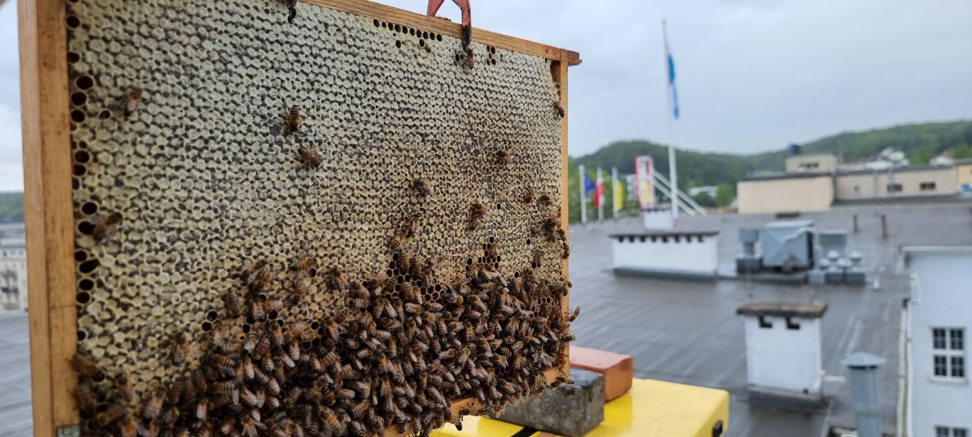 Pod koniec maja odbyło się pierwsze w tym roku miodobranie. Od początku sezonu pszczoły z pasieki na dachu Urzędu Miasta Gdyni wyprodukowały około 42 kilogramy miodu. To znakomity wynik, który potwierdza, że owady są w znakomitej formie. Obecność pszczół w mieście jest nie do przecenienia. Bez owadów zapylających rośliny nie byłoby życia na Ziemi. W obecnych czasach, kiedy z powodu działalności człowieka przyroda jest w odwrocie, szczególnie musimy dbać właśnie o tzw. zapylacze. Miasta podejmują szereg inicjatyw w tym kierunku. To m.in. kwietne łąki, hotele dla owadów czy miejskie pasieki. Podobnie jest w Gdyni. Od trzech lat na dachu głównego gmachu Urzędu Miasta znajdują się cztery ule. Mieszkają w nich pszczoły, które zapylają okoliczne rośliny i produkują miód.Każdego roku opiekujący się pasieką pszczelarz przeprowadza regularne miodobrania. Zebrany miód trafia do słoików. Mieszkańcy otrzymują przy okazji różnych miejskich inicjatyw czy też jako nagrody w prowadzonych przez miasto konkursach. Dostał go m.in. pan Mikołaj Janczak, który uratował pszczołę. Słoiczki ze złotym przysmakiem trafiły także do laureatów tegorocznej edycji konkursu „Zapraszamy ptaki do Gdyni”.Pod koniec maja odbyło się pierwsze w tym roku miodobranie. Udało się zebrać około 42 kilogramy miodu! To bardzo dobry wynik, który potwierdza, że owady są w świetnej kondycji i dobrze żyje im się na dachu gdyńskiego ratusza. Pszczelarz nie wybrał rzecz jasna całego miodu, który wyprodukowały pszczoły. Część została w ulach i może dalej służyć owadom.Pszczoły zamieszkały na dachu Urzędu Miasta Gdyni trzy lata temu. Wczesną wiosną 2019 roku Rada Miasta Gdyni podjęła uchwałę, dzięki której mieszkańcy miasta mogą zakładać własne pasieki w ogrodach i na dachach budynków. Ambasadorkami tej inicjatywy stały się właśnie pszczoły-urzędniczki.W myśl przepisów na posesji, która leży w granicach miasta, można trzymać do 8 rojów pszczół miodnych. Pasieki powinny znajdować się w odpowiedniej odległości od innych zabudowań lub – w przypadku konstrukcji stawianych na dachach – okien. W obu przypadkach należy zachować minimum 15 metrów odstępu. Aby zminimalizować obawy i ryzyko związane z użądleniami przez pszczoły, do hodowli w Gdyni dopuszcza się tylko te linie i gatunki owadów, których utrzymywanie jest dozwolone na terenie województwa pomorskiego. Osoby zainteresowane hodowlą pszczół na własnej posesji powinny kontaktować się z Wydziałem Środowiska UM Gdyni, dzwoniąc pod numer telefonu 58 668 84 80 lub wysyłając e-mail na adres: wydz.srodowiska@gdynia.pl. Opublikowano: 10.06.2022 10:59 Autor: Paweł Kukla (p.kukla@gdynia.pl) Zmodyfikowano: 10.06.2022 14:52 Zmodyfikował: Karolina Szypelt
