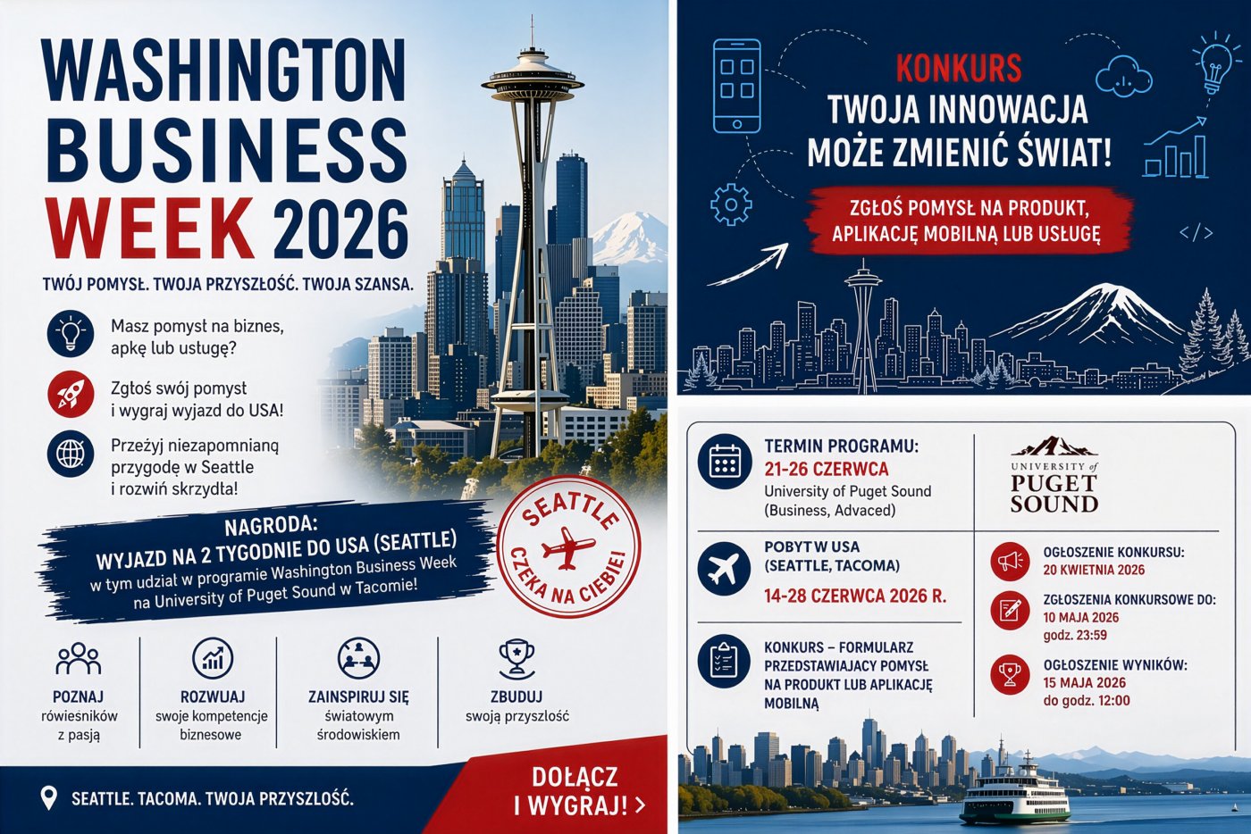 Marzysz o podróży do Stanów Zjednoczonych? Chciał(a)byś przeżyć przygodę życia, a przy tym nauczyć się, jak odnosić sukcesy w biznesie? Jeśli masz 18 lat, jesteś uczniem/uczennicą gdyńskiej szkoły średniej w roczniku 2025/2026 i masz pełno pomysłów na przyszłość, to ten konkurs jest stworzony z myślą o Tobie! Jak wziąć udział? Przedstaw nam swój pomysł na biznes lub aplikację mobilną – przekonaj nas, że warto w Ciebie zainwestować! Najlepszą propozycją nagrodzimy udziałem w Washington Business Week 2026, który odbędzie się na University of Puget Sound w Tacomie, WA, w dniach 21-26 lipca 2026 r. To Twoja szansa, by nauczyć się od najlepszych – amerykańskich przedsiębiorców – i poznać tajniki skutecznego prowadzenia biznesu. Twoja amerykańska przygoda zaczyna się tutaj! Nagroda to nie tylko program biznesowy, ale także niezapomniana podróż do Seattle i udział w wyjątkowej przygodzie!Oprócz intensywnego kursu Washington Business Week, czeka Cię tydzień pełen atrakcji i wrażeń w Seattle - jednym z najbardziej fascynujących amerykańskich miast, znanym z przepięknej przyrody, innowacji i nowoczesnych rozwiązań. Zobacz na własne oczy miejsca, które robią wrażenie na każdym turyście, jak Space Needle, Muzeum Lotnictwa, Muzeum Motoryzacji, Pike Place Market – jeden z najbardziej kultowych punktów miasta, czy malowniczy wodospad Snoqualmie. A to wszystko w towarzystwie organizatorów z Seattle – Gdynia Sister City Association, którzy zadbają o Twoje zakwaterowanie, wyżywienie oraz program krajoznawczy. Dlaczego warto? Zdobędziesz praktyczną wiedzę o biznesie prosto od amerykańskich ekspertów. Otrzymasz niepowtarzalną okazję, by poznać realia rynku w jednym z najbardziej innowacyjnych krajów świata. Poznasz ludzi z różnych zakątków świata, którzy podobnie jak Ty pasjonują się biznesem i przedsiębiorczością. Nie czekaj – zgłoś się już teraz! Masz czas do 10 maja 2026 r., by przesłać swoje zgłoszenie.Szczegóły, regulamin oraz formularz zgłoszeniowy znajdziesz w zakładce Konkurs.To Twoja szansa na spełnienie amerykańskiego snu – wystartuj ze swoim pomysłem i wyląduj w Seattle! Kontakt Referat Współpracy z Zagranicą, Wydział Biuro Prezydenta gbw@gdynia.pl 58 527 50 21 Opublikowano: 28.04.2026 12:59 Autor: Paweł Jałoszewski (pawel.jaloszewski@gdynia.pl) Zmodyfikowano: 29.04.2026 09:43 Zmodyfikował: Paweł Jałoszewski
