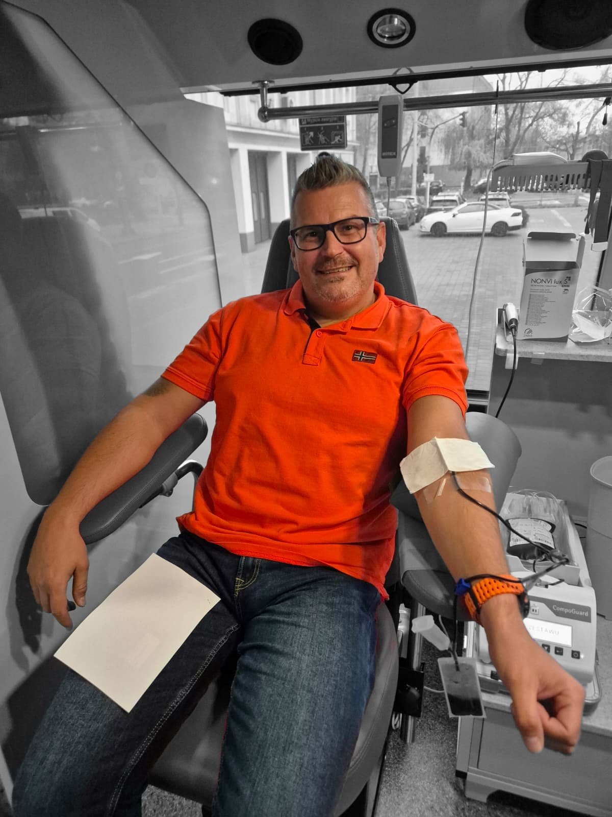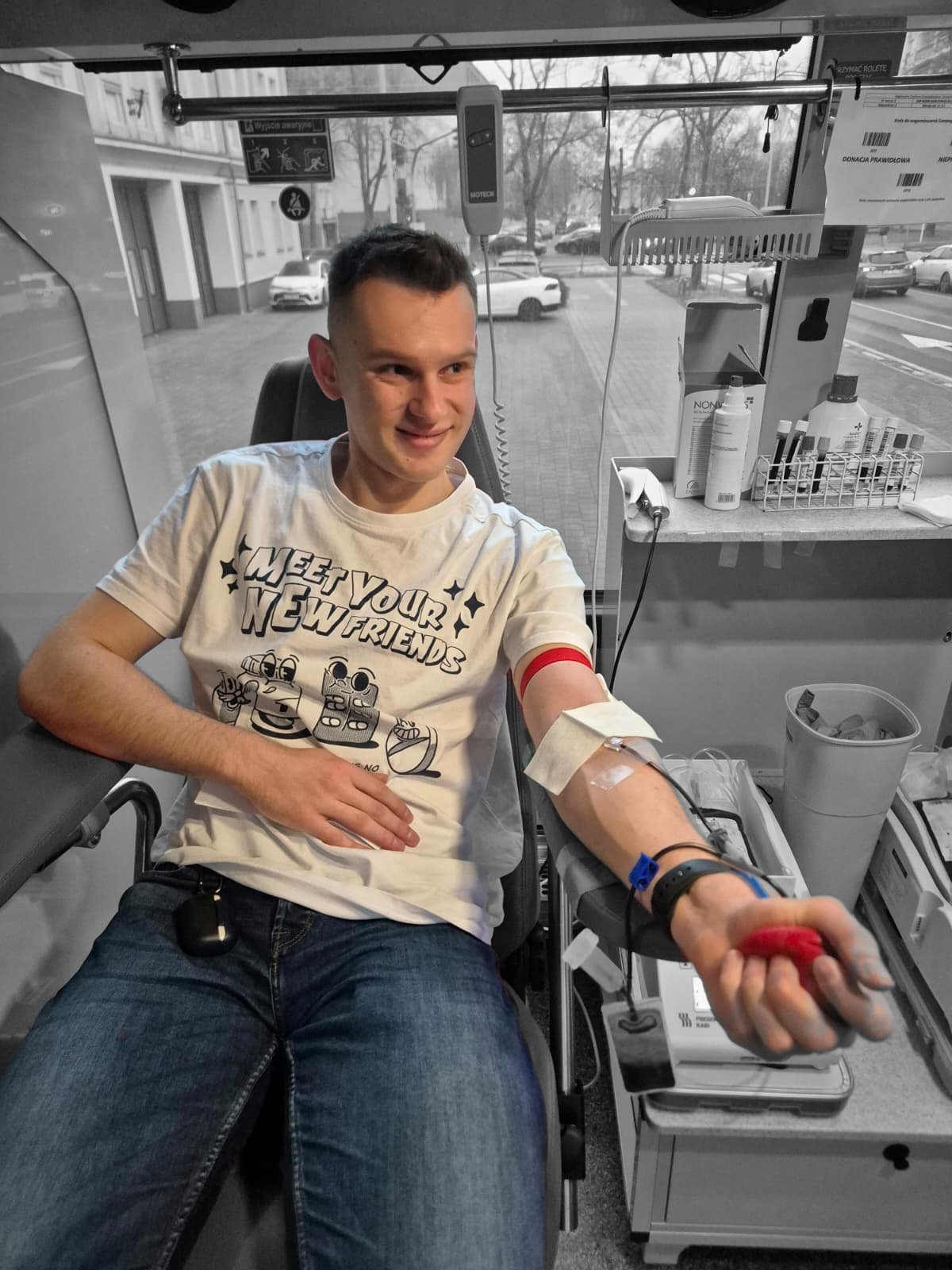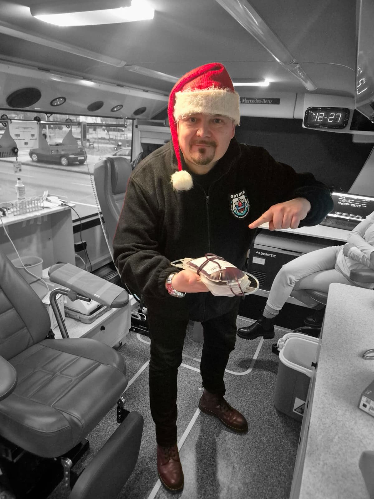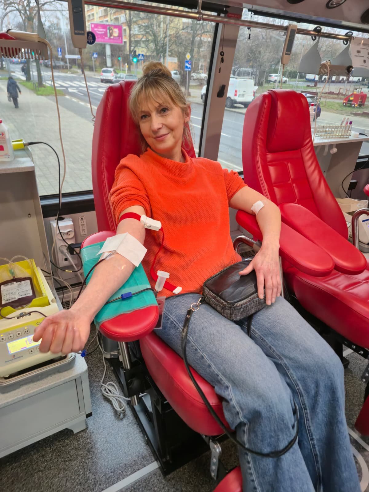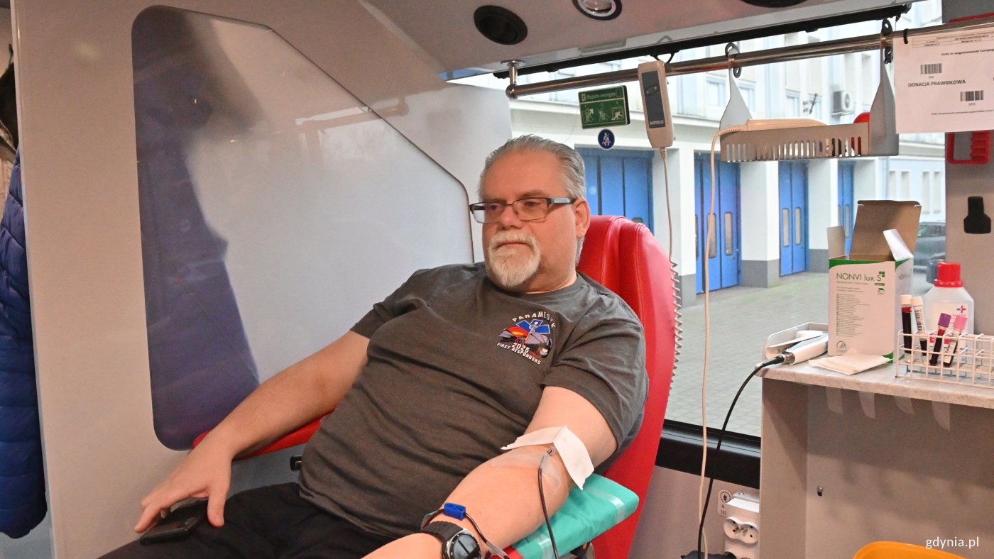 Miało być sto, będzie znacznie więcej. Setki mieszkańców Gdyni przyłącza się do akcji „100 litrów krwi na 100-lecie Gdyni", wymyślonej przez kluby honorowych dawców krwi służb mundurowych. W piątek, 5 grudnia odbyła się już piąta odsłona akcji krwiodawstwa. Do strażaków, policjantów, funkcjonariuszy Straży Granicznej dołączali kierowcy autobusów, aktorzy i mieszkańcy Gdyni. Akcja „100 litrów krwi na 100-lecie Gdyni" to pomysł honorowych dawców krwi służb mundurowych, którzy chcieli zachęcić swoich kolegów – strażaków, policjantów, funkcjonariuszy Straży Miejskiej, Straży Granicznej, służb specjalnych – aby uczcić stulecie Gdyni w szczególny sposób, oddając 100 litrów krwi dla potrzebujących. Szybko okazało się, że do akcji przyłączają się nie tylko funkcjonariusze, ale również ich rodziny, znajomi, przyjaciele i sympatycy. Już mamy osiemdziesiąt litrów, a dopiero rozpoczęliśmy piątą w tej akcji zbiórkę. Na pewno ostatecznie zbierzamy więcej krwi niż planowane 100 litrów – cieszy się Krzysztof Wasilewski, prezes Policyjnego Klubu Honorowych Dawców Krwi w Gdyni. – Ambulans, w którym pobierana jest krew, tradycyjnie zaparkował przy siedzibie Państwowej Straży Pożarnej i od rana mamy tłumy chętnych, którzy przyłączają się do akcji. Dziś pierwsi byli emerytowani policjanci, później grupa aktorów z Teatru Muzycznego, a teraz przybywają gdyńscy kierowcy. Przed nami wielki finał naszej akcji, 10 lutego 2026, w urodziny Gdyni. Wierzymy, że będzie rekord. Już jedno oddanie może uratować trzy ludzkie życia, więc każda kropla się liczy. Zapraszamy serdecznie, każda krew jest ważna! Sasza Reznikow, aktor Teatru Muzycznego im. Danuty Baduszkowej w Gdyni, od kilku miesięcy publikuje w social mediach zabawne filmiki, z których dochód przekazał na potrzeby akcji.Mikołajkowa zbiórka była już piątą w tym roku, zorganizowaną w ramach akcji „100 litrów krwi na 100-lecie Gdyni". Warto pomóc, przecież to nic nie kosztuje – przekonuje Piotr Rybacki, kierowca Przedsiębiorstwa Komunikacji Autobusowej w Gdyni. Tak często oddawał krew, że przestał liczyć, ile litrów ma na koncie. – Wpadłem tu dziś, aby pomóc bić rekord. Będę miał dodatkowy dzień wolny, nasza firma wspiera krwiodawców, ale najważniejsze dla mnie jest poczucie, że mogę komuś podarować zdrowie. Po raz kolejny krew oddał w piątek Tomasz Migdał, również z PKA Gdynia. Na fotelu obok zasiadł dr Wojciech Wosek, naukowiec i wykładowca z Wydziału Prawa i Administracji WSAiB w Gdyni. Jestem stałym dawcą, oddałem już co najmniej 20 litrów krwi, nie mogło mnie więc zabraknąć i dziś – przyznaje naukowiec. Akcję tradycyjnie już wspierają gdyńscy przedsiębiorcy – Piekarnia „Rogalik" stawia pączki, a Piotr Langiewicz z firmy Tchibo zapewnia wszystkim krwiodawcom kawę. Wydarzenie objęte zostało honorowym patronatem Aleksandry Kosiorek, prezydent Gdyni, która również zachęca do oddawania krwi. Jak dołączyć do akcji? Mieszkańcy Gdyni oraz osoby chętne do pomocy mogą przyłączyć się do inicjatywy na dwa sposoby: indywidualne oddanie krwi – wystarczy odwiedzić dowolny punkt krwiodawstwa, poprosić o potwierdzenie donacji dla Klubu Honorowych Dawców Krwi, a następnie wysłać zdjęcie potwierdzenia SMS-em lub e-mailem na adres organizatorów: krzysztof.hdk@gmail.com +48 500 400 555, udział w ostatniej już ambulansowej akcji krwiodawstwa, która odbędzie się 10 lutego 2026 r. w ramach wielkiego finału w samym sercu miasta, tuż przed Urzędem Miasta Gdyni. Kto może oddawać krew? Krew lub jej składniki mogą oddawać osoby od 18. do 65. roku życia, które ważą co najmniej 50 kilogramów. Stan zdrowia krwiodawcy powinien odpowiadać niezbędnym wymaganiom zdrowotnym, aby pobranie krwi nie wywołało ewentualnych ujemnych skutków dla jego stanu zdrowia lub stanu zdrowia przyszłego biorcy. Galeria zdjęć Pobierz galerię Wojciech Wosek, naukowiec i wykładowca z Wydziału Prawa i Administracji WSAiB w Gdyni, który krew oddaje regularnie (fot. Aneta Marczak) Pobierz zdjęcie Krzysztof Wasilewski i aktorzy musicalu „Quo vadis": Julia Duchniewicz (Ligia) i Jakub Popławski (Ursus), którzy przyszli oddać krew (fot. organizatorzy) Pobierz zdjęcie Krzysztof Wasilewski liczy każdy oddany litr krwi (fot. organizatorzy) Pobierz zdjęcie Jakub Popławski, aktor w trakcie oddawania krwi (fot. Krzysztof Wasilewski) Pobierz zdjęcie Filip Bielański, aktor Teatru Muzycznego w Gdyni (fot. Krzysztof Wasilewski) Pobierz zdjęcie Michał Rajkowski, jeden z krwiodawców (fot. Krzysztof Wasilewski) Pobierz zdjęcie Jedna z honorowych dawczyń krwi (fot. Krzysztof Wasilewski) Pobierz zdjęcie Jeden z krwiodawców biorących udział w akcji 5 grudnia (fot. Aneta Marczak) Pobierz zdjęcie Dariusz Bzymek, policjant w trakcie oddawania krwi (fot. Krzysztof Wasilewski) Pobierz zdjęcie Artur Jaroszewski, policjant, w trakcie oddawania krwi (fot. Krzysztof Wasilewski) Pobierz zdjęcie Jedna z honorowych dawczyń krwi (fot. Krzysztof Wasilewski) Pobierz zdjęcie Warunki pobierania Wszelkie prawa do zdjęć lub grafik prezentowanych w ramach portalu, należą do Prowadzącego portal lub do podmiotów z nim współpracujących i podlegają ochronie prawnej. Prowadzący portal zezwala na kopiowanie i przedstawianie utworów jedynie w celach niekomercyjnych oraz pod warunkiem zachowania go w oryginalnej postaci i zachowaniem kontekstu tematu, do którego zostało wykorzystaneprzez redakcję gdynia.pl. Opublikowane materiały powinny zawsze zawierać źródło, czyli adres strony www.gdynia.pl. Na publikowanie utworów w innych celach wymagana jest zgoda właściciela strony czyli Prowadzącego portal. Opublikowano: 05.12.2025 13:16 Autor: Aneta Marczak (aneta.marczak@gdynia.pl) Zmodyfikowano: 05.12.2025 15:41 Zmodyfikował: Jakub Winiewski