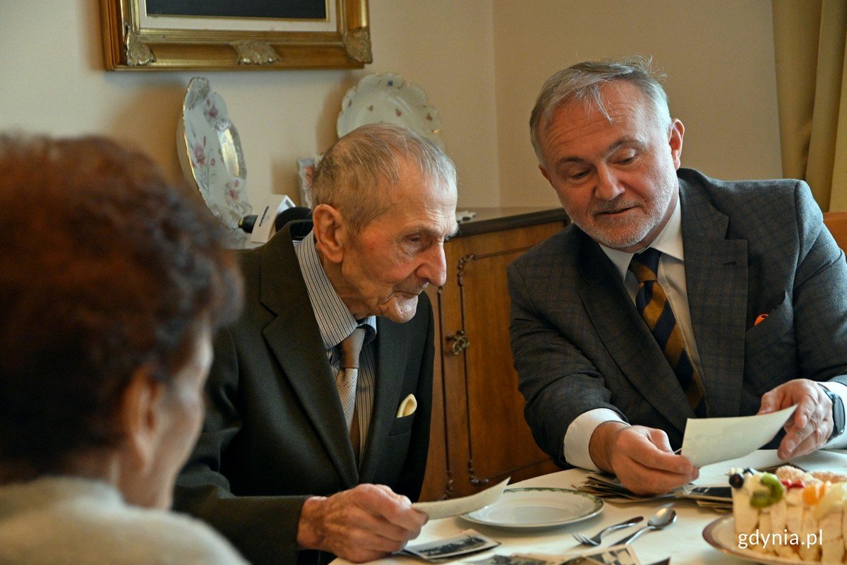 Do grona gdyńskich stulatków dołączył pan Leon Pałczyński. Człowiek niezwykle zasłużony dla Marynarki Wojennej, znany w Polsce i Anglii. W czwartek, 4 kwietnia z okazji jubileuszu odwiedził go prezydent Gdyni Wojciech Szczurek. Pan Leon Pałczyński urodził się w 1924 roku. Jako dziecko wyjechał do Francji, a potem przeprowadził się do Anglii. Do Polski wrócił stosunkowo niedawno, bo dopiero po ukończeniu 80 lat. Do tej decyzji przekonała go żona. Pan Leon posiada dwa obywatelstwa – polskie i brytyjskie. I co naturalne, biegle włada tymi dwoma językami.To człowiek niezwykle zasłużony dla Marynarki Wojennej, znany zarówno w Polsce, jak i w Anglii. Walczył o wolność Polski podczas II wojny światowej. Był marynarzem Marynarki Wojennej i pływał na ORP „Krakowiak”. Byłem zamkowym przy artylerii – jak sam wspomina. Za swoje zasługi został odznaczony przez królową angielską.Muzeum Marynarki Wojennej wydało na cześć pana Leona album, a on podarował gdyńskiej instytucji swoje odznaczenia, monety i inne pamiątki.Z okazji urodzin pana Leona odwiedził prezydent Gdyni Wojciech Szczurek. Wręczył jubilatowi kwiaty oraz upominek. Spotkanie było również okazją do ciekawej rozmowy o życiu stulatka. – Z okazji najpiękniejszego jubileuszu chciałem złożyć panu najserdeczniejsze życzenia. Chcę wyrazić najgłębszy szacunek. Życzyć zdrowia, uśmiechu i wszystkiego dobrego – życzył jubilatowi prezydent Gdyni. Galeria zdjęć Pobierz galerię Z wizytą u jubilata. Na zdj. pan Leon Pałczyński i prezydent Gdyni Wojciech Szczurek (fot. Magdalena Czernek) Pobierz zdjęcie Warunki pobierania Wszelkie prawa do zdjęć lub grafik prezentowanych w ramach portalu, należą do Prowadzącego portal lub do podmiotów z nim współpracujących i podlegają ochronie prawnej. Prowadzący portal zezwala na kopiowanie i przedstawianie utworów jedynie w celach niekomercyjnych oraz pod warunkiem zachowania go w oryginalnej postaci i zachowaniem kontekstu tematu, do którego zostało wykorzystaneprzez redakcję gdynia.pl. Opublikowane materiały powinny zawsze zawierać źródło, czyli adres strony www.gdynia.pl. Na publikowanie utworów w innych celach wymagana jest zgoda właściciela strony czyli Prowadzącego portal. Opublikowano: 05.04.2024 13:20 Autor: Magdalena Śliżewska (magdalena.slizewska@gdynia.pl) Zmodyfikowano: 15.04.2024 08:48 Zmodyfikował: Magdalena Śliżewska