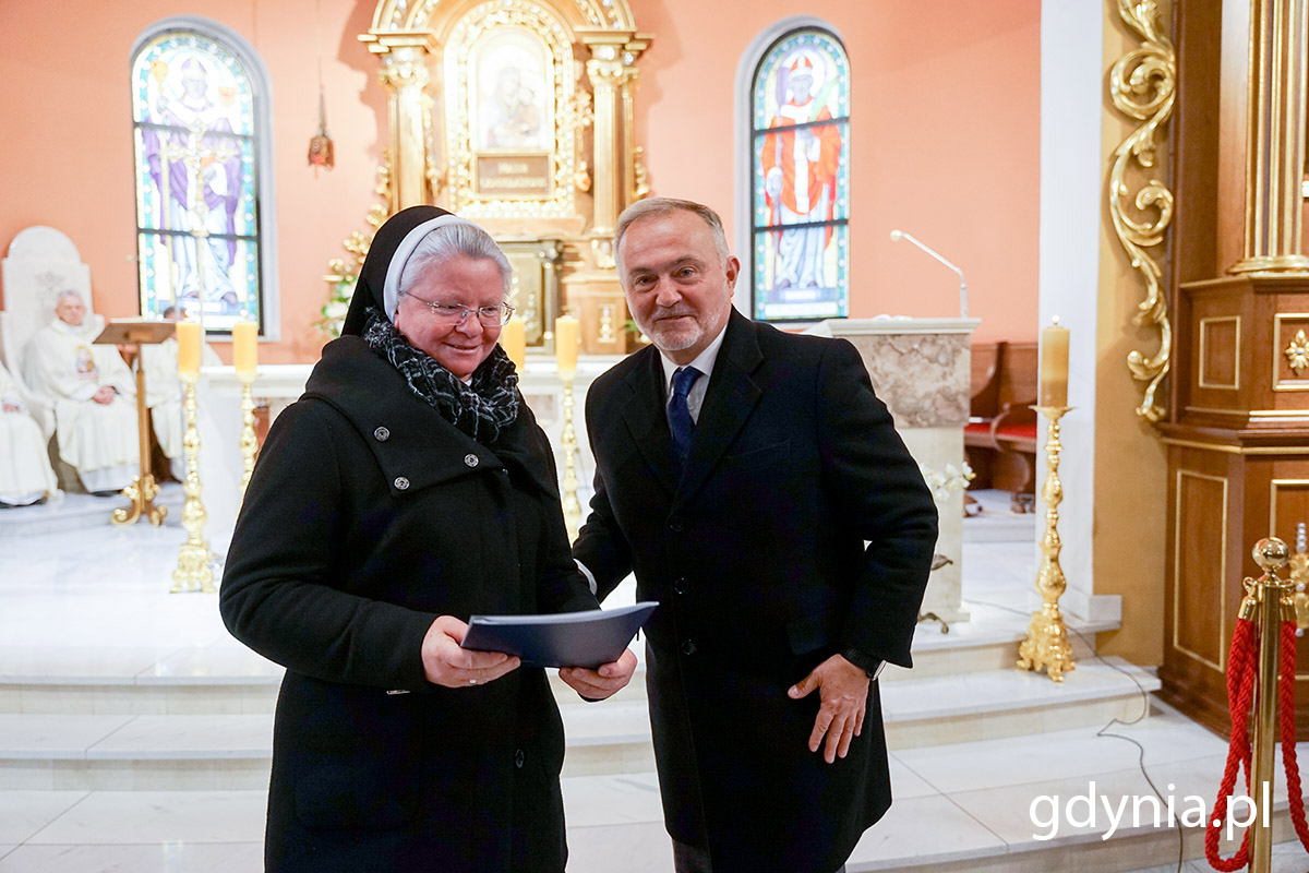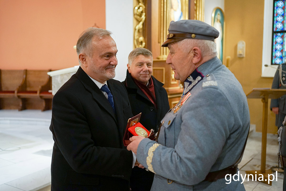 Już od 35 lat krzewią czyn i dorobek marszałka Józefa Piłsudskiego. Bez nich trudno wyobrazić sobie szereg państwowych uroczystości. Piłsudczycy w sobotę, 2 grudnia, świętowali jubileusz utworzenia swojego związku. Medal okolicznościowy z tej okazji otrzymał z ich rąk prezydent Gdyni, Wojciech Szczurek. W sobotę, 2 grudnia, odbyły się w Gdyni uroczystości związane z 35. rocznicą powstania Związku Piłsudczyków Rzeczypospolitej Polskiej. Rozpoczęły się mszą świętą w Bazylice Morskiej, następnie członkowie związku i zaproszeni goście wzięli udział w obchodach 35-lecia, uświetnionych występem zespołu artystycznego Marynarki Wojennej „Flotylla”. Obchody 35. rocznicy powstania Związku Piłsudczyków RP. Fot. Mirosław Pieślak Nagroda Prezydenta Gdyni dla Anny Halasz Jeszcze przed mszą świętą, na wniosek Związku Piłsudczyków Rzeczypospolitej Polskiej prezydent Gdyni Wojciech Szczurek wręczył Nagrodę Prezydenta Miasta Gdyni Annie Halasz, nauczycielce języka polskiego i wychowawcy młodzieży w Katolickiej Szkole Podstawowej im. Świętej Rodziny z Nazaretu w Gdyni. Obchody 35. rocznicy powstania Związku Piłsudczyków RP. Prezydent Gdyni, Wojciech Szczurek wręcza Nagrodę Prezydenta Annie Halasz. Fot. Mirosław Pieślak Nagroda jest uhonorowaniem całokształtu jej pracy wychowawczo-pedagogicznej i artystycznej. Anna Halasz działa na rzecz rozwoju kultury w lokalnych społecznościach, prowadzi artystycznie uzdolnioną młodzież, pisze powieści, a także angażuje się w organizację wydarzeń historycznych, budujących patriotyzm i tożsamość narodową młodego pokolenia. Obchody 35. rocznicy powstania Związku Piłsudczyków RP. Fot. Mirosław Pieślak - 35. rocznica powołania Związku Piłsudczyków Rzeczypospolitej Polskiej to okazja do tego, by z jednej strony podziękować za codzienną aktywność związku na rzecz krzewienia patriotyzmu, przypominania postaci Józefa Piłsudskiego. Ale to także moment, w którym możemy także pogratulować nowo wybranym władzom związku, które dziś wybierane będą w Gdyni – powiedział nam Wojciech Szczurek, prezydent Gdyni. Piękna tradycja piłsudczyków Warto wiedzieć, że do 1998 roku Związek działał pod nazwą Towarzystwo Pamięci Józefa Piłsudskiego (TPJP). Ta organizacja, powstała pod koniec lat 80-tych ub. wieku z inicjatywy działaczy niepodległościowych, intelektualistów i aktorów, ludzi nauki, kultury i sztuki, kombatantów i żołnierzy Wojska Polskiego. Cele statutowe Towarzystwa to propagowanie czynu i myśli państwowotwórczej Józefa Piłsudskiego, kształtowanie postaw obywatelskich na podstawie idei, które głosił, patriotyczne wychowanie młodzieży, a także opieka nad miejscami pamięci narodowej i gromadzenie pamiątek związanych z Józefem Piłsudskim i czynem niepodległościowym. Obchody 35. rocznicy powstania Związku Piłsudczyków RP. Na zdj. m.in. Prezes Zarządu Krajowego ZPRPolskiej, Generał Związku Stanisław Władysław Śliwa. Fot. Mirosław Pieślak - 35 lat Związku Piłsudczyków RP to ogrom wielkiej pracy, społecznej, patriotyczne, w całym kraju i nie tylko. Marszałek Józef Piłsudski zawsze uważał swoich żołnierzy, legionistów za duchowych spadkobierców powstańców styczniowych. Dziś Związek Piłsudczyków, krzewiąc te ideały, jest naturalnym spadkobiercą tamtych wartości – powiedział Prezes Zarządu Krajowego Związku Piłsudczyków Rzeczypospolitej Polskiej, Generał Związku Stanisław Władysław Śliwa. Medal dla prezydenta Gdyni Szczególnym akcentem uroczystej mszy w bazylice było wręczenie prezydentowi Gdyni, Wojciechowi Szczurkowi, medalu okolicznościowego nadanego przez Związek Piłsudczyków RP. Obchody 35. rocznicy powstania Związku Piłsudczyków RP. Prezydent Gdyni, Wojciech Szczurek z oklicznościowym medalem od Związku Piłsudczyków. Fot. Mirosław Pieślak - To jest medal okolicznościowy dla pana Wojciecha Szczurka, z okazji 35. rocznicy powstania Związku. Prezydent Gdyni Wojciech Szczurek jest wielkim patriotą, wielkim piłsudczykiem, wspaniałym gospodarzem tego miasta. To on wsparł nas przy budowie pomnika Marszałka Józefa Piłsudskiego w Gdyni. Marszałek to przecież honorowy obywatel tego miasta, wydał dekret o powołaniu Marynarki Polskiej, był wielkim sprzymierzeńcem budowy portu w Gdyni – skomentował nagrodę dla włodarza Gdyni generał Stanisław Władysław Śliwa. Flaga od prezydenta RP Piłsudczycy otrzymali również specjalną nagrodę od prezydenta RP, Andrzeja Dudy. - Nagroda od prezydenta RP jest dla nas wielkim wyróżnieniem. Flaga biało czerwona, symbol naszej ojczyzny - dla niej służymy, dla niej żyjemy, z niej jesteśmy dumni. Otrzymanie flagi od prezydenta RP to wielkie wyróżnienie i wielki honor, to jest drogowskaz do dalszej naszej pracy w tym kierunku, który czynimy, zgodnie z deklaracją programową – podkreślił Prezes Zarządu Krajowego Związku Piłsudczyków RP. Opublikowano: 02.12.2023 18:44 Autor: Zygmunt Gołąb (z.golab@gdynia.pl) Zmodyfikowano: 02.12.2023 19:27 Zmodyfikował: Zygmunt Gołąb