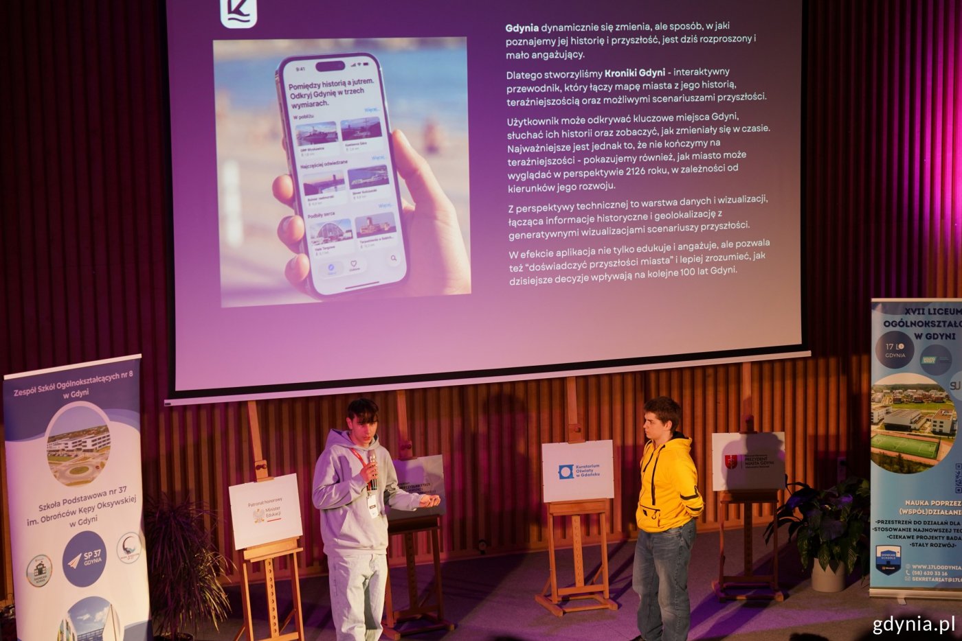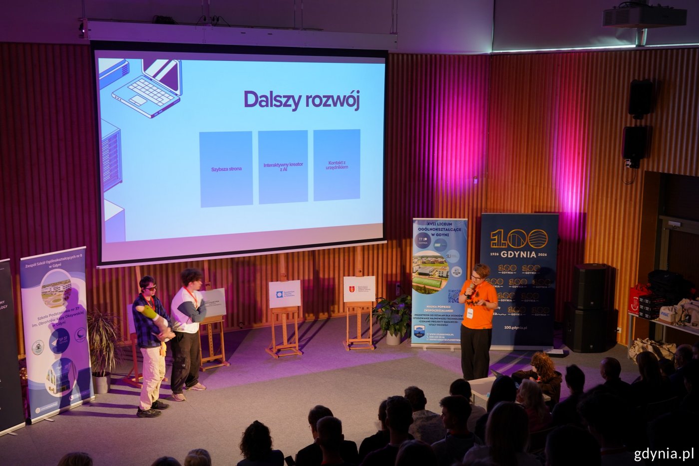 Gry i aplikacje związane z energetyką, nawiązywaniem relacji i te o historii naszego miasta – to efekt pracy twórczej trzynastu drużyn walczących o nagrody w 6. Pomorskim Hackathonie dla Uczniów Szkół Średnich. Młodzież spotkała się w Zespole Szkół Ogólnokształcących nr 8 w Gdyni. W tym roku hasło przewodnie hackathonu brzmiało „Gdynia 2126 – projektujemy kolejne 100 lat”. Młode programistki i programiści, którzy spotkali się 17 kwietnia w Zespole Szkół Ogólnokształcących nr 8 w Gdyni, mieli 24 godziny na stworzenie własnych innowacyjnych projektów. W rezultacie powstało kilka gier i aplikacji internetowych. Wśród nich były i te związane z energetyką, jak i z relacjami wśród młodych ludzi. Nie zabrakło również aplikacji o historii Gdyni, która właśnie obchodzi swoje setne urodziny. Wideo i montaż: Sławomir Okoń Tegoroczne projekty dotykały bardzo wielu tematów związanych z Gdynią, ale też problemów i wyzwań społecznych. Nagrodziliśmy trzy projekty, które dotyczyły przede wszystkim młodych ludzi i ich potrzeb, czyli aplikacje, które zachęcały do tego, żeby młodzież mogła się spotkać i poznać drugą osobę czy też projekty związane na przykład z zainteresowaniami – wyjaśnia Oktawia Gorzeńska, wiceprezydentka Gdyni.Chyba wspólnym mianownikiem wszystkich projektów było to, że wykorzystywały narzędzia sztucznej inteligencji, i to na różnym poziomie – przy tworzeniu aplikacji oraz podczas jej używania – dodaje Marek Kudła z Polsko-Japońskiej Akademii Technik Komputerowych, członek jury 6. Pomorskiego Hackathonu. A czym kierowało się jury wybierając trzy najlepsze projekty? Braliśmy pod uwagę pięć obszarów, które ocenialiśmy. W składzie jury były zarówno osoby techniczne, które były w stanie oceniać jakość pracy takiej czysto deweloperskiej czy programistycznej, jak i osoby, które nie mają nic wspólnego z informatyką na co dzień, natomiast oceniały na przykład poziom prezentacji projektów, który był również ważny i stanowił aż 20% oceny – tłumaczy Tomasz Hodakowski, ekspert ds. Transformacji Cyfrowej i ekspert Polskiej Izby Informatyki i Telekomunikacji, członek jury 6. Pomorskiego Hackathonu. Zwycięzcami 6. Pomorskiego Hackathonu dla Uczniów Szkół Średnich zostali: I miejsce: Zespół Szkół Łączności im. Obrońców Poczty Polskiej w Gdańsku, zespół: Telegrafiści, II miejsce: III Liceum Ogólnokształcące im. Marynarki Wojennej RP w Gdyni, zespół: 3Hack#, III miejsce: IX Liceum Ogólnokształcące w Gdańsku, zespół: Wyrwane kontakty. Zwycięski projekt drużyny Telegrafistów dotyczył m.in. ładowania trolejbusów i pojazdów w bardzo nowatorski sposób, czym ujął jury, które jednogłośnie przyznało mu pierwsze miejsce.Wszystkim uczestnikom i laureatom serdecznie gratulujemy!Wydarzenie honorowym patronatem objęli: Barbara Nowacka, ministra edukacji, Mieczysław Struk, marszałek województwa pomorskiego, Aleksandra Kosiorek, prezydent Gdyni oraz Grzegorz Kryger, pomorski kurator oświaty. Galeria zdjęć Pobierz galerię Podziękowania dla uczniów XVII LO w Gdyni za przygotowanie wydarzenia (fot. Magda Śliżewska) Pobierz zdjęcie Na zdjęciu m.in. wiceprezydentka Gdyni Oktawia Gorzeńska i dyrektor ZSO nr 8 w Gdyni Witold Chudyszewicz (fot. Magda Śliżewska) Pobierz zdjęcie Drużyny miały 10 minut na prezentację swoich projektów (fot. Magda Śliżewska) Pobierz zdjęcie Wiceprezydentka Gdyni Oktawia Gorzeńska (fot. Magda Śliżewska) Pobierz zdjęcie Na zdjęciu m.in. Iwona Tanewska, naczelnik Wydziału Edukacji Urzędu Miasta Gdyni i Tomasz Hodakowski, ekspert ds. Transformacji Cyfrowej i ekspert Polskiej Izby Informatyki i Telekomunikacji, członek jury 6. Pomorskiego Hackathonu (fot. Magda Śliżewska) Pobierz zdjęcie Jedna z drużyn podczas konkursowej prezentacji (fot. Magda Śliżewska) Pobierz zdjęcie Wicedyrektorki Zespołu Szkół Ogólnokształcących nr 8 w Gdyni: Dorota Gorzejewska i Joanna Szymańska (fot. Magda Śliżewska) Pobierz zdjęcie Jedna z drużyn podczas konkursowej prezentacji (fot. Magda Śliżewska) Pobierz zdjęcie Finał 6. edycji Pomorskiego Hackathonu Young Smart (fot. Magda Śliżewska) Pobierz zdjęcie Uczniowie z Zespołu Szkół Łączności w Gdańsku w towarzystwie wiceprezydentki Oktawii Gorzeńskiej, dyrektora ZSO nr 8 w Gdyni Witolda Chudyszewicza i wicedyrektorek: Doroty Gorzejewskiej i Joanny Szymańskiej (fot. Magda Śliżewska) Pobierz zdjęcie Nagrody dla zwycięzców hackathonu (fot. Magda Śliżewska) Pobierz zdjęcie Uczestnicy i uczestniczki 6. Hackathonu w Gdyni (fot. Magda Śliżewska) Pobierz zdjęcie Warunki pobierania Wszelkie prawa do zdjęć lub grafik prezentowanych w ramach portalu, należą do Prowadzącego portal lub do podmiotów z nim współpracujących i podlegają ochronie prawnej. Prowadzący portal zezwala na kopiowanie i przedstawianie utworów jedynie w celach niekomercyjnych oraz pod warunkiem zachowania go w oryginalnej postaci i zachowaniem kontekstu tematu, do którego zostało wykorzystaneprzez redakcję gdynia.pl. Opublikowane materiały powinny zawsze zawierać źródło, czyli adres strony www.gdynia.pl. Na publikowanie utworów w innych celach wymagana jest zgoda właściciela strony czyli Prowadzącego portal. Opublikowano: 18.04.2026 21:15 Autor: Magdalena Śliżewska (magdalena.slizewska@gdynia.pl) Zmodyfikowano: 18.04.2026 21:23 Zmodyfikował: Magdalena Śliżewska