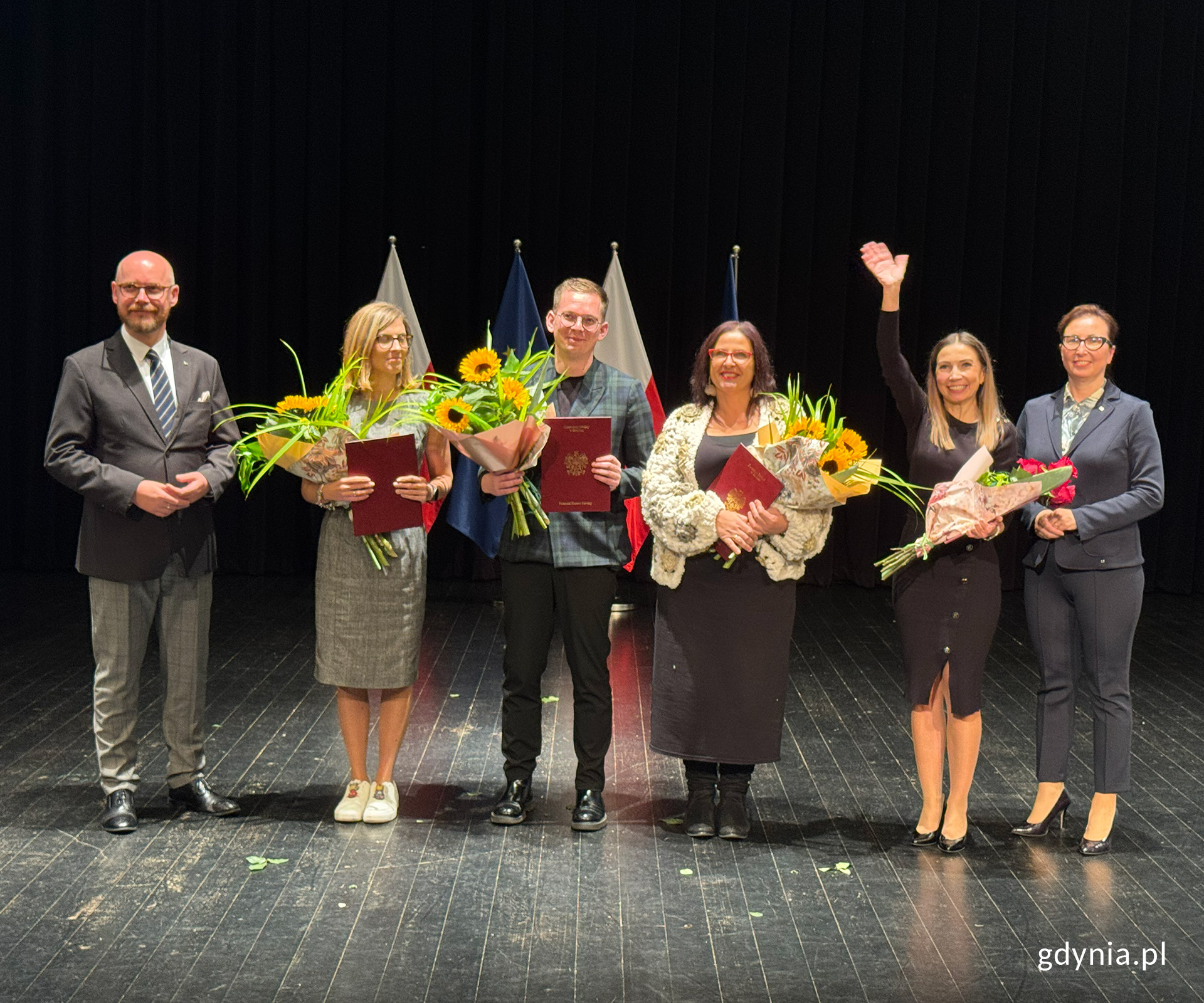 Podziękowania i gratulacje dla grona pedagogicznego, grona niepedagogicznego oraz wszystkich, którzy budują przyszłość młodych gdynian, podczas wojewódzkiej uroczystości z okazji Dnia Edukacji Narodowej w Sali Teatralnej im. prof. Jerzego Limona Uniwersytetu Gdańskiego. Wśród wyróżnionych znalazło się ponad 70 osób z Gdyni. W poniedziałek, 20 października w Sali Teatralnej im. prof. Jerzego Limona Uniwersytetu Gdańskiego odbyła się Wojewódzka Uroczystość z okazji Dnia Edukacji Narodowej. To wyjątkowe wydarzenie, podczas którego uhonorowano osoby szczególnie zasłużone dla pomorskiej oświaty i wychowania. Medale za Długoletnią Służbę, Medale Komisji Edukacji Narodowej, a także Nagrody Ministra Edukacji i Pomorskiego Kuratora Oświaty wręczali wicewojewoda pomorski Emil Rojek, pomorski kurator oświaty Grzegorz Kryger oraz pomorski wicekurator oświaty Jolanta Jankowska-Żmich. Praca nauczyciela to wielkie wyzwanie i służba. Bez pracy nauczyciela, dyrektora i pracowników oświaty nie mielibyśmy na Pomorzu przyszłości. Chociażby właśnie dzięki wyróżnionym nauczycielom możemy powiedzieć, że nasza pomorska oświata jest na najwyższym poziomie i jest doceniana w całym kraju. Pomorze jest mocne dzięki wam – podkreślił wicewojewoda pomorski Emil Rojek. Święto tych, którzy uczą, wspierają i inspirują Wśród wyróżnionych znalazło się ponad 70 osób z Gdyni – nauczycieli i nauczycielek, dyrektorów i dyrektorek, pracowników administracji, specjalistów poradni psychologiczno-pedagogicznych, przedstawicieli miejskich instytucji oświatowych i Wydziału Edukacji Urzędu Miasta Gdyni. Łącznie z całego województwa pomorskiego wyróżniono 341 osób, które na co dzień kształtują, wychowują i wspierają uczniów – często w sposób niewidoczny, ale niezwykle istotny dla rozwoju edukacji. Serdeczne gratulacje dla wszystkich wyróżnionych! To piękne docenienie codziennej pracy, zaangażowania i pasji, które kształtują przyszłość młodych ludzi. Dziękujemy za profesjonalizm, serce i nieustanne budowanie jakości edukacji w naszym mieście i regionie. Niech to wyróżnienie będzie inspiracją do dalszych działań i dowodem, że praca w edukacji ma sens — mówi wiceprezydentka Gdyni Oktawia Gorzeńska. Wideo i montaż Katarzyna Balcerzak Złote, srebrne i brązowe medale za lata oddanej pracy Za długoletnią i sumienną służbę w edukacji medale otrzymało 83 Pomorzan, w tym 15 osób z Gdyni. Wyróżnieni to nauczycielki i nauczyciele, dyrektorki i dyrektorzy, ale także pracownicy przedszkoli i szkół, którzy od lat z zaangażowaniem dbają o wysoki poziom gdyńskiej edukacji. W gronie nagrodzonych znaleźli się przedstawiciele m.in. III LO im. Marynarki Wojennej RP, Szkoły Podstawowej nr 10, Zespołu Szkół Katolickich im. św. Jana Pawła II oraz Przedszkola nr 46. Medale Komisji Edukacji Narodowej – wyraz najwyższego uznania Najwyższe odznaczenie przyznawane przez ministra edukacji – Medal Komisji Edukacji Narodowej – trafiło w tym roku do 37 gdynian i gdynianek. Wyróżniono grono nauczycielskie, wychowawców, pracowników przedszkoli, szkół podstawowych, liceów, szkół artystycznych oraz Młodzieżowego Domu Kultury. Wśród odznaczonych znalazła się także pracownica Wydziału Edukacji Urzędu Miasta Gdyni. Nagrody Ministra Edukacji – dla wyjątkowych pasjonatów nauczania Za szczególne osiągnięcia dydaktyczne i wychowawcze Nagrodę Ministra Edukacji otrzymało siedmioro gdynian. Wśród nich znaleźli się pedagodzy z III LO, VI LO im. Wacława Sierpińskiego, Przedszkola nr 47 „Leśna Pętelka”, Poradni Psychologiczno-Pedagogicznej nr 2 oraz Gdyńskiego Ośrodka Doskonalenia Nauczycieli. To osoby, które swoją pasją i profesjonalizmem inspirują całe środowisko oświatowe. Nagrody Pomorskiego Kuratora Oświaty – docenienie zaangażowania i serca Za szczególne zasługi w pracy dydaktycznej, wychowawczej i opiekuńczej Nagrodę Pomorskiego Kuratora Oświaty przyznano 10 osobom z Gdyni. Wyróżnienia otrzymali m.in. nauczyciele i nauczycielki, dyrektorzy i dyrektorki z Zespołu Szkół Chłodniczych i Elektronicznych, Zespołu Szkół Ogólnokształcących nr 8, Szkoły Podstawowej nr 20, Poradni Psychologiczno-Pedagogicznej nr 3 oraz Przedszkola nr 48 „Morska Przygoda”. Codzienna praca to nie tylko nauczanie – to misja i troska o rozwój młodych gdynian. Dzisiaj jest wasze wielkie święto, wasz ogromny sukces – powiedział Grzegorz Kryger. – Życzę wam, abyście codziennie czuli uznanie za swoją ciężką pracę, by wasz głos był słyszany i żebyście zawsze mogli liczyć na wsparcie, nawet w chwilach samotności, które czasem towarzyszą roli lidera. To dzięki wam młode pokolenie ma przyszłość, a nasz region rozwija się dzięki waszemu zaangażowaniu. Kurator podkreślił zasługi edukacyjne uhonorowanych prestiżowymi tytułami nauczycielek i nauczycieli z Pomorza, m.in.: Tytuł Nauczyciela Roku 2025 na Zamku Królewskim w Warszawie otrzymała Agnieszka Kopacz, nauczycielka I Liceum Ogólnokształcącego z Oddziałami Mistrzostwa Sportowego im. Marii Skłodowskiej-Curie w Sopocie, a wyróżnienie zdobył Mateusz Gruba, nauczyciel Zespołu Szkolno-Przedszkolnego w Szemudzie, Tytuł Nauczyciel Jutr@ 2025 przyznano Annie Bakker-Jaroszewskiej, nauczycielce Szkoły Podstawowej im. Józefa Dambka w Leśniewie, Nauczycielem Pomorza Roku 2025 została Anna Konarzewska, nauczycielka II Liceum Ogólnokształcącego im. dr. Władysława Pniewskiego w Gdańsku. Wojewódzka Uroczystość z okazji Dnia Edukacji Narodowej 2025. Na zdjęciu od lewej pomorski kurator oświaty Grzegorz Kryger, pomorska wicekurator oświaty Jolanta Jankowska-Żmich, Agnieszka Kopacz, Mateusz Gruba, Anna Bakker-Jaroszewska, Anna Konarzewska (fot. Katarzyna Balcerzak)Uroczystość uświetnił występ churów młodzieży z XIX Liceum Ogólnokształcącego w Gdańsku oraz nauczyciel