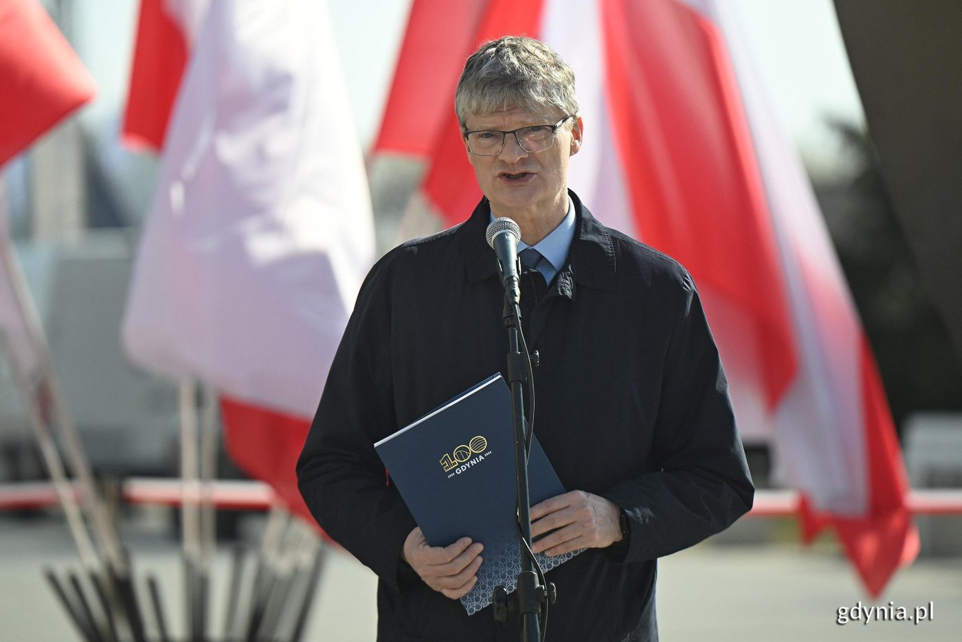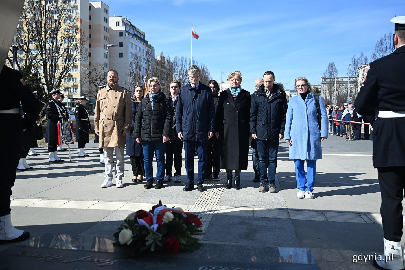 Pod Pomnikiem Polski Morskiej odbyły się dziś obchody 81. rocznicy zakończenia walk o Gdynię. W uroczystości wzięli udział m.in. mieszkańcy i samorządowcy. 28 marca 1945 roku zakończyły się walki o nasze miasto. Dziś mija 81 lat od tamtych wydarzeń. Pod Pomnikiem Polski Morskiej na Skwerze Kościuszki odbyły się uroczystości upamiętniające. Uświetniła je wojskowa asysta honorowa. Odegrano hymn RP i podniesiono na maszt flagę państwową. Okolicznościowe przemówienie wygłosił wiceprezydent Gdyni Rafał Geremek. Po raz kolejny stajemy pod pomnikiem, by bezsprzecznie pamiętać o jednym, o ogromnym wysiłku i poświęceniu ludzi, którzy oddali swoje życie i przelali krew za to, że możemy dziś żyć w wolnej Polsce. Warto, by ten dzień był dniem refleksji nie tylko nad tymi, którzy wypełniając żołnierską przysięgę, kierowani miłością do ojczyzny walczyli na wszystkich frontach drugiej wojny światowej, ale też o tym pamiętać, i wspomóc się refleksją nad odpowiedzialnością ludzi, którzy podejmują decyzje o użyciu armii – mówił wiceprezydent Gdyni Rafał Geremek. – Cześć i chwała wszystkim bohaterom. Wideo i montaż: Dominika Sobiech W uroczystościach uczestniczyli m.in.: członek zarządu województwa pomorskiego Agnieszka Baranowska, wiceprezydent Gdyni Rafał Geremek, radni miasta: Teresa Bysewska, Agnieszka Tokarska, Beata Zastawna, Dawid Biernacik, Łukasz Strzałkowski, przedstawiciele Marynarki Wojennej oraz harcerze.Uczestnicy złożyli pod pomnikiem wieńce i wiązanki kwiatów. Uroczystość zakończyła defilada. Na maszcie flagowym Urzędu Miasta załopotała kopia oryginalnej bandery z pierwszego, jeszcze drewnianego, przedwojennego żaglowca „Zawisza Czarny”. Na budynku magistratu pojawił się również baner z hasłem: „Harcerze uratowali Gdynię – 28.03.1945” (fot. Michał Puszczewicz) Gdynia pamięta o swoich bohaterach Na maszcie flagowym Urzędu Miasta załopotała kopia oryginalnej bandery z pierwszego, jeszcze drewnianego, przedwojennego żaglowca „Zawisza Czarny”. Na budynku magistratu pojawił się również baner z hasłem: „Harcerze uratowali Gdynię – 28.03.1945”. W ten szczególny sposób uczczono Tajny Hufiec Harcerzy i jego działania w czasie okupacji. Przeprowadzone przez młodych ludzi akcje B-1 i B-2 ocaliły miasto.Na czym polegały bohaterskie działania harcerzy, za które chcemy im podziękować? Podczas akcji B-1 wykradli oni plany portu, który w tamtym czasie był bazą niemieckiej Marynarki Wojennej Kriegsmarine. Harcerze zaznaczali na nich aktualne pozycje niemieckich wojsk i okrętów. Potem przekazali mapy aliantom. Dzięki temu mogli oni precyzyjnie zlikwidować konkretne strategiczne cele, a przy tym nie zniszczyć miasta. I tak 18 grudnia 1944 roku angielskie bombowce zbombardowały tylko port i bazę, gdzie stacjonowały wojska niemieckie.Zniszczono wtedy wiele okrętów. Poważnie uszkodzony został także jeden z symboli II wojny światowej – pancernik „Schleswig-Holstein”.Pod koniec wojny gdyńscy harcerze zasłynęli jeszcze jedną akcją. Miała ona kryptonim B-2. Członkowie Tajnego Hufca Harcerzy robili dokładne wykreślenia miejsc, gdzie znajdują się niemieckie umocnienia twierdzy Gotenhafen – od Kolibek po Kępę Oksywską. Dane te nanieśli później na niemieckie mapy sztabowe, które przekazano żołnierzom Armii Czerwonej. Walki o Gdynię Gdynia była jednym z głównych ogniw niemieckiego systemu obronnego nad Zatoką Gdańską. 13 marca 1945 roku armie 1. i 2. Frontu Białoruskiego stanęły na przedpolach przygotowanego do długotrwałej obrony Trójmiasta. Po dwóch tygodniach zaciekłych walk wojska dotarły do Gdyni. 26 marca rozpoczął się szturm. Walki o poszczególne dzielnice Gdyni były bardzo zacięte.28 marca 1945 roku ostatecznie wyparto z miasta niemieckich okupantów. Gdynia była wolna i prawie nie ucierpiała. Resztki wojsk niemieckich broniły się jeszcze do 5 kwietnia na Oksywiu, prowadząc ewakuację drogą morską na Półwysep Helski. Galeria zdjęć Pobierz galerię Przemówienie wiceprezydenta Gdyni Rafała Geremka. Miejskie uroczystości związane z 81. rocznicą zakończenia walk o wyzwolenie Gdyni pod Pomnikiem Polski Morskiej (fot. Michał Puszczewicz) Pobierz zdjęcie Przemówienie Agnieszki Baranowskiej, członkini zarządu województwa pomorskiego. Miejskie uroczystości związane z 81. rocznicą zakończenia walk o wyzwolenie Gdyni pod Pomnikiem Polski Morskiej (fot. Michał Puszczewicz) Pobierz zdjęcie Delegacja gdyńskich samorządowców, od lewej: Łukasz Strzałkowski, Beata Zastawna, wiceprezydent Gdyni Rafał Geremek, Teresa Bysewska, Dawid Biernacik, Agnieszka Tokarska. Miejskie uroczystości związane z 81. rocznicą zakończenia walk o wyzwolenie Gdyni pod Pomnikiem Polski Morskiej (fot. Michał Puszczewicz) Pobierz zdjęcie Delegacja gdyńskich samorządowców, od lewej: Łukasz Strzałkowski, Beata Zastawna, wiceprezydent Gdyni Rafał Geremek, Teresa Bysewska, Dawid Biernacik, Agnieszka Tokarska. Miejskie uroczystości związane z 81. rocznicą zakończenia walk o wyzwolenie Gdyni pod Pomnikiem Polski Morskiej (fot. Michał Puszczewicz) Pobierz zdjęcie Miejskie uroczystości związane z 81. rocznicą zakończenia walk o wyzwolenie Gdyni pod Pomnikiem Polski Morskiej (fot. Michał Puszczewicz) Pobierz zdjęcie Miejskie uroczystości związane z 81. rocznicą zakończenia walk o wyzwolenie Gdyni pod Pomnikiem Polski Morskiej (fot. Michał Puszczewicz) Pobierz zdjęcie Miejskie uroczystości związane z 81. rocznicą zakończenia walk o wyzwolenie Gdyni pod Pomnikiem Polski Morskiej (fot. Michał Puszczewicz) Pobierz zdjęcie Miejskie uroczystości związane z 81. rocznicą zakończenia walk o wyzwolenie Gdyni pod Pomnikiem Polski Morskiej (fot. Michał Puszczewicz) Pobierz zdjęcie Miejskie uroczystości związane z 81. rocznicą zakończenia walk o wyzwolenie Gdyni pod Pomnikiem Polski Mors
