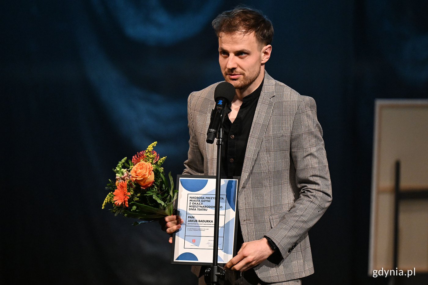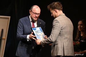 Tworzą magię na scenie. Dbają o komfort widzów oraz o to, aby mieli oni kontakt ze sztuką. Z okazji Międzynarodowego Dnia Teatru prezydent Aleksandra Kosiorek przyznała nagrody wyróżniającym się twórcom i pracownikom gdyńskich scen teatralnych. Uroczysta gala odbyła się w sobotę, 29 marca w Teatrze Miejskim. Nagrody wręczył Mariusz Bzdęga – dyrektor zarządzający ds. kultury i aktywności mieszkańców. Międzynarodowy Dzień Teatru przypada 27 marca. Święto zostało ustanowione w 1961 roku z inicjatywy Międzynarodowego Instytutu Teatralnego w celu upamiętnienia inauguracji Teatru Narodów – festiwalu, podczas którego spotkały się zespoły z obu stron żelaznej kurtyny. Wydarzenie to odbyło się 27 marca 1957 roku w Paryżu.Z tej okazji w Gdyni wyróżniający się artyści i pracownicy teatrów, które działają w mieście, otrzymują Nagrodę Prezydent Miasta Gdyni. Tegoroczna gala ich wręczenia odbyła się w sobotę, 29 marca w Teatrze Miejskim im. Witolda Gombrowicza.Wśród nagrodzonych znaleźli się przedstawiciele: Teatru Miejskiego im. Witolda Gombrowicza, Teatru Muzycznego im. Danuty Baduszkowej, Teatru Gdynia Główna, Bałtyckiego Teatru Różnorodności, Teatru Komedii Valldal oraz Teatru Czwarte Miasto. Zdjęcia i montaż: Michał SałataW imieniu prezydent Aleksandry Kosiorek nagrody laureatom wręczył Mariusz Bzdęga, dyrektor zarządzający ds. kultury i aktywności mieszkańców. W uroczystości wzięła też udział wiceprezydentka Oktawia Gorzeńska. W Gdyni mamy wspaniałe sceny teatralne. Oczywiście Teatr Muzyczny, którego marka ma charakter ogólnopolski, międzynarodowy, ale też Teatr Miejski w Gdyni – bardzo ważny dla wszystkich mieszkańców Gdyni. Mamy też Teatr Gdynia Główna i Teatr Komedii Valldal, które w praktyce pokazują, na czym polega edukacja do kultury – szczególnie edukacja dzieci i młodzieży. Teatr Czwarte Miasto, który odgrywa również swoją istotną rolę. Ludzie teatru mają dzisiaj swój dzień. To nie tylko aktorzy, to również reżyserzy, technicy, muzycy, scenografowie. I pani prezydent postanowiła docenić ich wkład w życie naszego miasta, ich ciężką pracę – powiedział Mariusz Bzdęga, dyrektor zarządzający ds. kultury i aktywności mieszkańców. Mariusz Bzdęga - dyrektor zarządzający ds. kultury i aktywności mieszkańców podczas gali z okazji Międzynarodowego Dnia Teatru (fot. Michał Puszczewicz)Nagrodę Prezydent Miasta Gdyni otrzymali: Elżbieta Mrozińska z Teatru Miejskiego w Gdyni im. Witolda Gombrowicza – za rolę Katarzyny, żony burmistrza, w spektaklu „Niewolnice z Pipidówki” w reżyserii Krzysztofa Babickiego; Bogdan Smagacki z Teatru Miejskiego w Gdyni im. Witolda Gombrowicza – za rolę Starszego Pana A w spektaklu „Przybora. Kabaret metapsychiczny” w reżyserii Jacka Bały; Szymon Sędrowski z Teatru Miejskiego w Gdyni im. Witolda Gombrowicza – za rolę Roberta Johnsa w spektaklu „Kochanie,wróciłem!” w reżyserii Krzysztofa Babickiego; Jakub Badurka z Teatru Muzycznego im. Danuty Baduszkowej w Gdyni – za rolę Winicjusza w spektaklu „Quo vadis” w reżyserii Wojciecha Kościelniaka; Dorota Gloc z Teatru Muzycznego im. Danuty Baduszkowej w Gdyni – za wieloletnie zaangażowanie w pracę z widzami, wkład w koordynację działań zespołu, budowanie relacji z odbiorcami oraz dbałość o najwyższe standardy komunikacji; Grzegorz Lewandowski z Teatru Muzycznego im. Danuty Baduszkowej w Gdyni – za dbałość o perfekcyjny wydźwięk każdego wykonania,rozumienie zbiorowego efektu pracy w orkiestrze oraz podejmowanie nowych artystycznych wyzwań z pasją i zaangażowaniem; Krzysztofa Gomółka-Pawlicka z Teatru Gdynia Główna – za nieskrępowany talent artystyczny, odwagę, pracowitość oraz wnikliwą kreację ról aktorskich w czterech spektaklach – zeszłorocznych premierach Teatru Gdynia Główna; Jakub Gaweł z Bałtyckiego Teatru Różnorodności – za wyjątkowy wkład w działalność Bałtyckiego Teatru Różnorodności oraz całokształt kreacji scenicznych, ze szczególnym uwzględnieniem roli Sir Clive’a Partridge’a w spektaklu „Stosunki na szczycie”; Ewelina Jaworska z Teatru Komedii Valldal – za rozwój Teatru Komedii Valldal, w szczególności za kreatywność, elastyczność, nieszablonowe poszukiwanie rozwiązań oraz determinację w realizacji artystycznych działań; Julia Pawlak z Teatru Czwarte Miasto – za stworzenie w pełni profesjonalnej i unikalnie dojrzałej kreacji artystycznej w spektaklu muzycznym „Opowieści wiejskich Dziewuch”, obejmującej doskonałą rolę Szeptuchy, przejmującą wokalno-aktorską interpretację utworów muzycznych oraz oryginalne, a zarazem ważne teksty piosenek. To docenienie jest taką wisienką na torcie. Wspaniałe uczucie po prostu móc stanąć i być docenionym za pracę, którą się wykonało. Ciężką pracę na co dzień, ale umówmy się – tak mi się wydaje – że większość z nas robi to z pasji. Rzeczywiście to nie jest praca. Jest ciężko, pewnie. Realizujemy siebie i to wymaga poświęceń, ale kiedy coś kochamy tak bardzo, to to przestaje być pracą – mówi Julia Pawlak, aktorka Teatru Czwarte Miasto i laureatka Nagrody Prezydent Miasta Gdyni. Po zakończeniu uroczystości goście obejrzeli spektakl „Dziady” w reżyserii Krzysztofa Babickiego.Julia Pawlak, aktorka Teatru Czwarte Miasto i laureatka Nagrody Prezydent Miasta Gdyni, podczas gali z okazji Międzynarodowego Dnia Teatru (fot. Michał Puszczewicz)Z okazji Międzynarodowego Dnia Teatru nagrody swoim pracownikom przyznali również dyrektorzy teatrów.Nagrody dyrekcji Teatru Miejskiego dostali: Tomasz Czajka – aktor, inspicjent, Magdalena Czaplicka, specjalistka ds. kadr, Krzysztof Dąbek – rekwizytor, inspicjent, Wojciech Koger – ślusarz, Martyna Matoliniec – aktorka, Grzegorz Pluto-Prądzyński – rzemieślnik teatralny stolarz, Magdalena Sworowska – kra