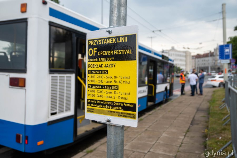 Już jutro w Gdyni rozpoczyna się wielkie muzyczne święto – Open’er Festival! Po pandemicznej przerwie impreza powraca w pełnym wymiarze. Dojazd na wydarzenie ułatwi bezpłatna linia ZKM Gdynia oznaczona literami OF. Autobusy kursują od dziś aż do zakończenia Open’era. Dla osób z biletami, karnetami lub festiwalowymi opaskami przejazd jest bezpłatny. Open’er Festival powraca! Przed nami 4 dni fantastycznej zabawy na lotnisku w Babich Dołach. Na kilku scenach wystąpią dziesiątki artystów z Polski i zagranicy. To gwiazdy światowego formatu, m.in. The Chemical Brothers, Dua Lipa, The Killers, Twenty One Pilots czy Imagine Dragons. W koncertowej uczcie uczestniczyć będą dziesiątki tysięcy fanów muzyki. O ich bezpieczny transport na teren festiwalu oraz w drogę powrotną jak zwykle zadba ZKM Gdynia. Specjalnie na czas festiwalu uruchomiona została linia autobusowa OF. Kursuje ona spod dworca kolejowego Gdynia Główna na teren festiwalu. Tam, uczestnicy imprezy mogą wygodnie dojść do pola namiotowego czy bramy wejściowej na imprezę. - Mamy bardzo dobrą informację, dla tych, którzy będą chcieli w tym roku odwiedzić Open’er Festival. Udało nam się pozyskać rekordową liczbę pojazdów do obsługi tej linii. W ciągu dnia około 100 pojazdów będzie tę linię obsługiwało, a w szczytowym momencie tych pojazdów będzie 90 – mówi Hubert Kołodziejski, dyrektor ZKM Gdynia. Autobusy linii OF rozpoczęły swoje kursy już we wtorek, 28 czerwca od godziny 8:00. Wszystko po to, by osoby udające się już dziś na pole namiotowe, mogły wygodnie i bezpiecznie dotrzeć na teren campingu. - Dzisiaj rozpoczynamy obsługę festiwalu. Można powiedzieć, że ona jest prawie 24-godzinna. Bowiem mamy tylko krótkie 2-godzinne przerwy, między 6:00 a 8:00 rano. Dzisiaj pierwszy taki dzień. Nasza częstotliwość minimalna co 15 minut – którą zamierzamy utrzymać przez wszystkie dni trwania imprezy – będzie dzisiaj zapewniona. Aczkolwiek, jak będzie więcej chętnych, to oczywiście autobusy pojadą częściej, niż co 15 minut. Natomiast już w kolejnych dniach, wtedy kiedy zaczną się koncerty, to ten ruch autobusów będzie odbywał się na bieżąco i tylko, jak jeden autobus się napełni, będzie podjeżdżał następny. To jest kwestia 2-3 minut i z taką częstotliwością będą odjeżdżały autobusy – wyjaśnia Hubert Kołodziejski. Przystanek początkowy linii OF znajduje się w Gdyni przy placu Konstytucji. Na miejscu obecne są specjalne służby porządkowe, które kierują osoby zainteresowane do autobusów. W drodze na miejsce koncertów autobusy nie zatrzymują się na żadnych przystankach. Z kolei w drodze powrotnej obowiązuje przystanek Obłuże Centrum (na żądanie), a w godzinach od 0:00 do 6:00 autobusy zatrzymują się na żądanie na wszystkich przystankach w kierunku dworca.Aby skorzystać z linii OF wystarczy mieć przy sobie bilet lub karnet na Open’era, bądź założoną już na rękę festiwalową opaskę.Na festiwal dojechać można również regularnymi liniami ZKM Gdynia. Wybierając tę opcję, należy pamiętać o posiadaniu ważnego biletu na przejazd. W związku z Open’erem zwiększona zostanie częstotliwość kursów na liniach 309 i 146. Galeria zdjęć Pobierz galerię Przystanek początkowy linii OF mieści się przy placu Konstytucji // fot. Paweł Kukla Pobierz zdjęcie Warunki pobierania Wszelkie prawa do zdjęć lub grafik prezentowanych w ramach portalu, należą do Prowadzącego portal lub do podmiotów z nim współpracujących i podlegają ochronie prawnej. Prowadzący portal zezwala na kopiowanie i przedstawianie utworów jedynie w celach niekomercyjnych oraz pod warunkiem zachowania go w oryginalnej postaci i zachowaniem kontekstu tematu, do którego zostało wykorzystaneprzez redakcję gdynia.pl. Opublikowane materiały powinny zawsze zawierać źródło, czyli adres strony www.gdynia.pl. Na publikowanie utworów w innych celach wymagana jest zgoda właściciela strony czyli Prowadzącego portal. Opublikowano: 28.06.2022 14:10 Autor: Paweł Kukla (p.kukla@gdynia.pl) Zmodyfikowano: 29.06.2022 16:04 Zmodyfikował: Redakcja portalu Gdynia.pl