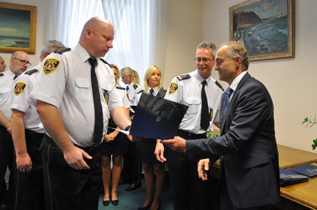 Ich praca tego lata w Gdyni była nieoceniona - podczas Open'er Festival, Red Bull Air Race czy Operacji Żagle Gdyni. Strażnicy Miejscy dbali o bezpieczeństwo mieszkańców i turystów, a także czystość w mieście. Również na co dzień funkcjonariusze, czasem w sposób niezauważalny, wykonują swoje obowiązki. 29 sierpnia 2014 r. Straż Miejska w Gdyni obchodziła 24. rocznicę powstania. W dzisiejszych czasach strażnik miejski to osoba, która musi emanować spokojem, cierpliwością i uśmiechem i to są dla państwa takie same elementy pracy jak środki bezpośredniego przymusu - żartował podczas uroczystości prezydent Gdyni Wojciech Szczurek i dodał, że opinia o Straży Miejskiej w Gdyni jest bardzo dobra, co jest oczywiście efektem ciężkiej pracy, za którą chciałbym bardzo podziękować. Prezydent także gratulował awansów i życzył dalszych sukcesów.W trakcie uroczystości 34 funkcjonariuszy zostało wyróżnionych awansami na wyższe stanowiska służbowe, a 5 aplikantów otrzymało angaż.W gdyńskiej Straży Miejskiej pracuje 107 funkcjonariuszy i 30 pracowników monitoringu wizyjnego. Mają do dyspozycji 17 samochodów, 3 skutery i 6 rowerów a także nowoczesny sprzęt GPS i cyfrową łączność radiową. Strażnicy Miejscy dbają o spokój i bezpieczeństwo mieszkańców oraz czystość i porządek w mieście. Do ich zadań z należy m.in.- zabezpieczanie dużych imprez masowych,- ochrona obiektów komunalnych,- ochrona środowiska naturalnego (gdyński eko-patrol dba o zwierzęta i ptactwo);- edukacja dzieci i młodzieży. Straż Miejska w Gdyni powstała w 1990 roku (uchwała Rady Miasta nr VII/39/90 z 25 lipca 1990 r.).fot. Dorota Nelke Opublikowano: 29.08.2014 00:00 Autor: Dorota Nelke (11@gdynia.pl)
