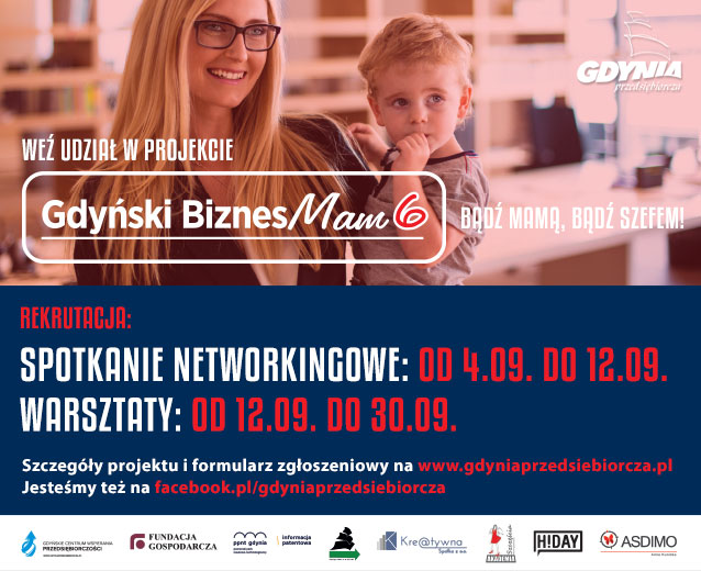 Już 4 września startuje szósta edycja projektu Gdyński BiznesMam skierowanego do mam planujących rozpoczęcie własnego biznesu.BiznesMam ma na celu rozbudzenie i uświadomienie w gdyńskich mamach potrzeby działania i ukształtowania pomysłu na własną firmę. Istotą projektu jest pomoc w odnalezieniu źródeł motywacji, nauka skutecznej komunikacji i efektywnego szukania klienta i pracownika. Sukcesem poprzednich edycji projektu są otwarte i z powodzeniem prowadzone firmy gdyńskich BiznesMam. Na podstawie ich doświadczeń zdobytych w trakcie zakładania i rozwijania swoich działalności gospodarczych w tegorocznej edycji po raz kolejny pojawi się element „case study”. Projekt rozpocznie otwarte networkingowe spotkanie informacyjne skierowane do kobiet zainteresowanych udziałem w projekcie, na którym swoje firmy zaprezentuje 6 mam – uczestniczek poprzednich edycji. Spotkanie odbędzie się 12 września w godz.10.30-14.00 w Gdynia InfoBox przy ul. Świętojańskiej 30. - W tym roku będzie realizowana już 6. edycja projektu Gdyński BiznesMam, projektu który cieszy się dużym zainteresowaniem. W momencie zakończenia danej edycji mamy zapytania o kolejną. Projekt jest oczywiście bezpłatny i dedykowany gdyńskim mamom, które chcą wrócić na rynek pracy. Tegoroczną edycję rozpoczniemy spotkaniem networkingowym, podczas którego swoje firmy zaprezentują panie wywodzące się z naszego projektu. Będą mogły wziąć w nim udział mamy, które chcą się zapisać, ale jeszcze nie wiedzą czy warto – mówi Beata Grzegorska z Gdyńskiego Centrum Wspierania Przedsiębiorczości. Zasadniczym elementem projektu jest osiem spotkań warsztatowych, które odbywać się będą według harmonogramu od 3 października do 20 listopada w sali konferencyjnej Urzędu Miasta Gdyni przy ul. 10 Lutego 24. Zajęcia prowadzić będą między innymi psychologowie, trenerzy i doradcy biznesowi, przedsiębiorcy-praktycy oraz wizażystka. Do projektu zgłosić się mogą niepracujące panie, zamieszkałe w Gdyni, które posiadają przynajmniej jedno dziecko w wieku do lat sześciu. Uczestniczka może przebywać na urlopie macierzyńskim bądź wychowawczym.Mając na uwadze komfort pozostałych uczestniczek oraz jak najwyższą jakość zajęć, w spotkaniach mamie może towarzyszyć wyłącznie jedno dziecko do lat dwóch. Opiekę nad dzieckiem w trakcie zajęć sprawuje mama. Zainteresowana uczestnictwem mama przystępując do projektu zgłasza się na wszystkie z proponowanych warsztatów. Rezultatem tego będzie zwiększenie efektywności spotkań i stworzenie spójnej grupy przedsiębiorczych mam, które mają jeden cel – otwarcie własnej firmy. Zgłoszenia – wyłącznie przez portal evenea.pl:- na spotkanie networkingowe: od 4 września do wyczerpania miejsc. Decyduje kolejność zgłoszeń.- do projektu od 12 do 30 września. Nie decyduje kolejność zgłoszeń. Uczestniczki zakwalifikowane do projektu otrzymają potwierdzenie drogą mailową. Udział w projekcie jest bezpłatny. Szczegóły na stronie www.gdyniaprzedsiebiorcza.pl. Do pobrania Harmonogram szkoleń pdf247kb Networking pdf257kb Regulamin pdf260kb Opublikowano: 04.09.2019 14:25 Autor: Marta Jaszczerska-Zawadzka (m.jaszczerska@gdynia.pl) Zmodyfikowano: 05.09.2019 12:20 Zmodyfikował: Marta Jaszczerska-Zawadzka