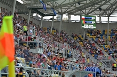 Spotkanie na Stadionie Miejskim w Gdyni reprezentacji Polski i Portugali U-21 w dniu 10.09.2012 r. zakończyło się remisem 0:0. Podczas meczu eliminacyjnego do Młodzieżowych Mistrzostw Europy na trybunach zasiadło ponad 10 tysięcy kibiców.Tłumnie przybywały całe rodziny, grupy szkolne oraz kluby sportowe, nie tylko z Trójmiasta. Wszyscy dopingowali biało - czerwonych z pełnym entuzjazmem. Wymalowane twarze, symbole Polski jak, i Portugali oraz radosne uśmiechy dzieci - to wszystko można było zobaczyć wczoraj na gdyńskim stadionie. Atrakcją były gdyńskie cheerleaderki, które wystąpiły przed meczem, a w jego przerwie przeprowadzony został konkurs, w którym nagrodą były koszulki i piłka z autografami reprezentantów obu państw do lat 21.Polacy szanse na awans do turnieju finałowego stracili już w czwartek, kiedy na wyjeździe przegrali z Rosją 1:4. Mimo przegranej Reprezentacja Polski zyskała uznanie Rui Jorge trenera reprezentacji Portugalii - Gratuluję Polakom drużyny i gry do końca pomimo tego, że nie mieli już szans na awans, ani na baraże - stwierdził po meczu z polską młodzieżówką w Gdyni. Również pozytywne wrażenie wywarła atmosfera zebranych widzów na stadionie, ponieważ rzadko grali przy tak wielkiej publiczności.Biało-czerwoni w końcowej tabeli grupy szóstej uplasowali się na trzecim miejscu za Portugalią, który także została wyeliminowana z dalszych gier.Awans do turnieju finałowego zdobyła Rosja, która w ostatnim meczu tylko zremisowała u siebie z Mołdawią 0:0. fot.: Michał Puszczewicz Opublikowano: 11.09.2012 00:00 Autor: Michał Kowalski (2011)