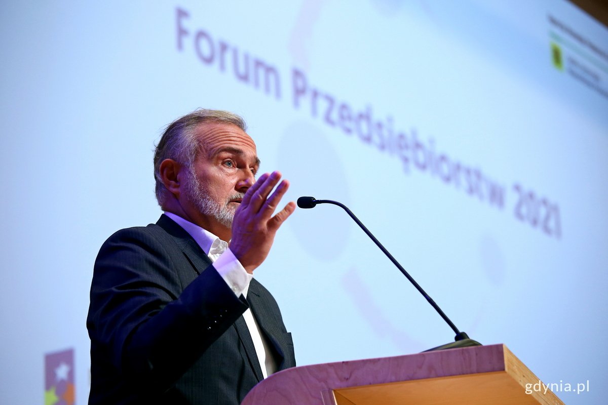 Forum Przedsiębiorstw powróciło do Gdyni po pandemicznej przerwie. Ludzie biznesu, inwestorzy i wszyscy zainteresowani ekonomią spotkali się w środę, 15 września w Pomorskim Parku Naukowo-Technologicznym. Podczas konferencji poruszono zagadnienia dotyczące m.in. bezpieczeństwa w internecie czy turystyki wellbeing. Forum otworzył prezydent Gdyni Wojciech Szczurek, a wśród panelistów znaleźli się m.in.: były wicepremier – Jerzy Hausner czy aktywistka klimatyczna – Katarzyna Jagiełło. Forum Przedsiębiorstw, podobnie jak wiele innych konferencji biznesowych i naukowych, powróciło po pandemicznej przerwie. Koronawirus sprawił, że w ubiegłym roku wydarzenie musiało zostać odwołane. Tym razem odbyło się zarówno stacjonarnie – w Pomorskim Parku Naukowo-Technologicznym w Gdyni – jak i online. Wydarzenie honorowym patronatem objął prezydent Gdyni Wojciech Szczurek. - Bardzo tęskniliśmy za takimi spotkaniami, więc w sposób szczególny ciesze się, że korzystając z okienka pandemicznego, możemy z częścią Państwa spotkać się bezpośrednio. Myślę, że dzisiaj każdy przedsiębiorca, który próbuje na co dzień funkcjonować i budować strategię rozwoju, musi mierzyć się z niezwykle zmiennym otoczeniem. Bardzo potrzebujemy wszyscy stabilizacji i spokoju. Te zmiany, które trzeba zrozumieć, które muszą być elementem budowania codzienności i przyszłości Państwa firm, to rzeczywistość, która może być prostsza dzięki mądrej radzie, debacie i ekspertom. Taki jest podstawowy cel Forum - mówił podczas otwarcia Forum prezydent Gdyni Wojciech Szczurek. W programie Forum Przedsiębiorstw znalazły się panele dyskusyjne, podzielone na trzy zagadnienia. Dotyczyły one: bezpieczeństwa w internecie turystyki wellbeing nowoczesnego marketingu. Podczas sesji uczestnicy próbowali znaleźć odpowiedzi na pytania to, jaki wpływ na małą firmę mają wydarzenia polityczne i zawirowania gospodarcze na drugim końcu świata? Jak dbać o bezpieczeństwo teleinformatyczne w przedsiębiorstwie? Jak umiejętnie promować się w internecie? Co napędza turystykę wellbeing? Jak dbać o dobrostan ciała i umysłu? Na czym polega wielokulturowe i wielopokoleniowe zarządzanie w przedsiębiorstwie? Słuchacze pochylili się także nad zagadnieniami związanymi ze skutecznym zdobywaniem rynków zagranicznych, tworzeniem tzw. powerspeech, a także… reklam na Facebooku i Instagramie. - Warto posłuchać i przede wszystkim warto się spotkać wreszcie face-to-face. Każdy z paneli jest moim zdaniem ciekawy. Oczywiście każdy mógł sobie wybrać coś dla siebie. No i wreszcie trochę networkingu – być zamkniętym w domu, praca mobilna jest teoretycznie fajna, ale jednak to zupełnie co innego. Także ja z miłą chęcią biorę udział w tym spotkaniu – mówi Marek Litka, gdyński przedsiębiorca i uczestnik Forum Przedsiębiorstw. Udział w konferencji wzięli eksperci i praktycy biznesu, a także wyjątkowi goście. Podczas panelu otwierającego komentarz ekonomiczny wygłosił prof. Jerzy Hausner, były wicepremier i minister pracy i polityki społecznej. - Jest to Forum Przedsiębiorstw, w związku z tym to, o czym chcę mówić, jest przede wszystkim spojrzeniem na to, co dzieje się w przedsiębiorstwach i jest to spojrzenie analityka gospodarczego. Co warto zauważyć? Przed wybuchem pandemii dynamika polskiej gospodarki spadła. Pandemia i lockdown, czyli ograniczenia administracyjne, spowodowały głębokie tąpnięcie. One w Polsce nie było jakieś bardzo głębokie. Mieliśmy recesję, która była płytka i taka była przewidywana. Relatywnie szybko obserwujemy odbudowę. Można powiedzieć, że Polska gospodarka nabiera w tej chwili dynamiki. To, że dzisiaj mamy ożywienie, odbudowę, że dobre są wyniki finansowe – tym się trzeba cieszyć, doceniać i dbać o to, żeby tak było. Ale to nie znaczy, że to wszystko musi pójść w dobrą stronę - mówił podczas wystąpienia prof. Jerzy Hausner. Po nim odpowiedzi na pytanie „Jak polityka zagraniczna może służyć obywatelowi?” starał się udzielić Piotr Łukasiewicz - analityk z „Polityka Insight”, który doświadczenie zdobywał służby wojskowej i pracy w dyplomacji, m.in. jako ambasador RP w Afganistanie. Panel otwierający zamknęło wystąpienie aktywistki klimatycznej – Katarzyny Jagiełło, który poświęcony był kryzysowi klimatycznemu.Szczegółowe informacje na temat poszczególnych wystąpień oraz pełną listę prelegentów można znaleźć na stronie forumprzedsiebiorstw.pl.Wydarzenie zrealizowane zostało przez Agencję Rozwoju Pomorza. Forum Przedsiębiorstw 2021 odbyło się pod honorowym patronatem Prezydenta Miasta Gdyni Wojciecha Szczurka. Galeria zdjęć Pobierz galerię Wojciech Szczurek, prezydent Gdyni podczas wystąpienia na Forum Przedsiębiorstw // fot. Przemysław Kozłowski Pobierz zdjęcie Forum Przedsiębiorstw 2021 // fot. Przemysław Kozłowski Pobierz zdjęcie Piotr Łukasiewicz podczas Forum Przedsiębiorstw 2021 // fot. Przemysław Kozłowski Pobierz zdjęcie Prezes Agencji Rozwoju Pomorza - Łukasz Żelewski // fot. Przemysław Kozłowski Pobierz zdjęcie Wojciech Szczurek, prezydent Gdyni podczas wystąpienia na Forum Przedsiębiorstw // fot. Przemysław Kozłowski Pobierz zdjęcie Profesor Jerzy Hausner podczas Forum Przedsiębiorstw // fot. Przemysław Kozłowski Pobierz zdjęcie Warunki pobierania Wszelkie prawa do zdjęć lub grafik prezentowanych w ramach portalu, należą do Prowadzącego portal lub do podmiotów z nim współpracujących i podlegają ochronie prawnej. Prowadzący portal zezwala na kopiowanie i przedstawianie utworów jedynie w celach niekomercyjnych oraz pod warunkiem zachowania go w oryginalnej postaci i zachowaniem kontekstu tematu, do którego zostało wykorzystaneprzez redakcję gdynia.pl. Opublikowane materiały powinny zawsze zawierać źródło, czyli adres strony www.gdynia.pl. Na publikowani