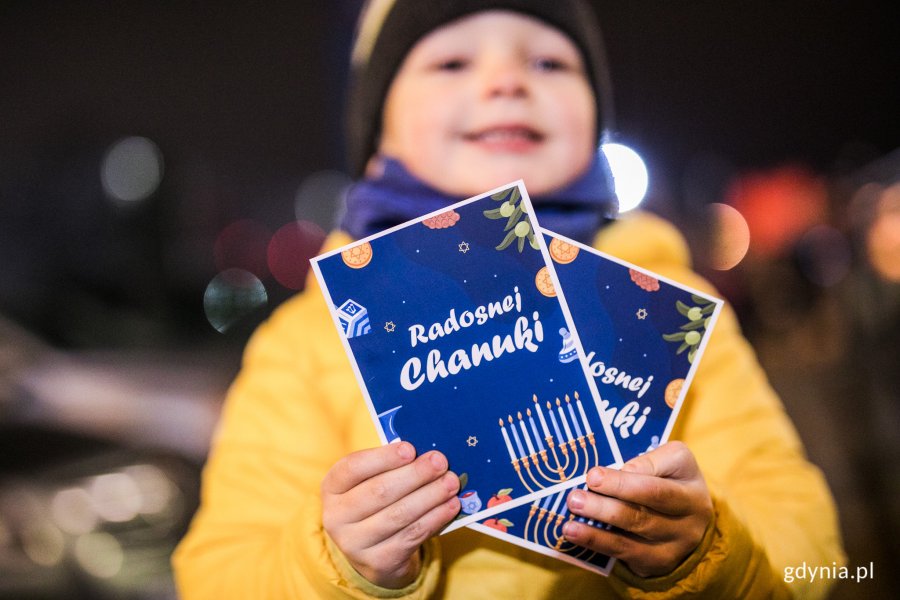 To jedno z najważniejszych i najradośniejszych świąt judaizmu. Rozpoczęło się wczoraj od zapalenia pierwszej świecy na chanukowej menorze – chanukii. Następne zapalane będą przez kolejne dni trwania święta, w sumie osiem. W Gdyni światło rozbłysło przed Muzeum Emigracji. W uroczystości wziął udział prezydent Gdyni Wojciech Szczurek.Chanuka oznacza „poświęcenie” i jest świętem ruchomym, którego początek wyznacza 25 dzień miesiąca kislew w kalendarzu żydowskim. Upamiętnia ponowne poświęcenie Świątyni Jerozolimskiej w 165 roku p.n.e., po udanym powstaniu narodowowyzwoleńczym, które wybuchło, gdy władca Palestyny Antioch IV zbezcześcił świątynię, zaprowadzając w niej kult Zeusa. Z wydarzeniem wiąże się cud, gdyż kapłani po odzyskaniu świątyni odkryli, że zapas oliwy, jaki w niej pozostał, wystarczy zaledwie na jeden dzień utrzymania płomienia w lampie. Ogień palił się jednak przez dni osiem.Dlatego z celebracją święta wiąże się rytuał zapalania świateł, świec lub lampek oliwnych na chanukowej menorze – chanukii – po jednej każdego kolejnego dnia obchodów święta, które trwa właśnie osiem dni. Święto jest bardzo radosne, zapalaniu świateł towarzyszy muzyka i pieśni, a uwielbiają je szczególnie dzieci, gdyż każdego dnia otrzymują upominki. Podczas obchodów nie może zabraknąć tradycyjnych kulinariów – pączków zwanych sufganijot, placków ziemniaczanych, sernika czy naleśników z serem.Chanukowy cud należy zgodnie z tradycją ogłosić całemu światu, dlatego chanukiję ustawia się tak, by była dobrze widoczna – w oknie od strony ulicy lub przy wejściu do domu. W Gdyni zapłonęła wczoraj pierwsza świeca na chanukowej menorze ustawionej przed Muzeum Emigracji, więc dobrą nowinę zabiorą ze sobą w świat marynarze na wypływających w morze statkach.Gdyńską uroczystość, po raz drugi zorganizowało Stowarzyszenie na rzecz kultury „Geszer”, które promuje kulturę żydowską w polskim społeczeństwie. W celebracji zapalenia chanukowej świecy, którą prowadził Tomasz Wrosz, prezes Stowarzyszenia „Geszer”, wziął udział prezydent Gdyni Wojciech Szczurek. - Związki Gdyni z narodem żydowskim obecne były od samego początku powstawania miasta. Kapitał żydowski pomagał miasto budować, dzięki niemu powstała m.in. słynna olejarnia w porcie. Gdynianie pochodzenia żydowskiego, społeczność zamożna i wykształcona, zakładali firmy, budowali kamienice, wydawali swoją gazetę, ich dzieci uczyły się mojżeszowej religii w gdyńskich szkołach. I oczywiście pielęgnowali swoją kulturę i tradycje, zapalając m.in. co roku chanukowe świece. Wielu z nich było we wrześniu1939 roku wśród walczących w obronie Gdyni i Kępy Oksywskiej. W dniu wkroczenia do Gdyni wojsk niemieckich rozpoczęła się ich gehenna. Ważne jest, byśmy dziś o tych związkach pamiętali i wspólnie radowali się podczas takich świąt jak Chanuka – mówi prezydent Wojciech Szczurek. Prezydent Gdyni Wojciech Szczurek podczas uroczystości rozpoczynającej święto Chanuki przed Muzeum Emigracji w Gdyni. Fot. Karol Stańczak Galeria zdjęć Pobierz galerię Rozpoczęcie obchodów święta Chanuki przed Muzeum Emigracji w Gdyni. Fot. Karol Śtańczak Pobierz zdjęcie Rozpoczęcie obchodów święta Chanuki przed Muzeum Emigracji w Gdyni. Fot. Karol Śtańczak Pobierz zdjęcie Rozpoczęcie obchodów święta Chanuki przed Muzeum Emigracji w Gdyni. Fot. Karol Śtańczak Pobierz zdjęcie Rozpoczęcie obchodów święta Chanuki przed Muzeum Emigracji w Gdyni. Fot. Karol Śtańczak Pobierz zdjęcie Warunki pobierania Wszelkie prawa do zdjęć lub grafik prezentowanych w ramach portalu, należą do Prowadzącego portal lub do podmiotów z nim współpracujących i podlegają ochronie prawnej. Prowadzący portal zezwala na kopiowanie i przedstawianie utworów jedynie w celach niekomercyjnych oraz pod warunkiem zachowania go w oryginalnej postaci i zachowaniem kontekstu tematu, do którego zostało wykorzystaneprzez redakcję gdynia.pl. Opublikowane materiały powinny zawsze zawierać źródło, czyli adres strony www.gdynia.pl. Na publikowanie utworów w innych celach wymagana jest zgoda właściciela strony czyli Prowadzącego portal. Opublikowano: 29.11.2021 10:47 Autor: Przemysław Kozłowski (p.kozlowski@gdynia.pl) Zmodyfikowano: 29.11.2021 12:07 Zmodyfikował: Agnieszka Janowicz