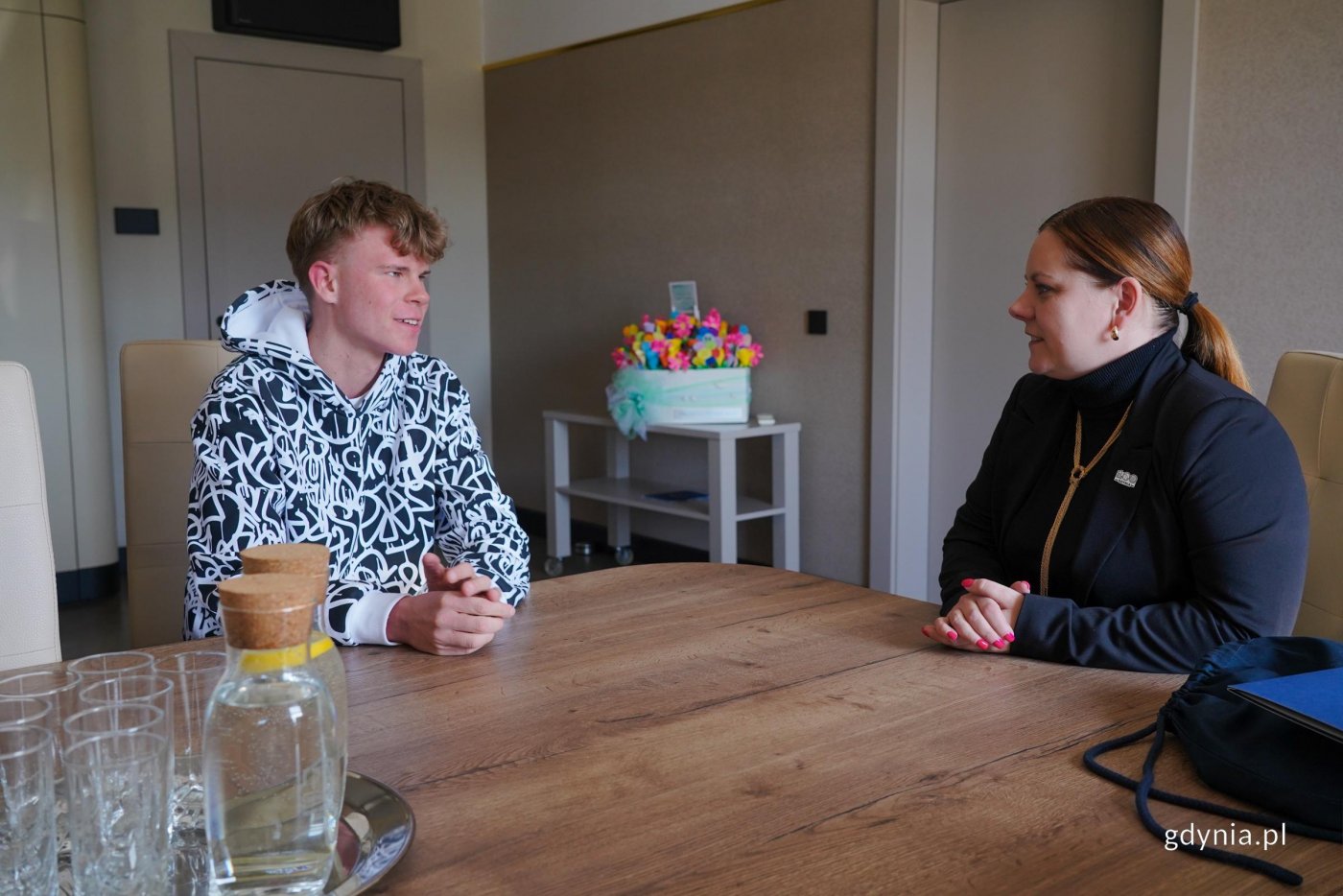 Gdy ktoś potrzebuje pomocy, nigdy nie przechodzi obojętnie. Dominik Kaleta z Chwarzna-Wiczlina jest cichym bohaterem swojej dzielnicy. Wielokrotnie wspierał mieszkańców w różnych sytuacjach, a jego działania zmieniały życie innych na lepsze. Na jego godną pochwały postawę zwrócili uwagę sami Gdynianie. W środę, 1 kwietnia spotkał się on z prezydent Gdyni Aleksandrą Kosiorek, która przekazała mu list gratulacyjny i przekazała wyrazy uznania w imieniu całej lokalnej społeczności. Pomógł chłopcu, który złamał nogę w skateparku, dziewczynce, która przewróciła się na ulicy i poobijała, a także starszej kobiecie, która wywróciła się na oblodzonym chodniku. Dominik Kaleta z Chwarzna-Wiczlina zawsze działał bezinteresownie, z potrzeby serca i nie przechodził obojętnie wobec ludzkiej krzywdy. Dzięki temu zyskał ogromny szacunek wśród mieszkańców swojej dzielnicy. Doceniają oni jego nieustanną gotowość do pomocy i chęć wspierania innych. O jego postawie poinformowali także gdyńskich samorządowców. Jak napisali w wiadomości: „Dominik nie działa okazjonalnie, lecz konsekwentnie angażuje się w życie dzielnicy, stając się wzorem dla młodzieży i inspiracją dla dorosłych”.W środę, 1 kwietnia prezydent Gdyni Aleksandra Kosiorek spotkała się z młodym Gdynianinem, aby mu podziękować i przekazać wyrazy uznania w imieniu całej lokalnej społeczności. Twoje zaangażowanie, szczera troska o mieszkańców oraz gotowość do niesienia wsparcia w codziennych sytuacjach są świadectwem dojrzałości, empatii i ponadprzeciętnej wrażliwości na drugiego człowieka. To postawa godna najwyższego uznania i szczególnej pochwały, stanowiąca piękny przykład dla całej lokalnej społeczności. Niezwykle budujące jest to, że młody człowiek swoim zachowaniem pokazuje, iż życzliwość, odpowiedzialność i uważność na potrzeby innych nadal mają wielką wartość – napisała prezydent Gdyni w liście gratulacyjnym. Dominik otrzymał również drobne upominki związane z miastem. I jak sam powiedział, nie spodziewał się takiego wyróżnienia i zainteresowania sprawą. Jestem zaskoczony. Nie robiłem tego dla poklasku, tylko działałem tu i teraz. Uważam, że każdy powinien tak postąpić i udzielić pomocy. A niestety widzę, że rzadko ktoś sam z siebie zwróci uwagę i zadziała. Warto pomagać, bo nawet mały gest dla kogoś, kto potrzebuje pomocy, może mieć duże znaczenie. I każdy powinien pomagać, jak może – podkreśla Dominik Kaleta, mieszkaniec Chwarzna-Wiczlina. Dominik jest osobą otwartą i empatyczną. I jak zdradził, bardzo lubi wystąpienia publiczne i kontakt z drugim człowiekiem. Dlatego w przyszłości chciałby uczyć. Galeria zdjęć Pobierz galerię Prezydent Gdyni Aleksandra Kosiorek podczas spotkania z Dominikiem Kaletą, młodym mieszkańcem Chwarzna-Wiczlina (fot. Magdalena Czernek) Pobierz zdjęcie Dominik Kaleta, mieszkaniec Chwarzna-Wiczlina, z kartką z motywem plakatu Jana Rutki na stulecie Gdyni (fot. Magdalena Czernek) Pobierz zdjęcie Prezydent Gdyni Aleksandra Kosiorek podczas spotkania z Dominikiem Kaletą, młodym mieszkańcem Chwarzna-Wiczlina (fot. Magdalena Czernek) Pobierz zdjęcie Warunki pobierania Wszelkie prawa do zdjęć lub grafik prezentowanych w ramach portalu, należą do Prowadzącego portal lub do podmiotów z nim współpracujących i podlegają ochronie prawnej. Prowadzący portal zezwala na kopiowanie i przedstawianie utworów jedynie w celach niekomercyjnych oraz pod warunkiem zachowania go w oryginalnej postaci i zachowaniem kontekstu tematu, do którego zostało wykorzystaneprzez redakcję gdynia.pl. Opublikowane materiały powinny zawsze zawierać źródło, czyli adres strony www.gdynia.pl. Na publikowanie utworów w innych celach wymagana jest zgoda właściciela strony czyli Prowadzącego portal. Opublikowano: 02.04.2026 15:42 Autor: Magdalena Czernek (magdalena.czernek@gdynia.pl) Zmodyfikowano: 02.04.2026 15:58 Zmodyfikował: Małgorzata Omachel - Kwidzińska