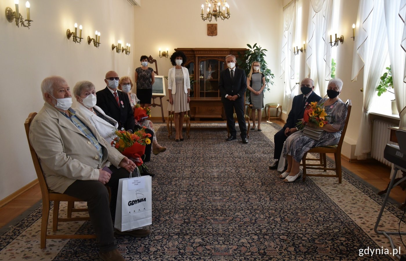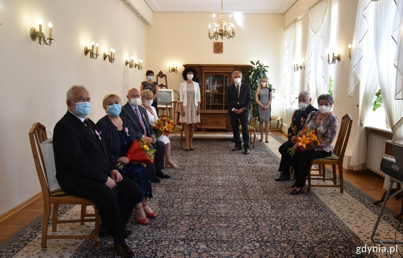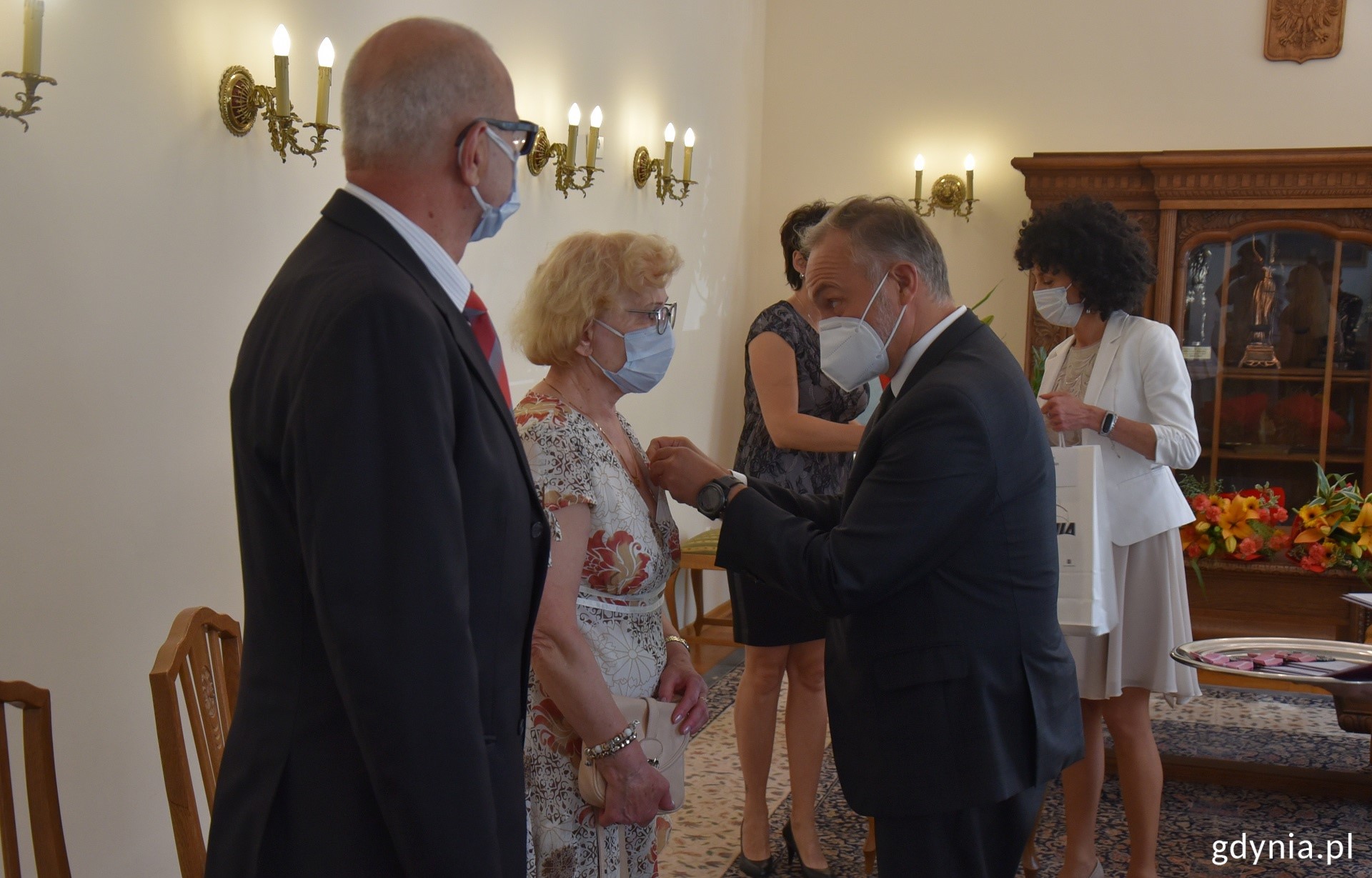 Pół wieku razem budzi niemałe uznanie. By do tego doszło, trzeba poznać wszystkie odcienie życia. Jak to zrobić? Odpowiedzią są dwa słowa: miłość i szacunek. Doskonale wiedzą o tym jubilaci, którzy otrzymali Medale za Długoletnie Pożycie Małżeńskie z rąk prezydenta Wojciecha Szczurka i wiceprezydenta ds. rozwoju Marka Łucyka. To odznaczenia przyznawane przez prezydenta Rzeczypospolitej Polskiej tym parom, które przez co najmniej 50 lat dzieliły codzienność.Mimo że z powodu pandemii podczas spotkań obowiązywały dodatkowe procedury bezpieczeństwa (każdy z uczestników musiał zakryć maseczką nos i usta, niezbędne było też zachowanie odpowiedniego dystansu), to dało się wyczuć atmosferę wielkiego święta. – To wspaniały moment, który pokazuje, że relacja miedzy dwojgiem kochających się ludzi może nigdy nie przeminąć. Życzę Wam, abyście kolejne lata pokonywali z wzajemną życzliwością i uśmiechem na ustach – przyznał prezydent Wojciech Szczurek.– Muszę przyznać, że to jedna z moich ulubionych uroczystości, podczas których mogę zastąpić prezydenta – mówił na jednym z wręczeń wiceprezydent Gdyni Marek Łucyk. – Patrząc na Państwa, chcę czerpać z tego garściami i przekładać nie tylko na swoje życie. Chciałbym, by każdy miał okazję kiedyś odebrać takie odznaczenie, jak Państwo dzisiaj – dodał. W środę, 9 czerwca medale otrzymali: Mirosława i Edward Labudowie Jolanta i Stanisław Leleniowie Ewa i Zdzisław Wąsowie Danuta i Stanisław Boreysza Krystyna i Ryszard Domachowscy Erika i Józef Głuchowie Hanna i Zygmunt Formelowie Elżbieta i Henryk Wilińscy W czwartek, 10 czerwca medale odebrali: Otylia i Ignacy Bernardowie Danuta i Ludwik Moździerzowie Zdzisława i Wojciech Szczęśni Joanna i Wojciech Sokołowscy Danuta i Józef Górniakowie Krystyna i Józef Romanowie Danuta i Grzegorz Machowiakowie Halina i Zdzisław Żmuda-Trzebiatowscy W środę, 16 czerwca medale otrzymali: Anna i Tomasz Zalewscy Maria i Jerzy Pellowscy Grażyna i Piotr Rendaszkowie Henryka i Jan Kowalscy Leopold i Elżbieta Jaskulke Urszula i Zygmunt Jadanowscy Grażyna i Jan Kuldanekowie Zdzisława i Leszek Filipowiczowie Joanna i Zbigniew Smolarkowie W czwartek, 17 czerwca medale odebrali: Maria i Zygmunt Chlebbowie Irena i Józef Deynowie Halina i Zbigniew Jaroszukowie Barbara i Jacek Denegowie Danuta Widawska-Dojka i Lech Dojka Stanisław i Janina Nowakowie Teresa i Bolesław Duzowscy Zofia i Edmund Plichtowie Barbara i Zdzisław Mołasowie Galeria zdjęć Pobierz galerię Przyznanie medali jubilatom w Urzędzie Stanu Cywilnego, fot. Dawid Kowalski Pobierz zdjęcie Przyznanie medali jubilatom w Urzędzie Stanu Cywilnego, fot. Dawid Kowalski Pobierz zdjęcie Przyznanie medali jubilatom w Urzędzie Stanu Cywilnego, fot. Dawid Kowalski Pobierz zdjęcie Przyznanie medali jubilatom w Urzędzie Stanu Cywilnego, fot. Dawid Kowalski Pobierz zdjęcie Przyznanie medali jubilatom w Urzędzie Stanu Cywilnego, fot. Dawid Kowalski Pobierz zdjęcie Przyznanie medali jubilatom w Urzędzie Stanu Cywilnego, fot. Dawid Kowalski Pobierz zdjęcie Przyznanie medali jubilatom w Urzędzie Stanu Cywilnego, fot. Dawid Kowalski Pobierz zdjęcie Przyznanie medali jubilatom w Urzędzie Stanu Cywilnego, fot. Dawid Kowalski Pobierz zdjęcie Przyznanie medali jubilatom w Urzędzie Stanu Cywilnego, fot. Dawid Kowalski Pobierz zdjęcie Przyznanie medali jubilatom w Urzędzie Stanu Cywilnego, fot. Dawid Kowalski Pobierz zdjęcie Przyznanie medali jubilatom w Urzędzie Stanu Cywilnego, fot. Dawid Kowalski Pobierz zdjęcie Przyznanie medali jubilatom w Urzędzie Stanu Cywilnego, fot. Dawid Kowalski Pobierz zdjęcie Przyznanie medali jubilatom w Urzędzie Stanu Cywilnego, fot. Dawid Kowalski Pobierz zdjęcie Przyznanie medali jubilatom w Urzędzie Stanu Cywilnego, fot. Dawid Kowalski Pobierz zdjęcie Przyznanie medali jubilatom w Urzędzie Stanu Cywilnego, fot. Dawid Kowalski Pobierz zdjęcie Przyznanie medali jubilatom w Urzędzie Stanu Cywilnego, fot. Dawid Kowalski Pobierz zdjęcie Przyznanie medali jubilatom w Urzędzie Stanu Cywilnego, fot. Dawid Kowalski Pobierz zdjęcie Przyznanie medali jubilatom w Urzędzie Stanu Cywilnego, fot. Dawid Kowalski Pobierz zdjęcie Przyznanie medali jubilatom w Urzędzie Stanu Cywilnego, fot. Dawid Kowalski Pobierz zdjęcie Przyznanie medali jubilatom w Urzędzie Stanu Cywilnego, fot. Dawid Kowalski Pobierz zdjęcie Warunki pobierania Wszelkie prawa do zdjęć lub grafik prezentowanych w ramach portalu, należą do Prowadzącego portal lub do podmiotów z nim współpracujących i podlegają ochronie prawnej. Prowadzący portal zezwala na kopiowanie i przedstawianie utworów jedynie w celach niekomercyjnych oraz pod warunkiem zachowania go w oryginalnej postaci i zachowaniem kontekstu tematu, do którego zostało wykorzystaneprzez redakcję gdynia.pl. Opublikowane materiały powinny zawsze zawierać źródło, czyli adres strony www.gdynia.pl. Na publikowanie utworów w innych celach wymagana jest zgoda właściciela strony czyli Prowadzącego portal. Opublikowano: 29.06.2021 08:00 Autor: Dawid Kowalski (d.kowalski@gdynia.pl) Zmodyfikowano: 29.06.2021 11:08 Zmodyfikował: Redakcja portalu Gdynia.pl