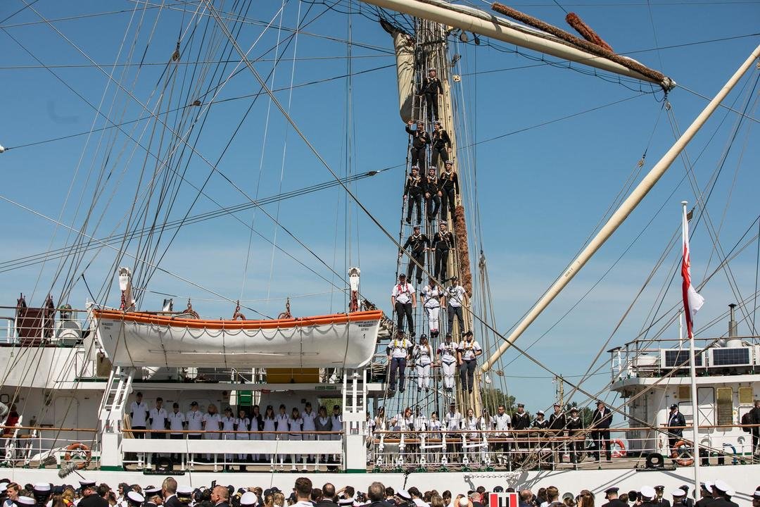 Wypłynięcie żaglowca poprzedziła msza święta. W pożegnaniu udział wzięli przedstawiciele władz lokalnych oraz krajowych, m.in. premier Mateusz Morawiecki, wicepremier prof. Piotr Gliński oraz minister gospodarki morskiej i żeglugi śródlądowej Marek Gróbarczyk.