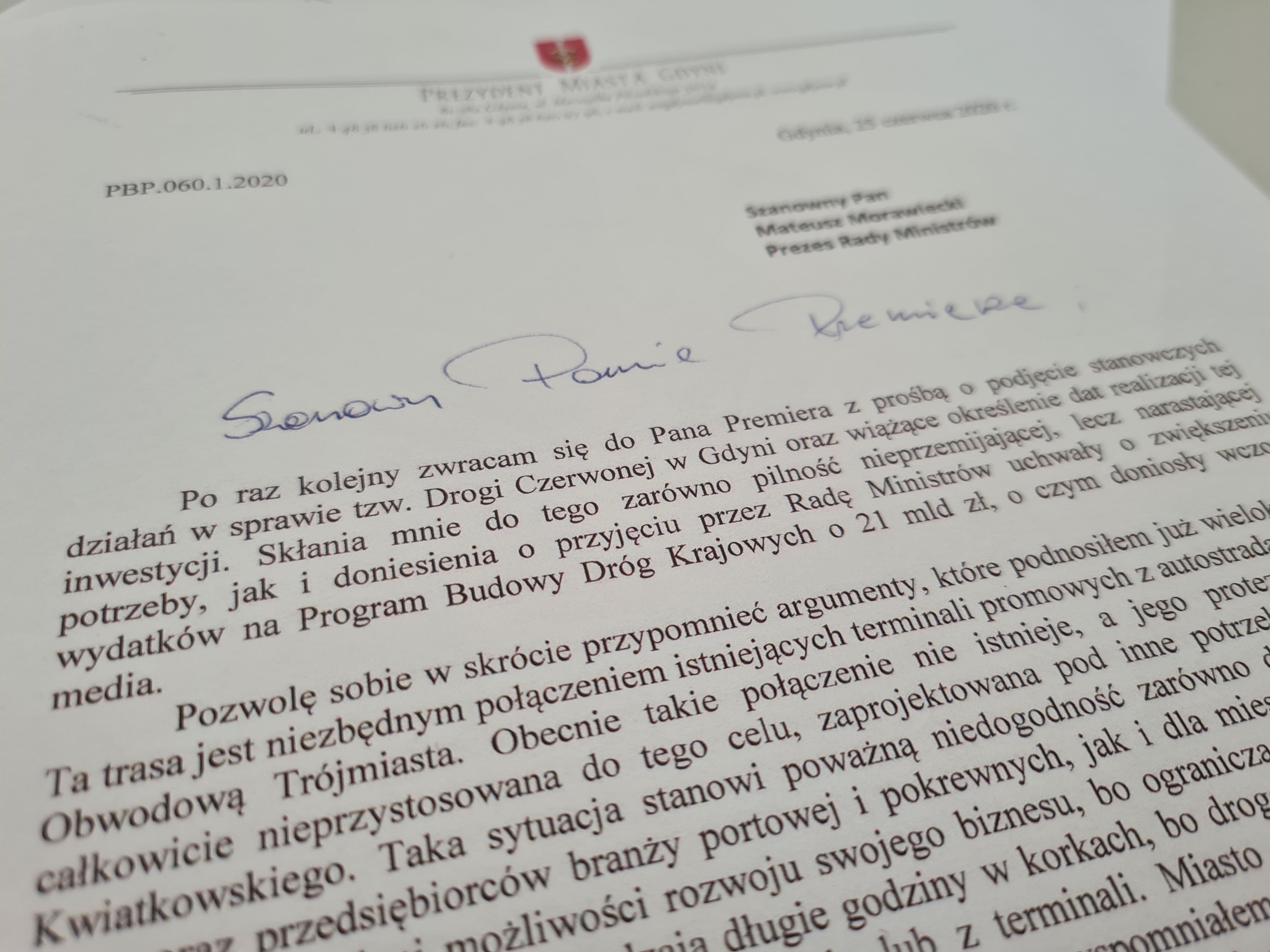 Zapowiada się przełom w drogowym układzie Gdyni. Po liście Prezydenta Wojciecha Szczurka do premiera, podjęto kolejne kroki związane z budową Drogi Czerwonej, która ma poprawić dojazd do gdyńskiego portu. Prace przygotowawcze związane z realizacją tego projektu zostaną sfinansowane z centralnych środków, a dokładnie z Programu Wieloletniego Centralnego Portu Komunikacyjnego w latach 2020-2023. W poniedziałek, 6 lipca, w Porcie Gdynia podpisano porozumienie w tej sprawie. Idea budowy Drogi Czerwonej, która w harmonijny sposób połączy interesy miasta i portu, od wielu lat jest obecna w dyskusji o przyszłości Gdyni. Trasa ekspresowa ma połączyć gdyński port z obwodnicą Trójmiasta, a w przyszłości wiązać się również z Via Maris. Budowa nowej drogi jest priorytetem, szczególnie pod kątem budowy Portu Zewnętrznego w Gdyni, który znacznie zwiększy ruch ciężkiego transportu. Inwestycja poprawi komunikacyjną dostępność Portu Gdynia i zwiększy jego możliwości przeładunkowe, a mieszkańców uwolni od konieczności znoszenia dolegliwości związanych z ciężkim ruchem na nieprzewidzianej do tego celu Estakadzie Kwiatkowskiego, w tym wiecznych korków i remontów. O konieczności budowy Drogi Czerwonej wielokrotnie mówiły i zabiegały m.in. władze Gdyni. Prezydent Wojciech Szczurek walczył o jej budowę od lat, a ostatnio 25 czerwca pisał do premiera RP Mateusza Morawieckiego w specjalnym liście (do pobrania w załączniku pod tekstem) o tym, jak ważna to inwestycja. – Ta trasa jest niezbędnym połączeniem połączeniem istniejących terminali promowych z autostradą poprzez obwodnicę Trójmiasta. Obecnie takie połączenie nie istnieje, a jego protezę stanowi, zaprojektowana na inne potrzeby, Estakada Kwiatkowskiego. Taka sytuacja stanowi poważną niedogodność zarówno dla gdyńskiego portu oraz przedsiębiorców branży portowej i pokrewnych, jak i dla mieszkańców Gdyni. (...) Z tych przyczyn, budowa drogi ze środków centralnych jest działaniem niezbędnym i jedynym możliwym rozwiązaniem istniejącej od lat patowej sytuacji – pisał Wojciech Szczurek.Przypomnijmy, że koszt realizacji dalece przekracza możliwości jakiejkolwiek gminy i finansowanie centralne jest jedynym możliwym rozwiązaniem. Teraz długo oczekiwane połączenie z systemem dróg krajowych doczeka się realizacji. Rząd wsłuchał się w głos samorządu oraz władz portu i w poniedziałek, 6 lipca, podczas konferencji prasowej na nabrzeżu Pilotowym ogłoszono konkretne działania w sprawie powstania Drogi Czerwonej. Minister gospodarki morskiej i żeglugi śródlądowej Marek Gróbarczyk oraz pełnomocnik rządu ds. Centralnego Portu Komunikacyjnego Marcin Horała podpisali porozumienie w sprawie poprawy dostępu do Portu Gdynia. Zakłada ono, że prace przygotowawcze do budowy tzw. Drogi Czerwonej w Gdyni zostaną sfinansowane z Programu Wieloletniego Centralnego Portu Komunikacyjnego w latach 2020-2023. W uroczystości wziął udział również premier Mateusz Morawiecki. Szacowana łączna wartość budowy drogi wyniesie ponad 1,5 mld zł. Realizacją projektu, która jest planowana w latach 2020-2028, zajmie się Generalna Dyrekcja Dróg Krajowych i Autostrad. Finansowanie prac przygotowawczych dla Drogi Czerwonej zostało przewidziane w ramach Programu Społeczno-Gospodarczego wchodzącego w skład Programu Wieloletniego, który jest na ostatnim etapie uzgodnień na poziomie rządowym. Zapewni on finansowanie w latach 2020-2023 dla prac przygotowawczych do inwestycji w nowe lotnisko przesiadkowe dla Polski, nowe linie kolejowe (tzw. szprychy) i inwestycje komplementarne. To nie jedyne decyzje, które zapadły dziś w gdyńskim porcie. Podpisano również porozumienie o współpracy Zarządu Portu Morskiego Gdynia i Centralnego Portu Komunikacyjnego. Oba podmioty zobowiązały się do ścisłej współpracy przy realizacji istotnych projektów inwestycyjnych. – Budowa inwestycji drogowych i kolejowych znacząco przyspieszy realizację kluczowych dla gospodarki morskiej i krajowej projektów, takich jak Port Zewnętrzny. Budowa Drogi Czerwonej będzie stymulacją do rozwoju regionu, ale także wsparciem dla działań na rzecz nowych połączeń żeglugowych w basenie Morza Bałtyckiego – powiedział Adam Meller, prezes Zarządu Morskiego Portu Gdynia. Istotne znaczenie dla trójmiejskich portów mają też planowane inwestycje kolejowe Centralnego Portu Komunikacyjnego na Pomorzu, w szczególności budowa nowej linii kolejowej nr 5 CPK–Płock–Grudziądz–Gdańsk i modernizacja istniejących linii kolejowych nr 131, 201 i 202 przez Trójmiasto do Słupska. Umożliwią one np. osiągnięcie czasu przejazdu z Gdyni do Warszawy w 2 godz. 25 min. a do CPK w 2 godz. 10 min. Port Zewnętrzny Strategiczną inwestycją gdyńskiego portu jest też Port Zewnętrzny. Jego budowa to odpowiedź na rosnącą konkurencję rynkową oraz prognozy popytu na przeładunki kontenerowe. Przewiduje się ich wzrost w polskich portach morskich do poziomu około 9,5 mln TEU w 2050 roku. Budowa Portu Zewnętrznego przygotowywana jest w modelu Partnerstwa Publiczno-Prywatnego. Oznacza to, że firmy będą partycypować w kosztach inwestycji, w zamian za prawo do prowadzenia działalności związanej z przeładunkiem towarów. Prezes Zarządu Morskiego Portu Gdynia Adam Meller podpisał dziś porozumienie w tej sprawie z Waldemarem Budą – pełnomocnikiem rządu ds. Partnerstwa Publiczno-Prywatnego. Do pobrania List prezydenta Gdyni Wojciecha Szczurka do premiera RP Mateusza Morawieckiego ws. Drogi Czerwonej pdf1075kb Opublikowano: 07.07.2020 10:02 Autor: Magdalena Czernek (magdalena.czernek@gdynia.pl) Zmodyfikowano: 07.07.2020 14:23 Zmodyfikował: Agnieszka Janowicz