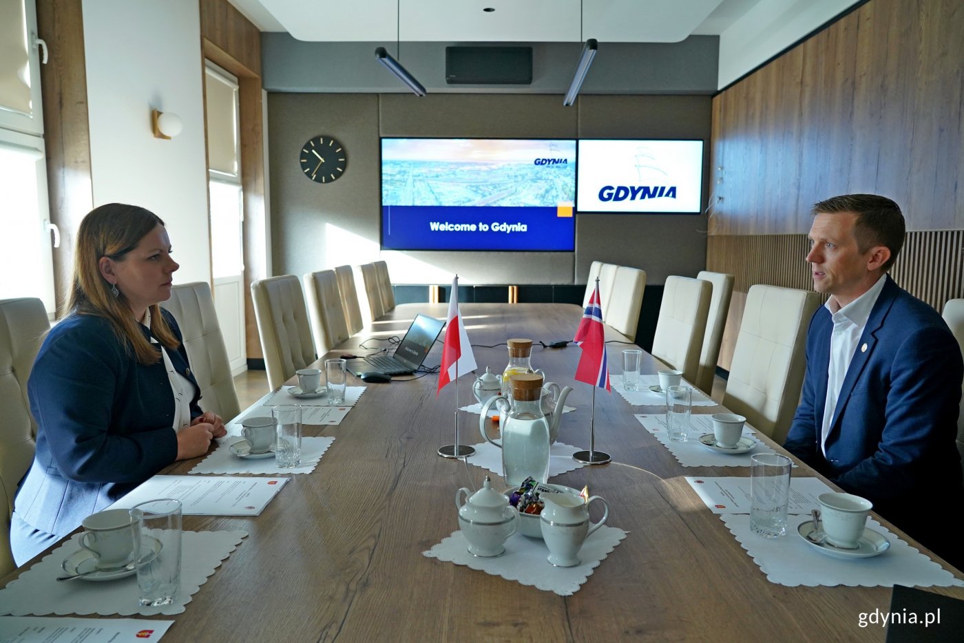 Kultura, zielone technologie, edukacja czy nowa perspektywa Funduszy Norweskich i EOG – m.in. o tym dyskutowali przedstawiciele gdyńskiego samorządu i norweskiego Kristiansandu. Spotkanie odbyło się we wtorek, 4 listopada w Urzędzie Miasta Gdyni. Prezydent Aleksandra Kosiorek rozmawiała podczas niego z Mathiasem Bernanderem – prezydentem Kristiansandu. Obie gminy są miastami siostrzanymi od 1991 roku. Gdynia i Kristiansand współpracują od dawna i chcą zacieśniać relacje. W przyszłym roku minie 35 lat od podpisania umowy o partnerstwie pomiędzy miastami. Wtedy zostanie również uruchomiona nowa pula Funduszy Norweskich i EOG. Z tej okazji we wtorek, 4 listopada w Urzędzie Miasta Gdyni delegacja z Kristiansandu zawitała do Gdyni. W spotkaniu wzięli udział: Aleksandra Kosiorek – prezydent Gdyni, Mathias Bernander – prezydent Kristiansandu, Øyvind Lyngen Laderud – koordynator ds. międzynarodowych Urzędu Miasta Kristiansandu oraz Joanna Leman – kierownik Referatu Współpracy z Zagranicą Urzędu Miasta Gdyni i Anna Czerwińska z Referatu Współpracy z Zagranicą. Na początek reprezentanci obu stron przedstawili prezentacje dotyczące swoich miast. Potem dyskutowali na temat współpracy w obszarach kultury, zielonych innowacji, sytuacji politycznej, edukacji czy sytuacji uchodźców z Ukrainy. Na koniec poruszono kwestię nowej perspektywy grantów w ramach Funduszy Norweskich i EOG.Polska i Norwegia podpisały Memorandum of Understanding, które dotyczy realizacji programu Funduszy Norweskich i EOG w latach 2021-2028. To umożliwia nam korzystanie ze środków nowej perspektywy finansowej. Kładzie ona nacisk na zieloną transformację, ochronę klimatu, rozwój społeczny oraz wzmacnianie demokracji lokalnej. Oba miasta zadeklarowały chęć opracowania wspólnego projektu oraz dalszego umacniania relacji partnerskich poprzez wymianę wizyt, wydarzenia kulturalne i współpracę instytucji samorządowych.Prezydent Gdyni Aleksandra Kosiorek i Mathias Bernander – prezydent Kristiansandu podczas spotkania w Urzędzie Miasta Gdyni (fot. Magdalena Czernek) O współpracy Gdyni i Kristiansandu Kristiansand zostało założone w 1641 roku przez króla Krystiana IV. Jest piątym miastem i szóstą gminą co do wielkości w Norwegii. Leży nad cieśniną Skagerrak. To ważny port morski oraz węzeł komunikacyjny z połączeniami promowymi do Danii. Ma długie tradycje stoczniowe, a obecnie jego zakłady wspierają norweski przemysł naftowy. W pobliżu miasta znajduje się także stacja przetworników sieci HVDC Cross-Skagerrak. Umowa o partnerstwie na zasadach miast siostrzanych między Gdynią a Kristiansandem została podpisana 21 września 1991 roku. Obie strony zadeklarowały chęć współdziałania w zakresie ochrony środowiska i zdrowia, kultury, sportu, turystyki oraz wspierania kontaktów gospodarczych między izbami przemysłowo-handlowymi. Porozumienie zakłada także wymianę informacji o życiu i inwestycjach w obu miastach.W pierwszych latach współpracy Gdynia otrzymała dary z Kristiansandu, m.in. sprzęt medyczny dla szpitala czy minibusa dla Dziennego Ośrodka Adaptacyjnego dla Dzieci i Młodzieży. Pracownicy Miejskiego Ośrodka Pomocy Społecznej uczestniczyli w szkoleniach w Norwegii. W ramach współpracy w dziedzinie bezpieczeństwa w 1999 roku delegacja z Gdyni odbyła wizytę studyjną w Kristiansandzie poświęconą przeciwdziałaniu przestępczości i narkomanii.W 2003 roku przedstawiciele Gdyni wzięli udział w konferencji „Easy Access” w Kristiansandzie, która była poświęcona tematyce osób z niepełnosprawnościami. Dwa lata później Norwegowie uczestniczyli w gdyńskiej konferencji „Rola samorządów w aktywizacji zawodowej osób z niepełnosprawnościami”.W obszarze sportu realizowano wymianę między klubami sportowymi oraz współpracę pomiędzy Wydziałem Sportu Urzędu Miasta Kristiansand i Gdyńskim Centrum Sportu.W latach 2007–2008 Gdynia zrealizowała projekt „Kompleksowa termomodernizacja siedmiu budynków placówek oświatowych na terenie Gdyni”, który był finansowany ze środków Funduszy Norweskich i EOG (EEA and Norway Grants). Miasto uzyskało dofinansowanie w wysokości 1 997 919 euro. Projekt obejmował kilka szkół i zakładał modernizację systemów grzewczych, ocieplenie ścian i stropodachów, wymianę stolarki okiennej i drzwi wejściowych.Oba miasta były gospodarzami regat The Tall Ships’ Races. Norweska delegacja uczestniczyła w gdyńskiej edycji zawodów w 2009 roku, natomiast przedstawiciele naszego miasta brali udział w wydarzeniu w Kristiansandzie w latach 2010 i 2015. W kolejnych latach współpraca między Gdynią a Kristiansandem była kontynuowana i rozwijana zarówno w wymiarze instytucjonalnym, jak i kulturalnym.Oba miasta współpracują również w ramach Związku Miast Bałtyckich (Union of the Baltic Cities).W pierwszej połowie 2022 roku w związku z inwazją Rosji na Ukrainę i wynikającym z niej kryzysem uchodźczym władze Kristiansandu zorganizowały cykl szkoleń online dla pracowników Miejskiego Ośrodka Pomocy Społecznej w Gdyni. Spotkania prowadzone były przez specjalistów z Urzędu Miasta w Kristiansandzie i dotyczyły zarządzania kryzysowego oraz integracji osób z doświadczeniem migracyjnym. Natomiast w maju 2022 roku przedstawiciel Gdyni wziął udział w konferencji European Conference on Democracy and Human Rights poświęconej sytuacji na Ukrainie, a także kwestiom wspierania dobrobytu oraz pokoju przez instytucje i narody europejskie. Wydarzenie jest organizowane w Kristiansandzie cyklicznie. Galeria zdjęć Pobierz galerię Prezydent Gdyni Aleksandra Kosiorek i Mathias Bernander – prezydent Kristiansandu podczas spotkania w Urzędzie Miasta Gdyni (fot. Magdalena Czernek) Pobierz zdjęcie Od lewej: Anna Czerwińska z Referatu Współpracy z Zagranicą, prezydent Gdyni Aleksandra Kosiorek i Joanna Leman – kierownik Referatu Współp