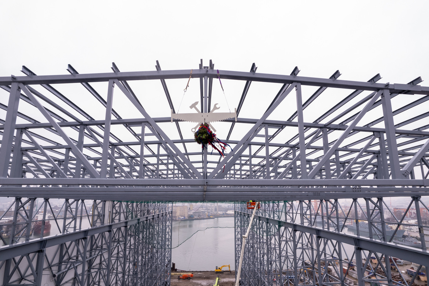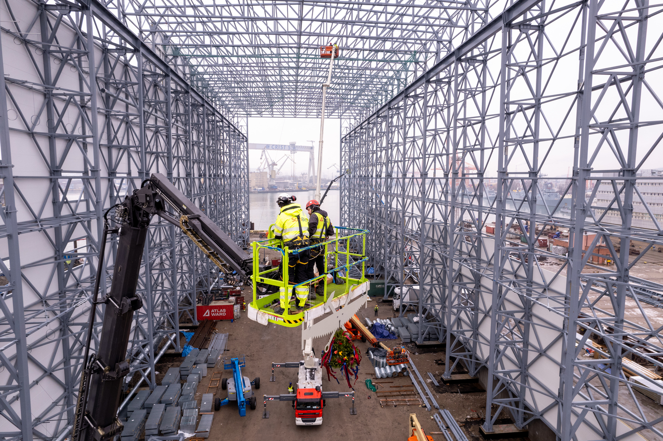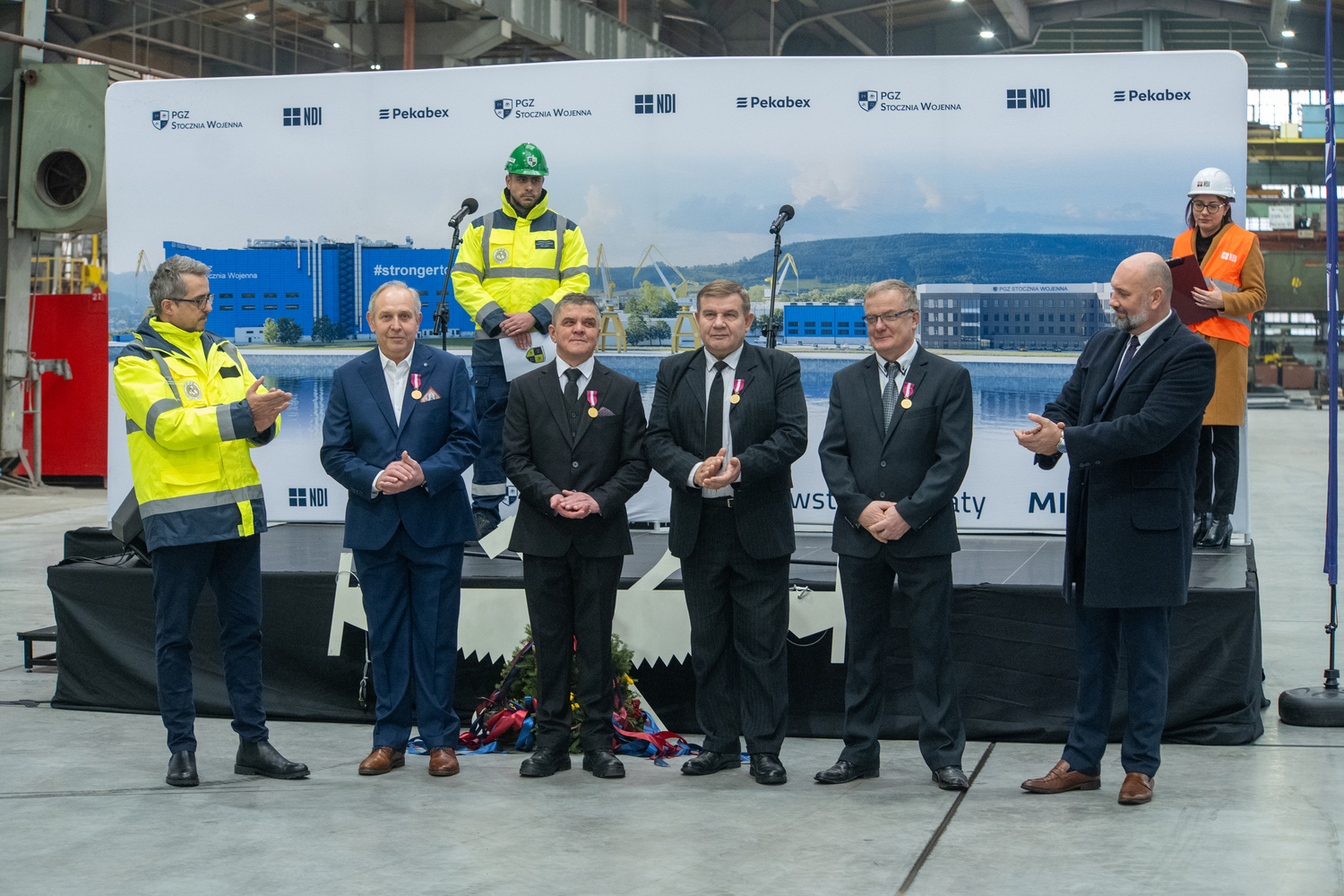 Powierzchnia jej zabudowy to 6 tys. m2, wysokość wraz z klimatyzatorami – aż 46 metrów. O czym mowa? O gigantycznej Hali Kadłubowej, powstającej na terenie PGZ Stoczni Wojennej w Gdyni. Uroczystość zawieszenia wiechy na mierzącej 46 m wysokości Hali Kadłubowej, powstającej na terenie PGZ Stoczni Wojennej, odbyła się 11 grudnia. Hala stanowi część wartej ponad 300 mln zł inwestycji związanej z realizacją największego w historii polskiej Marynarki Wojennej kontraktu na budowę trzech wielozadaniowych, ultranowoczesnych fregat „Miecznik” dla Marynarki Wojennej RP. Powstaną one właśnie tu, w najwyższej w Polsce hali, we współpracy z liderami przemysłu zbrojeniowego (Babcock, MBDA, Thales oraz innymi), w ramach największego w historii kontraktu udzielonego polskiemu przemysłowi stoczniowemu. Tak bedzie wyglądać gotowa Hala Kadłubowa. Fot. PGZ Stocznia Wojenna Tu powstaną „Mieczniki” W ramach inwestycji zaplanowano m.in. budowę dwóch hal produkcyjnych a także przebudowę już istniejącej infrastruktury oraz modernizację i rozbudowę parku maszynowego. Inwestycja jest niezbędna do realizacji Programu „Miecznik” i znacznie zwiększy zdolności produkcyjne PGZ Stoczni Wojennej. Uroczystość zawieszenia wiechy na mierzącej 46 m wysokości Hali Kadłubowej, powstającej na terenie PGZ Stoczni Wojennej. Na zdj. m.in. Sebastian Chwałek, Prezes Polskiej Grupy Zbrojeniowej i Paweł Lulewicz, Prezes PGZ Stoczni Wojennej. Fot. PGZ Stocznia Wojenna - Dzisiaj, wraz z zawieszeniem wiechy na najwyższej w Polsce hali, świętujemy osiągnięcie kolejnego kamienia milowego największej w ponad 101-letniej historii naszej Stoczni inwestycji. Jeszcze kilka miesięcy temu nasze nowe hale były jedynie śmiałymi pomysłami i niektórzy powątpiewali, czy uda się je zrealizować. Jak widać wszystko idzie zgodnie z harmonogramem i już za kilka miesięcy, w sierpniu 2024 roku, PGZ Stocznia Wojenna będzie dysponowała infrastrukturą i maszynami oraz urządzeniami, które uczynią z niej najnowocześniejszą stocznią w Polsce! – mówił na uroczystości zawieszenia wiechy Paweł Lulewicz, Prezes PGZ Stoczni Wojennej. Uroczystość zawieszenia wiechy na mierzącej 46 m wysokości Hali Kadłubowej, powstającej na terenie PGZ Stoczni Wojennej. Fot. PGZ Stocznia Wojenna „Mieczniki” będą wyposażone w nowoczesne systemy radiolokacyjne, artyleryjskie i rakietowe. Dzięki tym okrętom Marynarka Wojenne RP uzyska nowe możliwości realizacji szerokiego zakresu zadań na polskich obszarach morskich oraz uczestnictwa w misjach i ćwiczeniach organizowanych z sojusznikami z NATO. Pierwsza fregata zostanie wybudowana do 2026 roku. Najwyższa w Polsce Najważniejszym zadaniem wartej ponad 300 mln zł inwestycji jest budowa nowej hali, w której składane będą kadłuby trzech fregat dla Marynarki Wojennej RP, powstających w ramach Programu Miecznik. Zgodnie z projektem powierzchnia jej zabudowy wyniesie blisko 6 tys. m2. Wysokość hali to 43 m (nawet 46 m wliczając zamontowane na dachu zespół urządzeń do wentylacji), co uczyni ją najwyższą halą w polskim przemyśle stoczniowym i jednym z największych tego typu obiektów w Europie. Uroczystość zawieszenia wiechy na mierzącej 46 m wysokości Hali Kadłubowej, powstającej na terenie PGZ Stoczni Wojennej. Fot. PGZ Stocznia Wojenna Oprócz Hali Kadłubowej powstaje też hala produkcyjna, w której będą funkcjonowały wszystkie stoczniowe wydziały wyposażeniowe (powierzchnia zabudowy to prawie 5 tys. m2). Konsorcjum w składzie NDI S.A., NDI SOPOT S.A. oraz Pekabex BET odpowiada także za rozbudowę i przebudowę nabrzeża, placów składowych i dróg wewnętrznych wraz z modernizacją infrastruktury technicznej na terenie Stoczni. Realizacja projektu w Polsce pozwala na wytworzenie około 2000 miejsc pracy w stoczniach, przedsiębiorstwach zbrojeniowych oraz innych sektorach przemysłu bezpośrednio zaangażowanych w projekt. Opublikowano: 12.12.2023 13:30 Autor: Zygmunt Gołąb (z.golab@gdynia.pl) Zmodyfikowano: 12.12.2023 14:08 Zmodyfikował: Agnieszka Janowicz