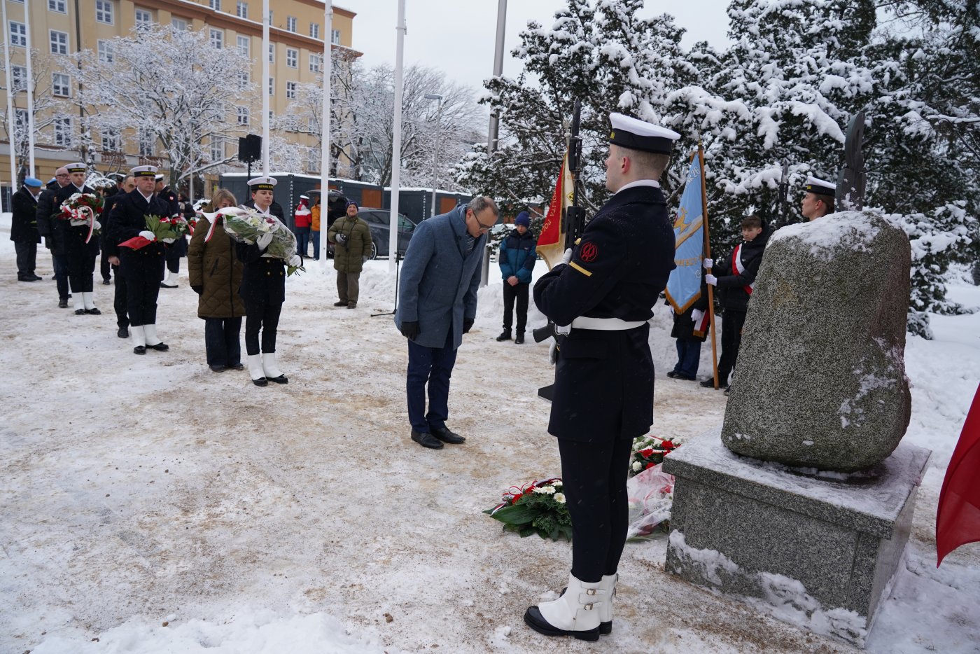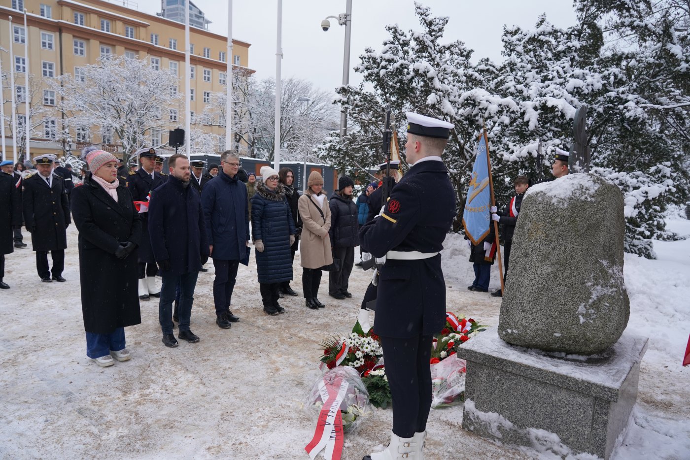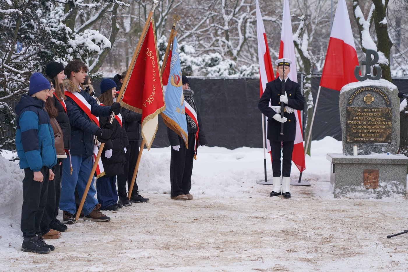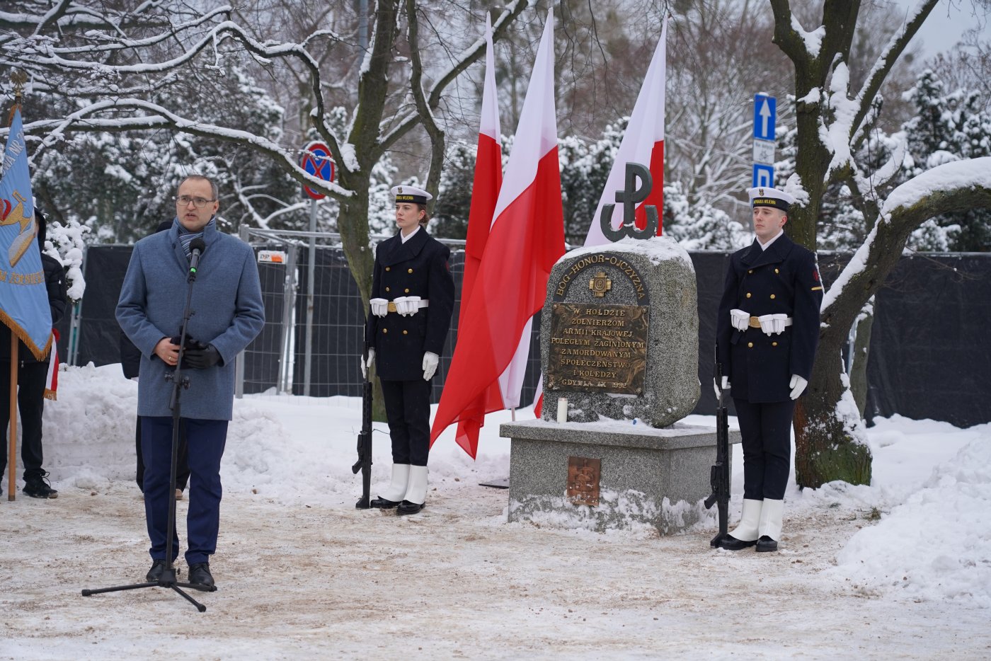 Dziś mija 84. rocznica utworzenia Armii Krajowej. W ubiegłym roku Sejm Rzeczypospolitej Polskiej ustanowił 14 lutego Narodowym Dniem Pamięci Żołnierzy Armii Krajowej. To święto państwowe upamiętniające największą polską konspiracyjną armię z czasów II wojny światowej. Armia Krajowa była jednym z najważniejszych filarów Polskiego Państwa Podziemnego. Licząca 340 tysięcy żołnierzy formacja skupiała ludzi, którzy byli gotowi poświęcić się dla ojczyzny. Działali w konspiracji, sabotowali niemieckie działania, prowadzili dywersję i włączali się do otwartej walki o niepodległość. 14 lutego 2026 r., w 84. rocznicę utworzenia AK, w Gdyni odbyły się oficjalne uroczystości przed pomnikiem Armii Krajowej na Skwerze Kościuszki, poprowadzone przez Marynarkę Wojenną. Hołd żołnierzom Armii Krajowej oddali między innymi: posłanka Wioleta Tomczak, posłanka Dorota Arciszewska-Mielewczyk, wicewojewoda pomorski Emil Rojek, wiceprezydent Gdyni Rafał Geremek, gdyńscy radni miejscy: Teresa Bysewska, Monika Strzałkowska, Agnieszka Tokarska, Beata Zastawna i Robert Anisowicz, przedstawiciele Młodzieżowej Rady Miasta Gdyni, a także działacze, przedstawiciele Stowarzyszenia Kombatantów Misji Pokojowych ONZ koło nr 31 Gdyni, członkowie stowarzyszeń patriotycznych, mieszkańcy i uczniowie gdyńskich szkół. Jak zaznaczał wicewojewoda pomorski Emil Rojek, stający do walki młodzi ludzie pamiętali lub usłyszeli od swoich rodziców historię o tym, że Polski na mapie nie było w ogóle, zdając sobie sprawę, że wolność ponownie jest im wydzierana z rąk. Oni obserwowali na co dzień, co się działo z ich sąsiadami, czasem bliskimi, którzy w łapankach albo w innych formach represji znikali nagle i potem, czasem po wielu latach dowiadywano się o tym, że trafili do obozów koncentracyjnych albo zwyczajnie zostali rozstrzelani. To zwycięstwo, formalne odzyskanie niepodległości, było dla tych ludzi słodko-gorzkie, bo dla jednych koszmarne represje się zakończyły, a inni nadal musieli płacić za swoje bohaterstwo wysoką cenę. Dzisiaj się spotykamy, mówimy o ich poświęceniu, mówimy o tym, że są godni szacunku. I że ten akt wierności, honoru, uczciwości, pracowitości, które oni prezentowali swoją pracą i swoją postawą w czasie wojny, może być dla nas inspiracją godną do naśladowania – podkreślał wicewojewoda pomorski Emil Rojek. Zatrzymajmy się na chwilę, by oddać hołd wszystkim tym, którzy w czasie największej próby nie zawahali się ani przez moment i stanęli do walki. Walki niezwykle dramatycznej, przeciwko obrzydliwej, najbardziej niszczycielskiej tyranii, która na długie lata skalała karty historii. Armia Krajowa była fenomenem na skalę światową. To właśnie tutaj niezwykle młodzi ludzie, harcerze, studenci stanęli ramię w ramię z nauczycielami, robotnikami, przedstawicielami różnych środowisk i pokoleń. Zjednoczeni w oporze, zjednoczeni w walce przeciwko najemcom, pokazali, że siła narodu rodzi się z jedności, odwagi i odpowiedzialności za ojczyznę – mówił podczas uroczystości wiceprezydent Gdyni Rafał Geremek. Uczestniczki i uczestnicy sobotniej uroczystości przed pomnikiem Armii Krajowej złożyli kwiaty i zapalili znicze. Galeria zdjęć Pobierz galerię Uroczystości pod pomnikiem Armii Krajowej (fot. Dorota Patzer) Pobierz zdjęcie Hołd żołnierzom Armii Krajowej oddali między innymi: posłanka Wioleta Tomczak, posłanka Dorota Arciszewska-Mielewczyk, wicewojewoda pomorski Emil Rojek, wiceprezydent Gdyni Rafał Geremek, gdyńscy radni miejscy: Teresa Bysewska, Monika Strzałkowska, Agnieszka Tokarska i Robert Anisowicz, a także działacze, przedstawiciele Stowarzyszenia Kombatantów Misji Pokojowych ONZ koło nr 31 Gdyni, członkowie stowarzyszeń patriotycznych, mieszkańcy i uczniowie gdyńskich szkół (fot. Dorota Patzer) Pobierz zdjęcie Uroczystości pod pomnikiem Armii Krajowej (fot. Dorota Patzer) Pobierz zdjęcie Podczas uroczystości przemawiał wicewojewoda pomorski Emil Rojek (fot. Dorota Patzer) Pobierz zdjęcie Podczas uroczystości list prezydent Gdyni, Aleksandry Kosiorek odczytał wiceprezydent Rafał Geremek (fot. Dorota Patzer) Pobierz zdjęcie Kwiaty pod pomnikiem składa wicewojewoda pomorski Emil Rojek (fot. Dorota Patzer) Pobierz zdjęcie Kwiaty pod pomnikiem złożyli: wiceprezydent Gdyni Rafał Geremek, radni: Monika Strzałkowska, Teresa Bysewska, Agnieszka Tokarska i Norbert Anisowicz (fot. Dorota Patzer) Pobierz zdjęcie Hołd oddała delegacja Marynarki Wojennej z zastępcą dowódcy Garnizonu Gdynia komandorem Przemysławem Karasiem (fot. Dorota Patzer) Pobierz zdjęcie Kwiaty składali również przedstawiciele Stowarzyszenia Kombatantów Misji Pokojowych ONZ koło nr 31 Gdyni (fot. Dorota Patzer) Pobierz zdjęcie Hołd żołnierzom Armii Krajowej oddali między innymi: posłanka Wioleta Tomczak, posłanka Dorota Arciszewska-Mielewczyk, wicewojewoda pomorski Emil Rojek, wiceprezydent Gdyni Rafał Geremek, gdyńscy radni miejscy: Teresa Bysewska, Monika Strzałkowska, Agnieszka Tokarska, Beata Zastawna i Robert Anisowicz, a także działacze, przedstawiciele Stowarzyszenia Kombatantów Misji Pokojowych ONZ koło nr 31 Gdyni, członkowie stowarzyszeń patriotycznych, mieszkańcy i uczniowie gdyńskich szkół (fot. Dorota Patzer) Pobierz zdjęcie W oficjalnych uroczystościach wzięli udział między innymi: wicewojewoda pomorski Emil Rojek, wiceprezydent Gdyni Rafał Geremek, posłanka Wioleta Tomczak, gdyńscy radni miejscy: Teresa Bysewska, Monika Strzałkowska, Agnieszka Tokarska, Beata Zastawna i Robert Anisowicz (fot. Dorota Patzer) Pobierz zdjęcie Przedstawiciele Młodzieżowej Rady Miasta: Iga Drzewiecka i Kamil Pałka (fot. Dorota Patzer) Pobierz zdjęcie Pomnik Armii Krajowej znajduje się w Gdyni na Skwerze Kościuszki (fot. Dorota Patzer) Pobierz zdjęcie Pomnik Armii Krajowej znajduje się w Gdyni na Skwerze Kościuszk