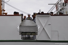 Od 17 do 22 sierpnia 2013 r. gościliśmy w Gdyni meksykański żaglowiec szkolny Marynarki Wojennej Meksyku - „Cuauhtemoc". Wielką atrakcją dla publiczności było z pewnością widowiskowe wejście i wyjście do/z portu - z młodymi kadetami na rejach, oraz zwiedzanie tej pięknej jednostki. Meksykańskich gości pożegnali prezydent Gdyni Wojciech Szczurek, ambasador Ricardo Villanueva Hallal, konsul honorowy Meksyku Andrzej Suchecki, przedstawiciele Akademii Marynarki Wojennej i Akademii Morskiej oraz licznie przybyli mieszkańcy naszego miasta. Nie zabrakło również „Daru Młodzieży", który (wraz z ORP Błyskawica) zgodnie z morskim ceremoniałem głośno żegnał buczkami, a później wypłynął na redę i tam zakotwiczył. Z daleka pięknie wyglądały maszty obu żaglowców.Zapamiętamy wszyscy Wielki Mecz Koszykówki drużyny „Cuauhtemoc" i zespołu Rady Miasta Gdyni: serdeczna publiczność, wielkie emocje, występy gdyńskich cheerleaderek i wygrana gości 24:22. Kapitan „Cuauhtemoca" zapowiedział: „Oczywiście, że do Was wrócimy. Nie możemy przyjeżdżać tak często jak byśmy chcieli. Mamy wiele zobowiązań. Moi przełożeni są zdania, że statek musi przypływać do Gdyni. Tutaj ludzie nas bardzo kochają." fot. Dorota Nelkefot. K. Miłosz / Akademia Marynarki Wojennej Opublikowano: 22.08.2013 00:00 Autor: Sylwia Szumielewicz - Tobiasz (s.szumielewicz@gdynia.pl)