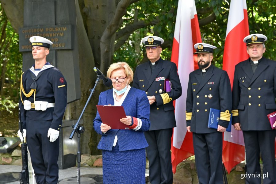 To była elita naszego państwa – oficerowie Wojska Polskiego, policjanci, urzędnicy, lekarze, profesorowie, prawnicy, nauczyciele, inżynierowie, duchowni, literaci, kupcy i działacze społeczni. Wiosną 1940 roku, decyzją władz ZSRR, rozstrzelano około 22 tysięcy polskich obywateli przetrzymywanych w obozach i więzieniach na terenie Związku Sowieckiego. W czwartek, 17 września, odbyły się uroczystości upamiętniające tamte wydarzenia. Hołd oddano zarówno tym, którzy oddali życie podczas sowieckiej agresji na Polskę, jak i ofiarom zbrodni katyńskiej. W miejscach pamięci zapalono znicze i złożono wieńce oraz wiązanki kwiatów.17 września mija 81. rocznica agresji sowieckiej na Polskę. W tym roku te rocznicowe uroczystości zostały połączone z obchodami 80. rocznicy zbrodni katyńskiej. Pamięć o ofiarach tamtych zbrodni czczona jest zazwyczaj 13 kwietnia. Wtedy przypada Dzień Pamięci Ofiar Zbrodni Katyńskiej. Jednak w tym roku, ze względu na trwającą pandemię, tradycyjne obchody nie mogły się odbyć w pierwotnym terminie. W Gdyni hołd pomordowanym oddano w czwartek, 17 września. Obchody rozpoczęły się od złożenia kwiatów pod tablicą Marynarzy Polskich Zamordowanych na Wschodzie przy ul. Waszyngtona. Następnie uczestnicy uroczystości przenieśli się na cmentarz wojskowy Obrońców Wybrzeża w Redłowie. Tam odbyła się główna część obchodów. Przybyłych gości powitała prezes stowarzyszenia Gdyńska Rodzina Katyńska.– Dziś chcemy oddać cześć ofiarom sowieckiej agresji na Polskę, a w szczególny sposób uczcić pamięć naszych ojców- ofiar zbrodni katyńskiej. Kiedy 17 września 1939 roku Sowieci napadli na nasz kraj, postanowili ostatecznie rozwiązać problem Polski. Pozbawili życia wszystkich, którzy byli zdolni ponieść idee niepodległości. Ofiarami tej napaści byli jeńcy, ale także Polacy, którzy dostali się do niewoli sowieckiej podczas tej agresji. Naszych ojców zabijano strzałem w tył głowy, by później wrzucić ich do głębokich dołów. Zbrodni katyńskiej dokonano 5 marca 1940 roku, decyzją Stalina. Kazano ich rozstrzelać, bo to zatwardziali, nierokujący poprawy wrogowie władzy sowieckiej. Tych ludzi zgładzono bez procesów i wyroków. Zostali zamordowani z pogwałceniem praw i konwencji cywilizowanego świata. Należeli do elity polskiego narodu, stanowili o sile ducha – mówiła podczas uroczystości Barbara Pytko, prezes stowarzyszenia Gdyńska Rodzina Katyńska. W uroczystości wzięli udział m.in.: przedstawiciele władz Gdyni, dowódcy i żołnierze Marynaki Wojennej, rodziny katyńskie, Sybiracy oraz mieszkańcy miasta. Były przemówienia, wspólna modlitwa, salwa honorowa i apel pamięci.– 81 lat temu Armia Czerwona przekroczyła wschodnie granice Polski. Było to konsekwencją porozumienia Ribbentrop-Mołotow, zawartego w ostatnich dniach sierpnia. W tym momencie rozpoczął się kolejny rozbiór Polski. To porozumienie podzieliło nasz kraj pomiędzy dwa mocarstwa – Niemcy i Związek Radziecki. W wyniku wkroczenia Armii Radzieckiej na tereny polskie zginęło ponad 200 tysięcy osób, a ponad milion Polaków zostało wywiezionych na Sybir, na nieludzką ziemię. Niewielu z nich wróciło do naszego kraju. Konsekwencją tych wydarzeń była też zbrodnia katyńska. Ponad 22 tysiące żołnierzy, oficerów, policjantów zginęło w lasach katyńskich, Miednoje czy Charkowie. W Gdyni zawsze gromadzimy się na cmentarzu redłowskim, aby oddać cześć ofiarom – mówiła podczas uroczystości Joanna Zielińska, przewodnicząca Rady Miasta Gdyni.Na koniec uczestnicy złożyli wieńce i wiązanki kwiatów oraz zapalili znicze pod pomnikiem Ofiar Katynia.Obchody uświetniła Orkiestra Reprezentacyjna Marynarki Wojennej oraz honorowa asysta wojskowa. Zbrodnia katyńska Wiosną 1940 roku sowiecka policja polityczna – NKWD – wymordowała blisko 22 tysiące Polaków. Było wśród nich 14,5 tysiąca jeńców wojennych – oficerów i policjantów – z obozów w Kozielsku, Starobielsku i Ostaszkowie oraz 7,3 tysiąca więźniów aresztowanych, w okupowanej przez Związek Sowiecki, wschodniej części Polski. Oficerów z obozu kozielskiego rozstrzelano w Katyniu. Jeńców ze Starobielska – w Charkowie, a policjantów z Ostaszkowa – w Kalininie. Kolejne egzekucje przeprowadzono w więzieniach w Mińsku, Kijowie, Charkowie i Chersoniu. Galeria zdjęć Pobierz galerię Uroczystości 80. rocznicy zbrodni katyńskiej odbyły się z udziałem honorowej asysty wojskowej // fot. Magdalena Czernek Pobierz zdjęcie Barbara Pytko, prezes stowarzyszenia Gdyńska Rodzina Katyńska przywotała gości // fot. Magdalena Czernek Pobierz zdjęcie W uroczystości wzięli udział gdyńscy uczniowie i przedstawiciele stowarzyszeń // fot. Magdalena Czernek Pobierz zdjęcie Uroczystości 80. rocznicy zbrodni katyńskiej odbyły się z udziałem honorowej asysty wojskowej // fot. Magdalena Czernek Pobierz zdjęcie Uroczystości z okazji 80. rocznicy zbrodni katyńskiej // fot. Magdalena Czernek Pobierz zdjęcie W uroczystości 80. rocznicy zbrodni katyńskiej wzięli udział (od lewej): radny Lechosław Dzierżak, przewodnicząca Rady Miasta Gdyni Joanna Zielińska oraz radni Zenon Roda i Krzysztof Chachulski // fot. Magdalena Czernek Pobierz zdjęcie Podczas uroczystości głoz zabrała Joanna Zielińska - przewodnicząca Rady Miasta Gdyni // fot. Magdalena Czernek Pobierz zdjęcie Pomnik Ofiar Katynia // fot. Magdalena Czernek Pobierz zdjęcie Uroczystości z okazji 80. rocznicy zbrodni katyńskiej // fot. Magdalena Czernek Pobierz zdjęcie Salwa honorowa // fot. Magdalena Czernek Pobierz zdjęcie Dalegacje złozyły kwiaty pod pomnikiem // fot. Magdalena Czernek Pobierz zdjęcie Delegacja władz miasta (od lewej): radny Lechosław Dzierżak, radna Elżbieta Raczyńska, Joanna Zielińska - przewodnicząca Rady Miasta Gdyni oraz radni Zenon Roda i Krzysztof Chachulski składają kwiaty pod pomni