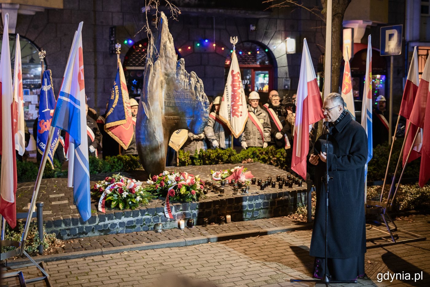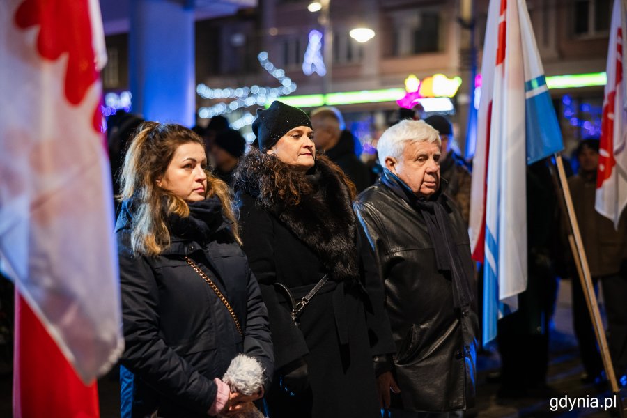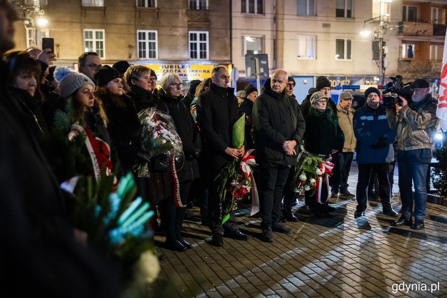 Jak co roku 13 grudnia pod pomnikiem Ofiar Terroru Komunistycznego odbyły się uroczystości upamiętniające osoby, które straciły życie podczas represji w trakcie stanu wojennego. Tego właśnie dnia w 1981 r. na ulice polskich miast wyjechały czołgi, pojazdy opancerzone i wozy bojowe. Siłami ponad 100 tys. uzbrojonych żołnierzy i funkcjonariuszy władze komunistyczne chciały stłumić społeczne protesty. Stan wojenny trwał do 22 lipca 1983 r. Działaczy opozycji aresztowano i osadzano w ośrodkach odosobnienia. Podczas tłumienia protestów padli zabici i ranni. Działania sił MSW i wojska były wyjątkowo brutalne. Do lat 90. w wyniku represji, ciężkich pobić czy ran postrzałowych zmarło ponad 100 osób. Pierwsze znicze w hołdzie ofiarom radni Gdyni na czele z przewodniczącym Rady Miasta Tadeuszem Szemiotem zapalili przed pomnikiem już kilka minut po północy. Główne uroczystości z udziałem prezydent Gdyni Aleksandry Kosiorek, samorządowców, radnych, działaczy NSZZ „Solidarność” oraz mieszkańców rozpoczęły się w piątkowe popołudnie od widowiska słowno-muzycznego w wykonaniu uczniów II Liceum Ogólnokształcącego w kościele pw. Matki Bożej Nieustającej Pomocy i św. Piotra Rybaka. Następnie w tej samej świątyni odprawiono mszę św., po której nastąpił przemarsz ul. Portową, placem Kaszubskim, ul. Świętojańską i ul. Pułaskiego przed pomnik Ofiar Terroru Komunistycznego.U stóp pomnikap odbyła się dalsza część uroczystości ze wspólną modlitwą oraz okolicznościowymi przemówieniami. Głos zabrała m.in. Aleksandra Kosiorek, prezydent Gdyni. To wspomnienie nie tylko indywidualnych losów wielu osób, nie tylko oficjalnie kilkudziesięciu ofiar śmiertelnych, 10 tys. internowanych czy 11 tys. postawionych przed sądami, ale też doświadczenie zbiorowego strachu, niepewności czy gniewu – mówiła prezydent Aleksandra Kosiorek. – Oddając dziś hołd ofiarom stanu wojennego, wszystkim osobom zabitym, aresztowanym, osądzonym, internowanym, osobom, które były szykanowane, traciły pracę, musiały się ukrywać, którym odbierano prawa, mówię w imieniu gdynian: pamiętamy i będziemy pamiętać. Obchody 43. rocznicy wprowadzenia stanu wojennego zwieńczyło złożenie kwiatów. Galeria zdjęć Pobierz galerię Uczestnicy mszy św. poprzedzającej uroczystość przed pomnikiem (fot. Karol Stańczak) Pobierz zdjęcie Uczniowie II LO podczas montażu słowno-muzycznego (fot. Karol Stańczak) Pobierz zdjęcie Od lewej: posłanka Dorota Arciszewska-Mielewczyk, dyrektor biura senatora Sławomira Rybickiego Grzegorz Kuleta, radna Gdyni Beata Horała, poseł Marcin Horała (fot. Karol Stańczak) Pobierz zdjęcie Przedstawiciele NSZZ „Solidarność” w kościele (fot. Karol Stańczak) Pobierz zdjęcie Przedstawiciele Stoczni Remontowej NAUTA S.A. w kościele (fot. Karol Stańczak) Pobierz zdjęcie Przejście z kościoła w kierunku pomnika Ofiar Terroru Komunistycznego (fot. Karol Stańczak) Pobierz zdjęcie Przedstawiciele NSZZ „Solidarność” w trakcie uroczystości (fot. Karol Stańczak) Pobierz zdjęcie Przejście z kościoła w kierunku pomnika Ofiar Terroru Komunistycznego (fot. Karol Stańczak) Pobierz zdjęcie Poczty sztandarowe stojące wokół pomnika Ofiar Terroru Komunistycznego (fot. Karol Stańczak) Pobierz zdjęcie Prezydent Gdyni Aleksandra Kosiorek przemawia podczas uroczystości (fot. Karol Stańczak) Pobierz zdjęcie Przemówienie podczas uroczystości przed pomnikiem (fot. Karol Stańczak) Pobierz zdjęcie Delegaci z kwiatami, które miały zostać złożone przed pomnikiem (fot. Karol Stańczak) Pobierz zdjęcie Poczty sztandarowe przed pomnikiem Ofiar Terroru Komunistycznego (fot. Karol Stańczak) Pobierz zdjęcie Gdyńscy samorządowcy stojący przed pomnikiem (fot. Karol Stańczak) Pobierz zdjęcie Aleksander Kozicki, sekretarz Zarządu Regionu Gdańskiego NSZZ „Solidarność” przemawiający przed pomnikiem (fot. Karol Stańczak) Pobierz zdjęcie Wiceprezydent Gdyni Maciej Zielonka składający kwiaty przed pomnikiem (fot. Karol Stańczak) Pobierz zdjęcie Od lewej: Joanna Zielińska, Maciej Zielonka i Aleksandra Kosiorek stojący przed pomnikiem (fot. Karol Stańczak) Pobierz zdjęcie Uczestnicy uroczystości stojący przed pomnikiem (fot. Karol Stańczak) Pobierz zdjęcie Uczestniczki uroczystości składające kwiaty przed pomnikiem (fot. Karol Stańczak) Pobierz zdjęcie Uczestnicy uroczystości stojący przed pomnikiem (fot. Karol Stańczak) Pobierz zdjęcie Warunki pobierania Wszelkie prawa do zdjęć lub grafik prezentowanych w ramach portalu, należą do Prowadzącego portal lub do podmiotów z nim współpracujących i podlegają ochronie prawnej. Prowadzący portal zezwala na kopiowanie i przedstawianie utworów jedynie w celach niekomercyjnych oraz pod warunkiem zachowania go w oryginalnej postaci i zachowaniem kontekstu tematu, do którego zostało wykorzystaneprzez redakcję gdynia.pl. Opublikowane materiały powinny zawsze zawierać źródło, czyli adres strony www.gdynia.pl. Na publikowanie utworów w innych celach wymagana jest zgoda właściciela strony czyli Prowadzącego portal. Opublikowano: 13.12.2024 23:23 Autor: Jakub Winiewski (jakub.winiewski@gdynia.pl) Zmodyfikowano: 14.12.2024 09:19 Zmodyfikował: Jakub Winiewski