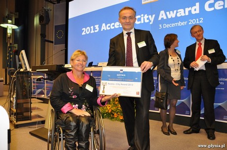 Gdynia wśród wyróżnionych w Brukseli europejską nagrodą dla miast dostępnych „Access City Award” / fot. Joanna LemanMiasto Gdynia - jako jedyne z Europy Środkowo-Wschodniej - zostało wyróżnione w konkursie „Access City Award", organizowanym przez Komisję Europejską. W konkursie nagradzane są miasta krajów UE w najwyższym stopniu przyjazne i dostępne dla osób niepełnoprawnych. Ceremonia rozdania nagród odbyła się 3 grudnia 2012 r. w Brukseli podczas konferencji z okazji Europejskiego Dnia Osób Niepełnosprawnych.