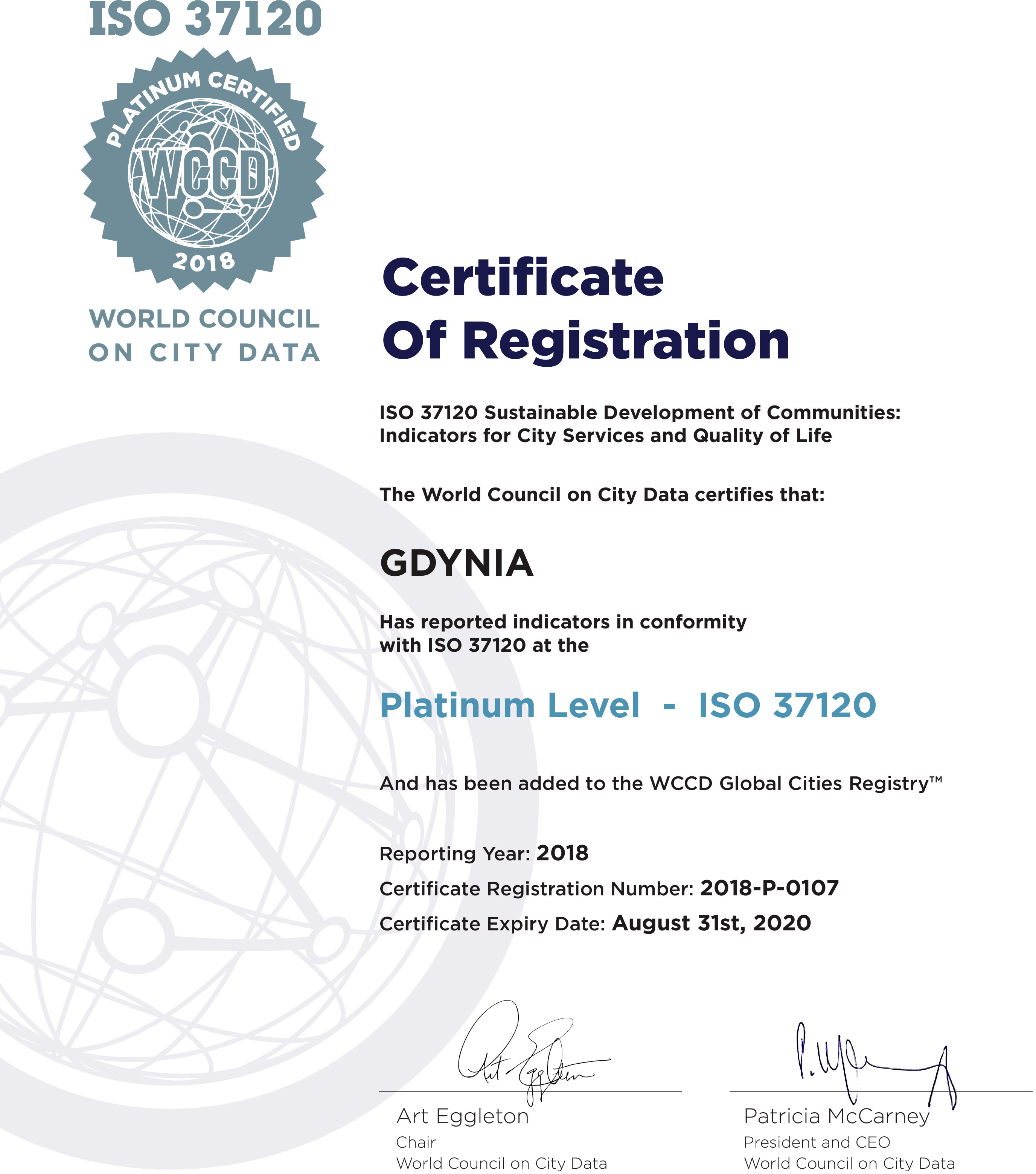 Gdynia jako pierwsze miasto w Polsce, otrzymała drugi certyfikat zgodności z normą ISO 37120 – tym razem na poziomie platynowym, czyli najwyższym z możliwych. Przypominamy, że w 2017 roku Gdynia, również pioniersko, poddała się weryfikacji wskaźników miejskich dotyczących wszystkich obszarów funkcjonowania miasta, na postawie międzynarodowego standardu ISO 37120 „Zrównoważony rozwój społeczny. Wskaźniki usług miejskich i jakości życia”. W efekcie tych działań Gdynia otrzymała certyfikat na poziomie aspirującym. W tym roku udało się zweryfikować 95 wskaźników, co pozwoliło na uzyskanie certyfikatu na najwyższym poziomie – platynowym. Procedura certyfikacji przebiegała podobnie jak w poprzedniej edycji, tym razem jednak samodzielnie - bez wsparcia zewnętrznego, co potwierdza, że miasto potrafi właściwie zidentyfikować wskaźniki miejskie oraz posiada wiedzę na temat obszarów opisywanych przez normę. Świadomość ta została potwierdzona przez niezależnego audytora reprezentującego kanadyjską organizację World Council on City Data (WCCD).Analizie poddano ponownie m.in. gdyńską edukację, transport, środowisko czy bezpieczeństwo. Wszystkie wskaźniki opublikowane zostały na międzynarodowym portalu danych www.dataforcities.org, który prezentuje zarówno gdyńskie wskaźniki, jak i ponad 50 miast na całym świecie m.in Londynu, Barcelony, Los Angeles, Buenos Aires, Melbourne, Taipei czy Dubaju. - Zmierzenie efektów własnych działań jest dla wszystkich samorządów bardzo ważne, a dodatkowo robienie tego w sposób możliwy do zweryfikowania oraz porównywalny niezależnie od wielkości czy lokalizacji daje jeszcze większą korzyść. Dzięki ponownej certyfikacji możemy jednoznacznie stwierdzić, w którym miejscu znajduje się miasto, jaki jest poziom jakości życia w porównaniu z najbardziej rozwiniętymi ośrodkami miejskimi na świecie oraz potwierdzić, że Gdynia rozwija się w sposób zrównoważony – mówi Bartosz Bartoszewicz, wiceprezydent ds. jakości życia. Gdynia jest prekursorem nowych trendów w podejściu do zarządzania miastem. Dziś oprócz Gdyni cztery polskie miasta mogą pochwalić się certyfikatem zgodności z normą ISO 37120. Zaraz po Gdyni certyfikaty uzyskały Gdańsk, Kielce, Lublin oraz Warszawa. Świadczy to o tym, że miasta te przy podejmowaniu kluczowych dla ich rozwoju decyzji kierują się twardymi, zweryfikowanymi przez niezależnych audytorów danymi na temat ich silnych i słabszych stron. Jednocześnie dzielą się tymi informacjami w sposób powszechny ze swoimi mieszkańcami. Opublikowano: 12.08.2019 12:20 Autor: Marta Jaszczerska-Zawadzka (m.jaszczerska@gdynia.pl) Zmodyfikowano: 06.09.2022 13:37 Zmodyfikował: Paweł Jałoszewski