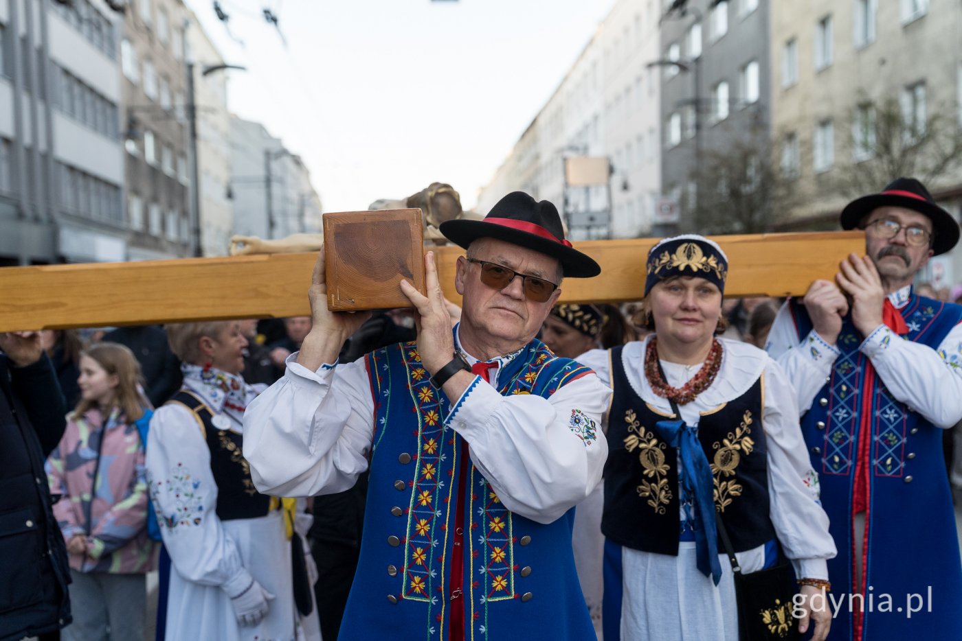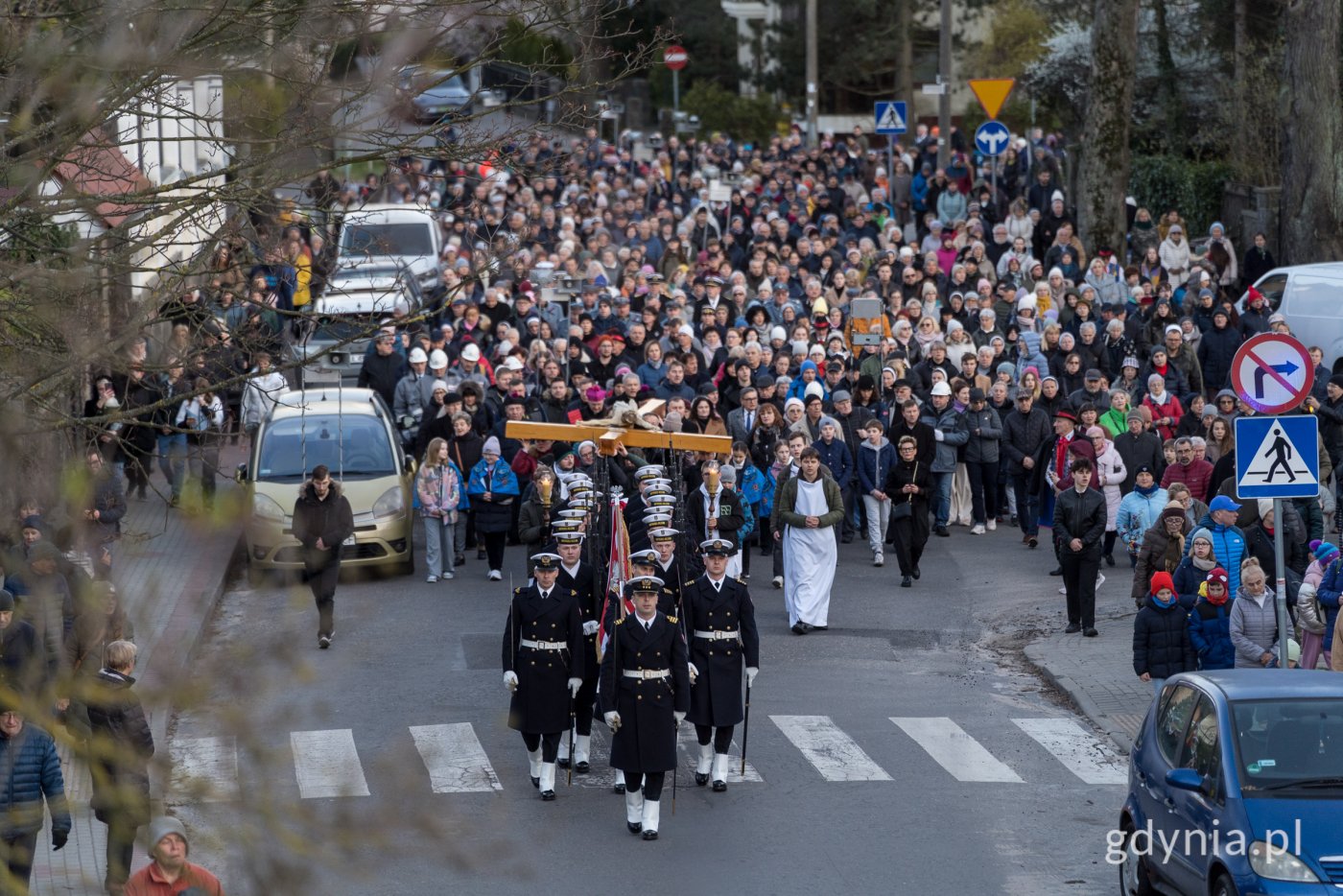 Zbliża się Wielkanoc. Jednym z najistotniejszych elementów obchodów tego najważniejszego dla chrześcijan święta jest droga krzyżowa. W naszym mieście tradycyjnie jest ona inscenizowana poza murami murami kościoła. W tym roku Gdyńska Droga Krzyżowa odbyła się w piątek, 11 kwietnia. W Gdyni, jak i wielu innych miastach, tradycją są inscenizacje drogi krzyżowej, które odbywają się poza murami świątyni – w przestrzeni miejskiej. I choć nie zawsze są one organizowane w Wielki Piątek, to za każdym razem mają uroczysty charakter i są ważne dla wierzących i praktykujących mieszkańców.Tegoroczna Gdyńska Droga Krzyżowa wyruszyła w piątek, 11 kwietnia z placu przy Bazylice Morskiej, należącej do parafii pw. Najświętszej Marii Panny Królowej Polski. Przewodniczył jej abp Tadeusz Wojda – metropolita gdański.W uroczystości wzięli udział m.in. parlamentarzyści, samorządowcy, mieszkańcy, stoczniowcy, kapłani oraz przedstawiciele różnych zawodów i lokalnych społeczności, którzy podczas przemarszu przekazywali sobie i na zmianę nieśli krzyż.Trasa procesji była tradycyjna. Uczestnicy przeszli ul. Świętojańską do al. Marsz. Piłsudskiego i dalej ul. Legionów, Siemiradzkiego, Mickiewicza i Asnyka aż do krzyża na Kamiennej Górze. Tam odbyła się wspólna modlitwa.Na koniec uczestnicy złożyli pod krzyżem wieńce i wiązanki kwiatów.Uroczystość uświetniła honorowa asysta wojskowa. Galeria zdjęć Pobierz galerię Kompania Reprezentacyjna Marynarki Wojennej uświetniła Gdyńską Drogę Krzyżową (fot. Paweł Budziński) Pobierz zdjęcie W Gdyńskiej Drodze Krzyżowej uczestniczyła m.in. radna Ewa Krym (fot. Paweł Budziński) Pobierz zdjęcie Uczestnicy Gdyńskiej Drogi Krzyżowej w procesji na ul. Świętojańskiej. Krzyż niosą m.in. radny Marek Dudziński i Dawid Biernacik (fot. Paweł Budziński) Pobierz zdjęcie Uczestnicy Gdyńskiej Drogi Krzyżowej niosący krzyż. Wśród nich radny Dawid Biernacik (fot. Paweł Budziński) Pobierz zdjęcie Uczestnicy Gdyńskiej Drogi Krzyżowej niosący krzyż. Wśród nich m.in. posłanka Dorota Arciszewska-Mielewczyk i radny Łukasz Strzałkowski (fot. Paweł Budziński) Pobierz zdjęcie Poczet sztandarowy tworzony przez żołnierzy Marynarki Wojennej podczas Gdyńskiej Drogi Krzyżowej (fot. Paweł Budziński) Pobierz zdjęcie Uczestnicy Gdyńskiej Drogi Krzyżowej na ul. Świętojańskiej (fot. Paweł Budziński) Pobierz zdjęcie Uczestnicy Gdyńskiej Drogi Krzyżowej niosący krzyż. Wśród nich m.in. posłanka Dorota Arciszewska-Mielewczyk i radna Ewa Krym (fot. Paweł Budziński) Pobierz zdjęcie Uczestnicy Gdyńskiej Drogi Krzyżowej idący w procesji (fot. Paweł Budziński) Pobierz zdjęcie Uczestnicy Gdyńskiej Drogi Krzyżowej idący w procesji (fot. Paweł Budziński) Pobierz zdjęcie Uczestnicy Gdyńskiej Drogi Krzyżowej w kaszubskich strojach niosący krzyż (fot. Paweł Budziński) Pobierz zdjęcie Uczestnicy Gdyńskiej Drogi Krzyżowej na ul. Świętojańskiej (fot. Paweł Budziński) Pobierz zdjęcie Uczestnicy Gdyńskiej Drogi Krzyżowej przechodzący w procesji przy budynku Urzędu Miasta Gdyni (fot. Paweł Budziński) Pobierz zdjęcie Uczestnicy Gdyńskiej Drogi Krzyżowej idący al. Marsz. Piłsudskiego (fot. Paweł Budziński) Pobierz zdjęcie Siostry zakonne niosące krzyż podczas Gdyńskiej Drogi Krzyżowej (fot. Paweł Budziński) Pobierz zdjęcie Gdyńskiej Drodze Krzyżowej przewodził abp Tadeusz Wojda, metropolita gdański (fot. Paweł Budziński) Pobierz zdjęcie Uczestnicy Gdyńskiej Drogi Krzyżowej idący w procesji (fot. Paweł Budziński) Pobierz zdjęcie Stoczniowcy niosący krzyż podczas Gdyńskiej Drogi Krzyżowej (fot. Paweł Budziński) Pobierz zdjęcie Uczestnicy Gdyńskiej Drogi Krzyżowej idący w procesji (fot. Paweł Budziński) Pobierz zdjęcie Krzyż na Kamiennej Górze był celem Gdyńskiej Drogi Krzyżowej (fot. Paweł Budziński) Pobierz zdjęcie Strażacy niosący krzyż i inni uczestnicy Gdyńskiej Drogi Krzyżowej idący za nimi w procesji (fot. Paweł Budziński) Pobierz zdjęcie Przedstawiciele Marynarki Wojennej składający kwiaty pod krzyżem na Kamiennej Górze (fot. Paweł Budziński) Pobierz zdjęcie Trębacz i werblista z Orkiestry Reprezentacyjnej Marynarki Wojennej podczas Gdyńskiej Drogi Krzyżowej (fot. Paweł Budziński) Pobierz zdjęcie Warunki pobierania Wszelkie prawa do zdjęć lub grafik prezentowanych w ramach portalu, należą do Prowadzącego portal lub do podmiotów z nim współpracujących i podlegają ochronie prawnej. Prowadzący portal zezwala na kopiowanie i przedstawianie utworów jedynie w celach niekomercyjnych oraz pod warunkiem zachowania go w oryginalnej postaci i zachowaniem kontekstu tematu, do którego zostało wykorzystaneprzez redakcję gdynia.pl. Opublikowane materiały powinny zawsze zawierać źródło, czyli adres strony www.gdynia.pl. Na publikowanie utworów w innych celach wymagana jest zgoda właściciela strony czyli Prowadzącego portal. Opublikowano: 12.04.2025 14:15 Autor: Magdalena Czernek (magdalena.czernek@gdynia.pl) Zmodyfikowano: 12.04.2025 14:15 Zmodyfikował: Magdalena Czernek